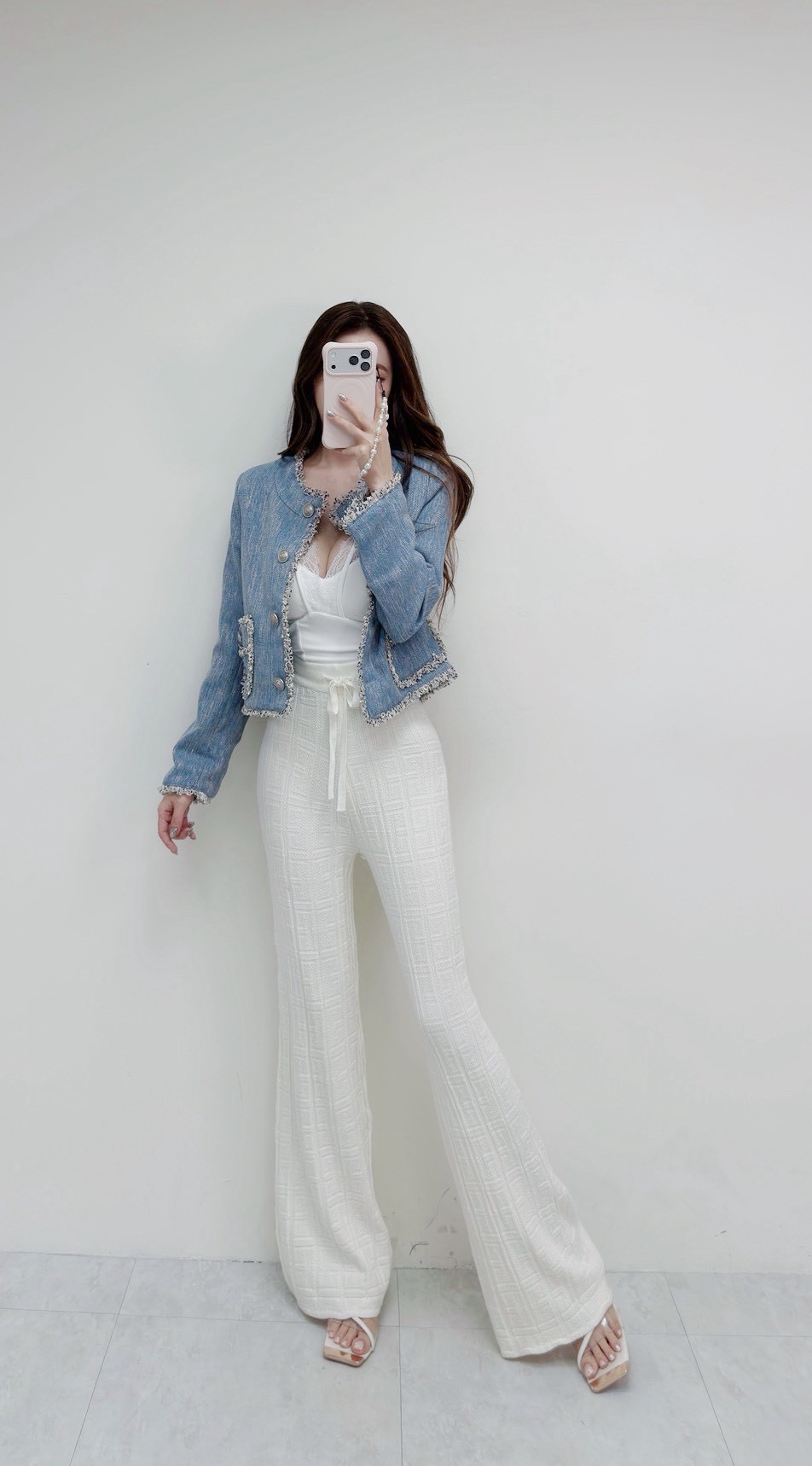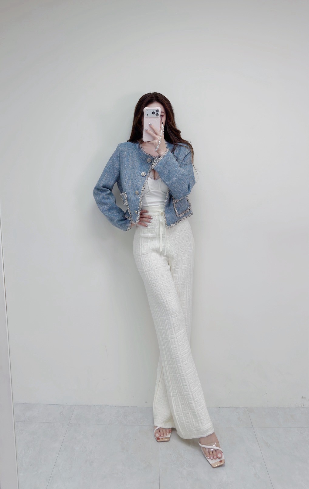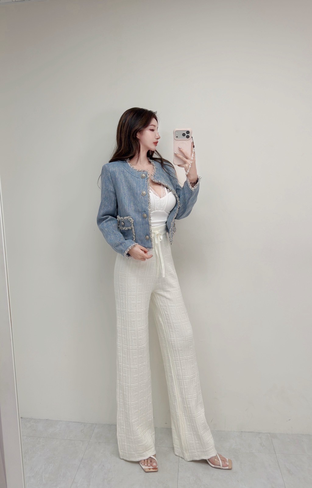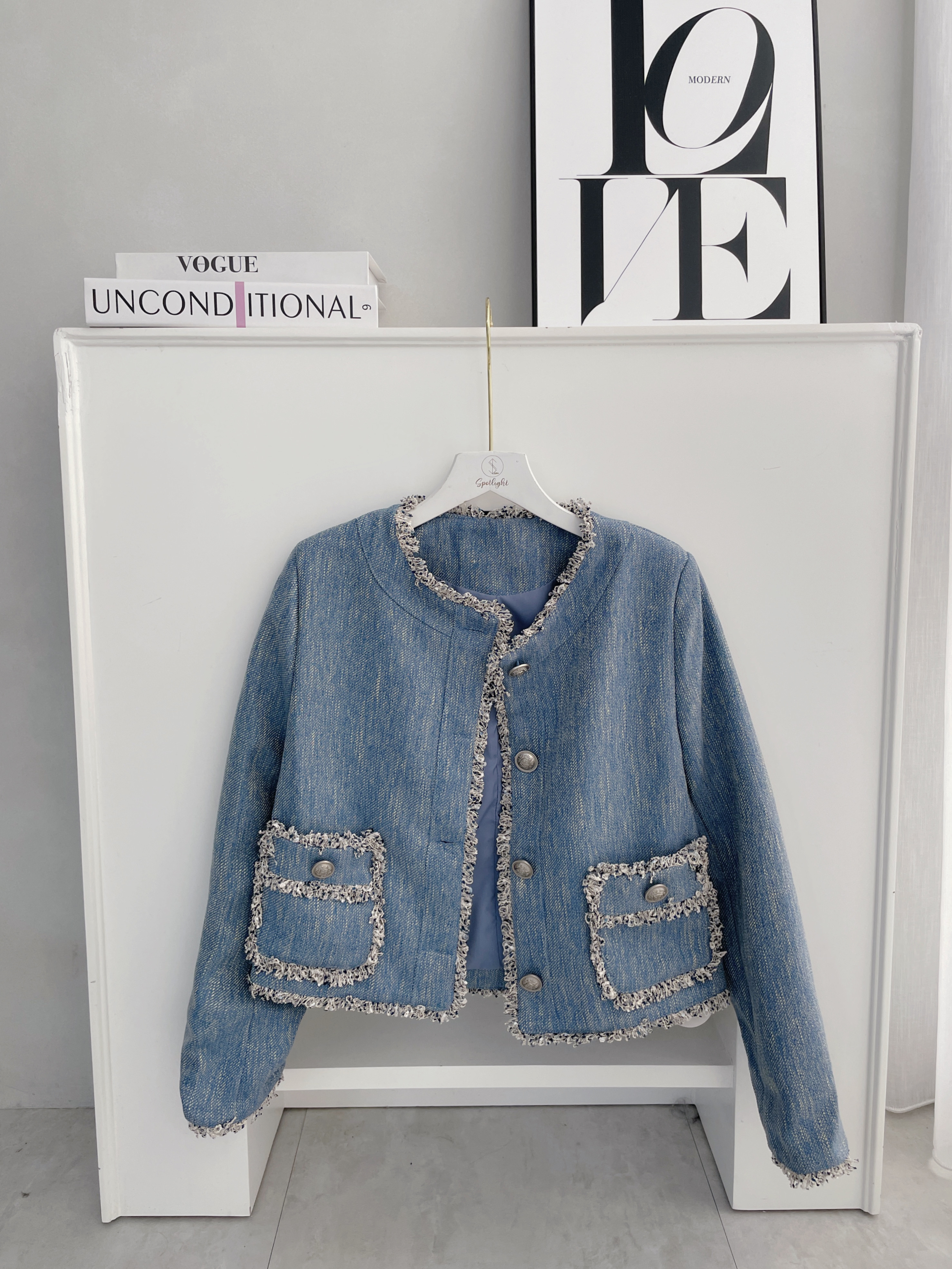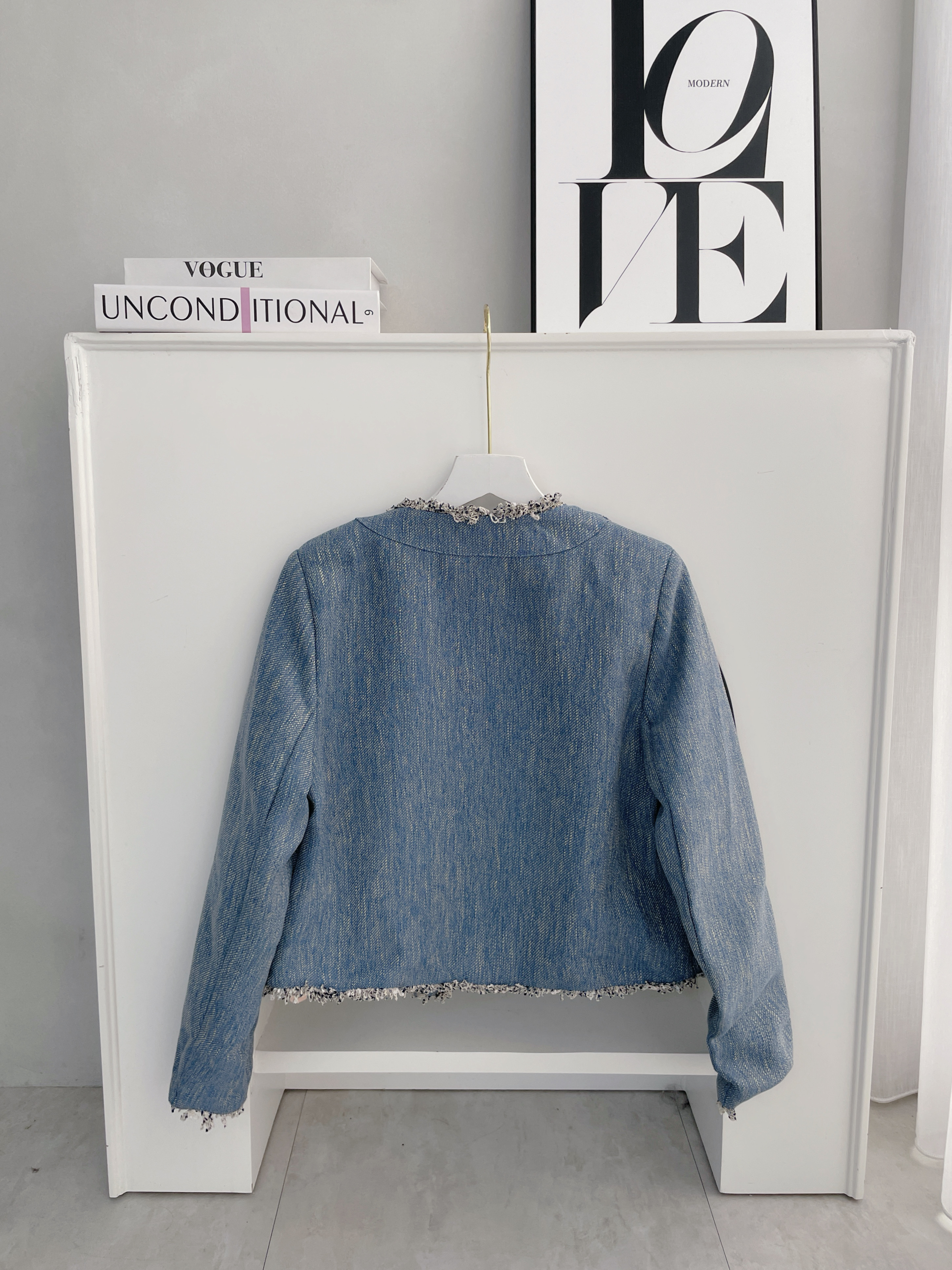 藍系優雅 小香鬚邊雙口袋外套