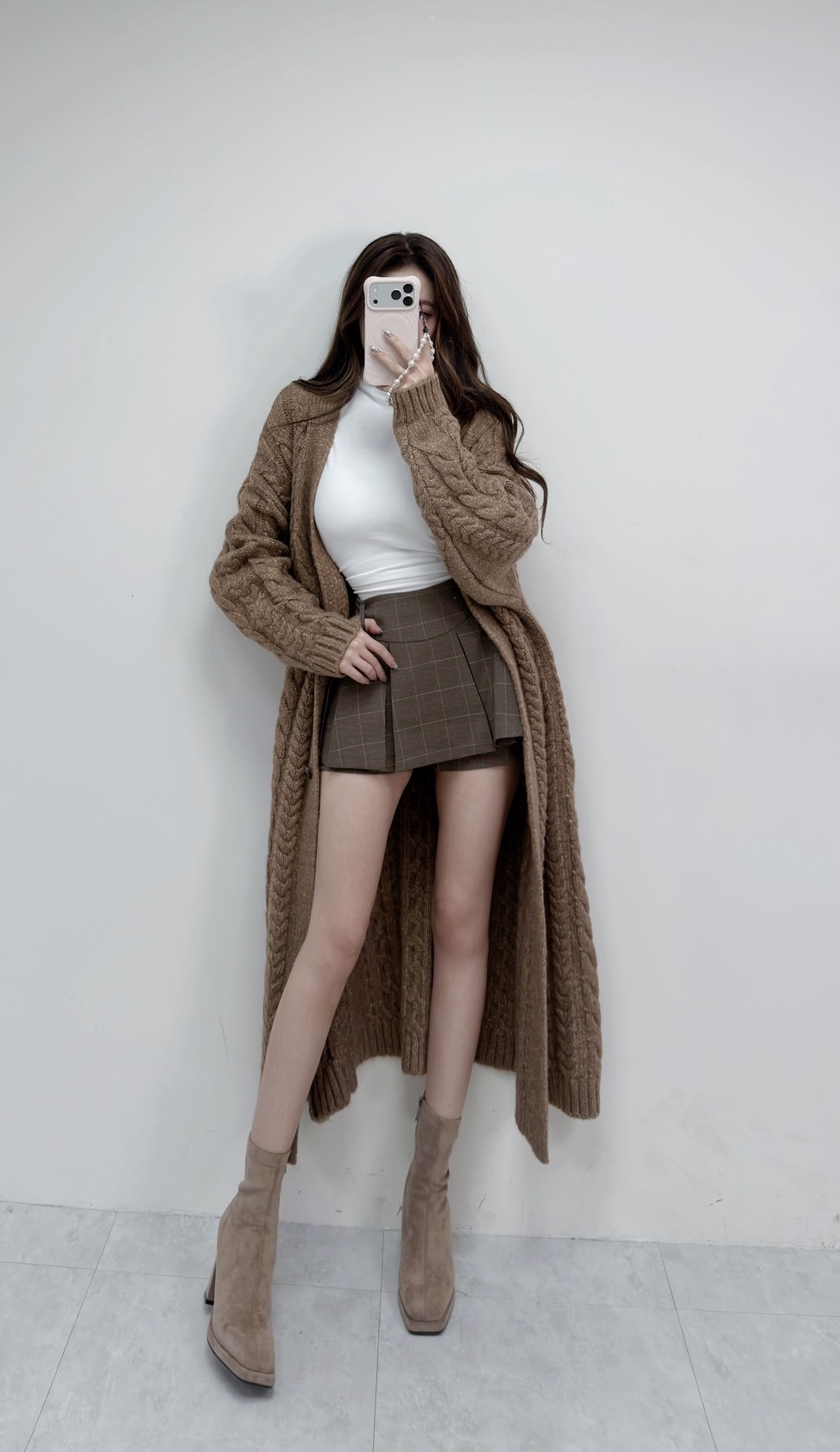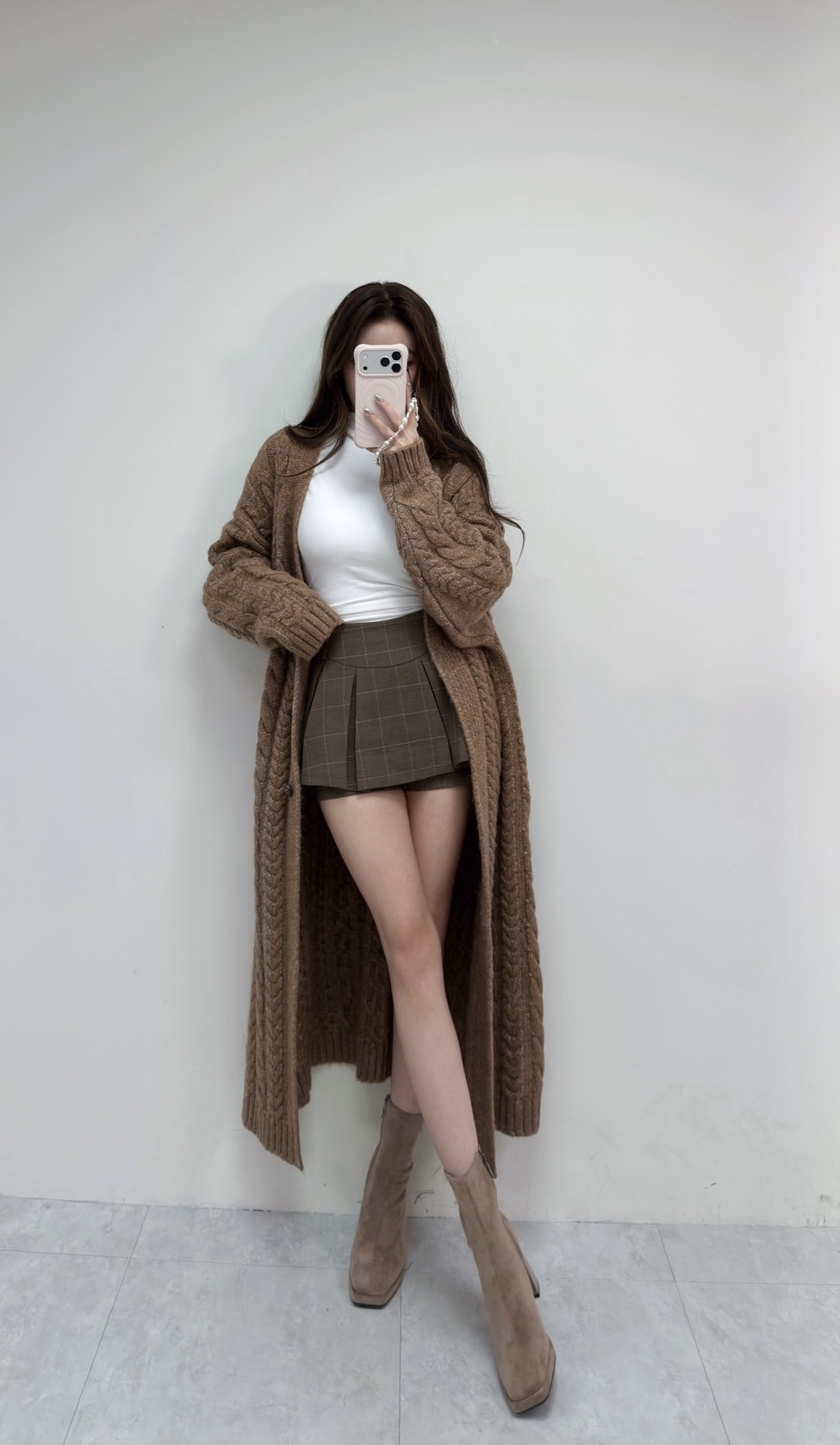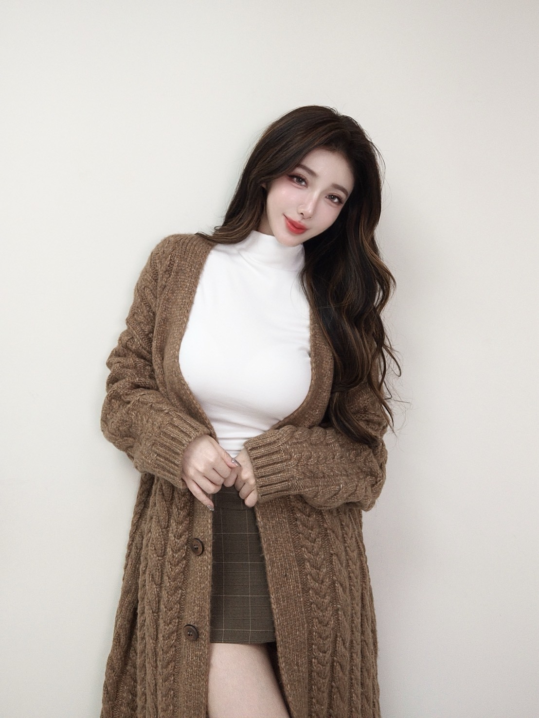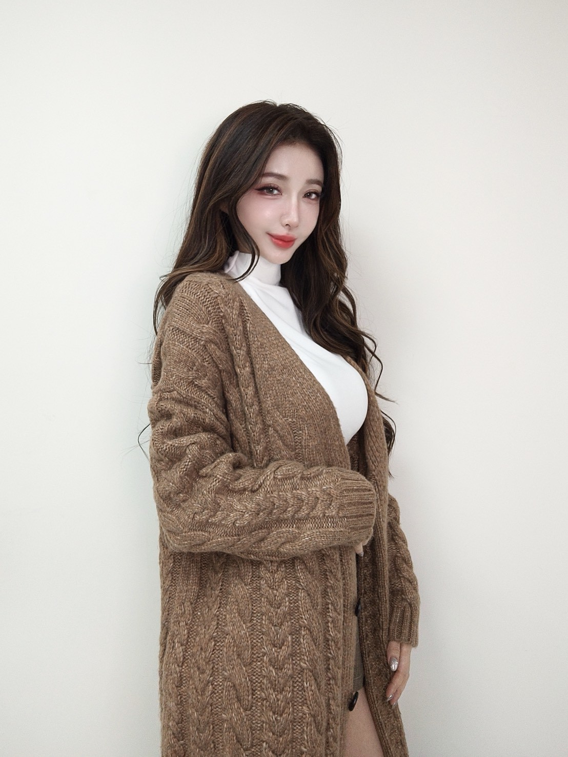 韓國麻花針織長版外套