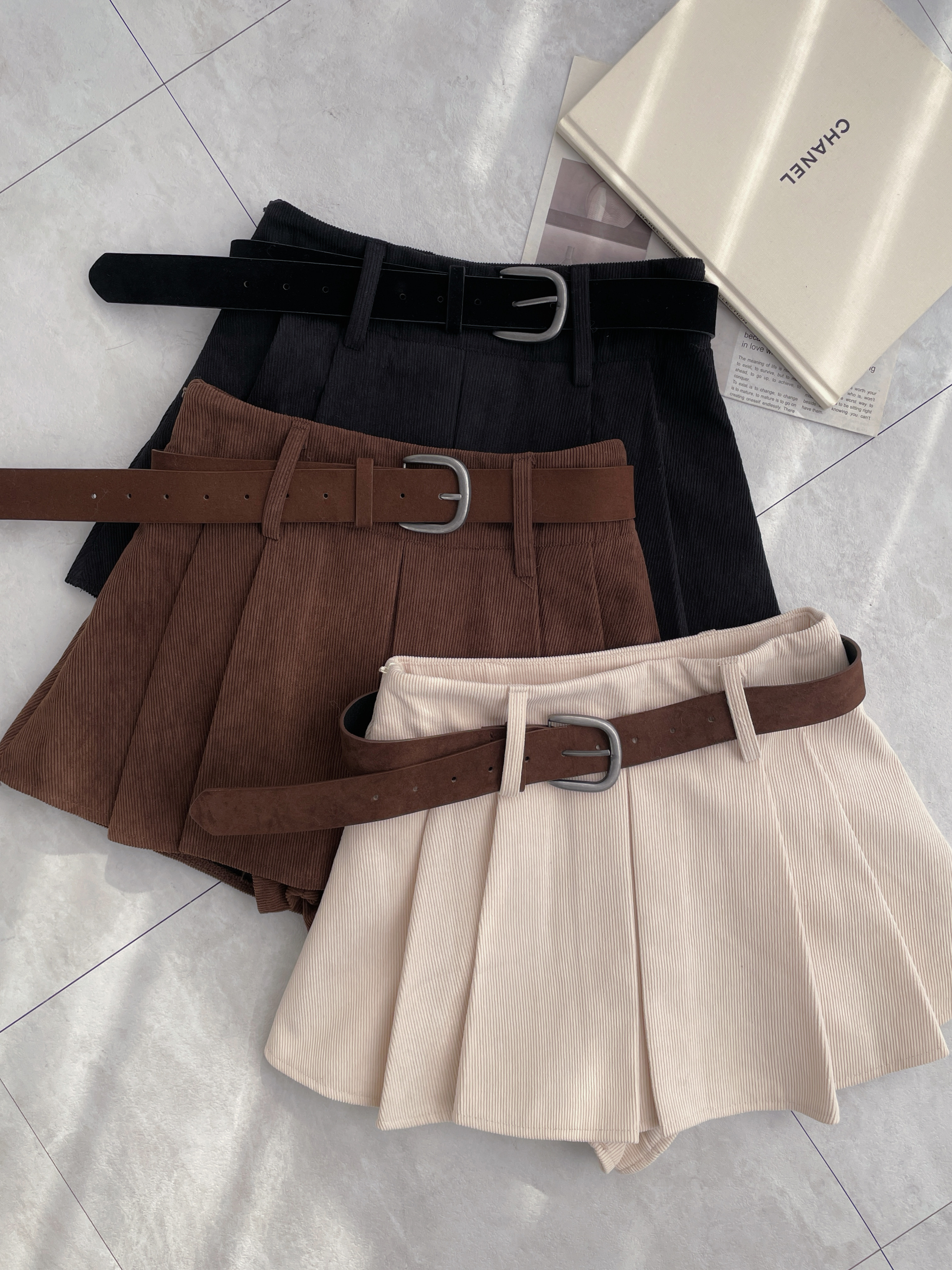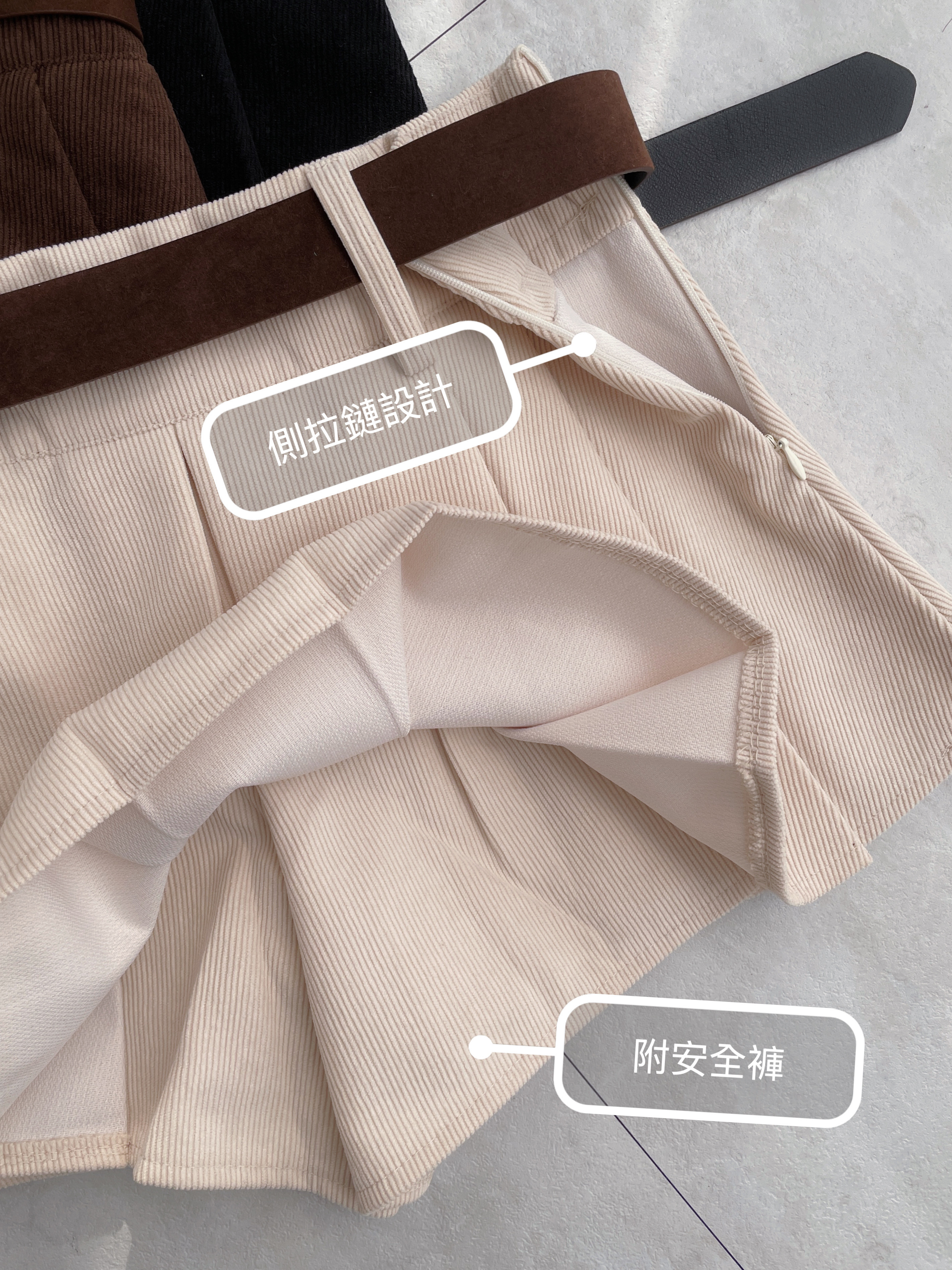 性感雪霜 附腰帶燈芯絨百褶短裙