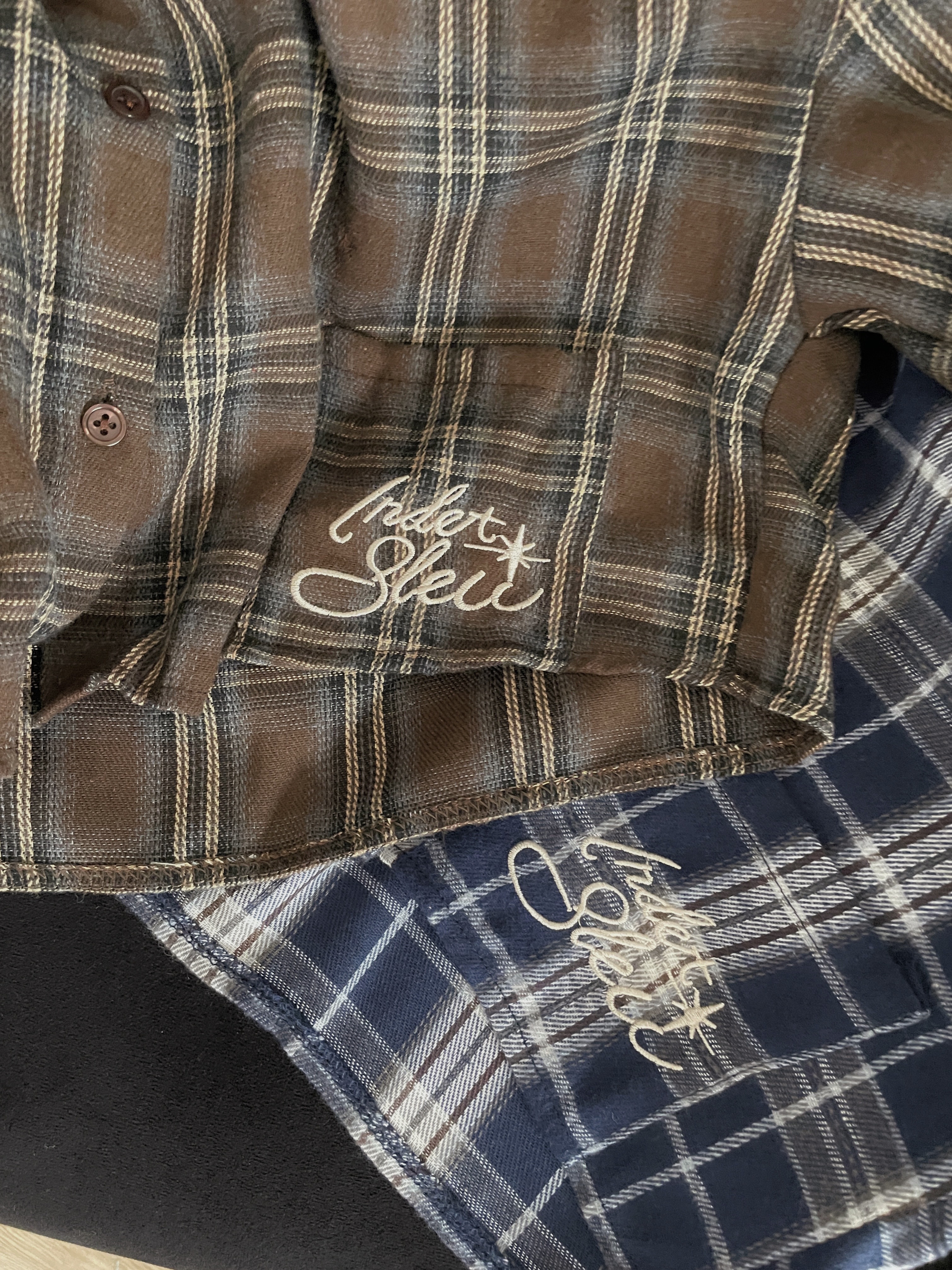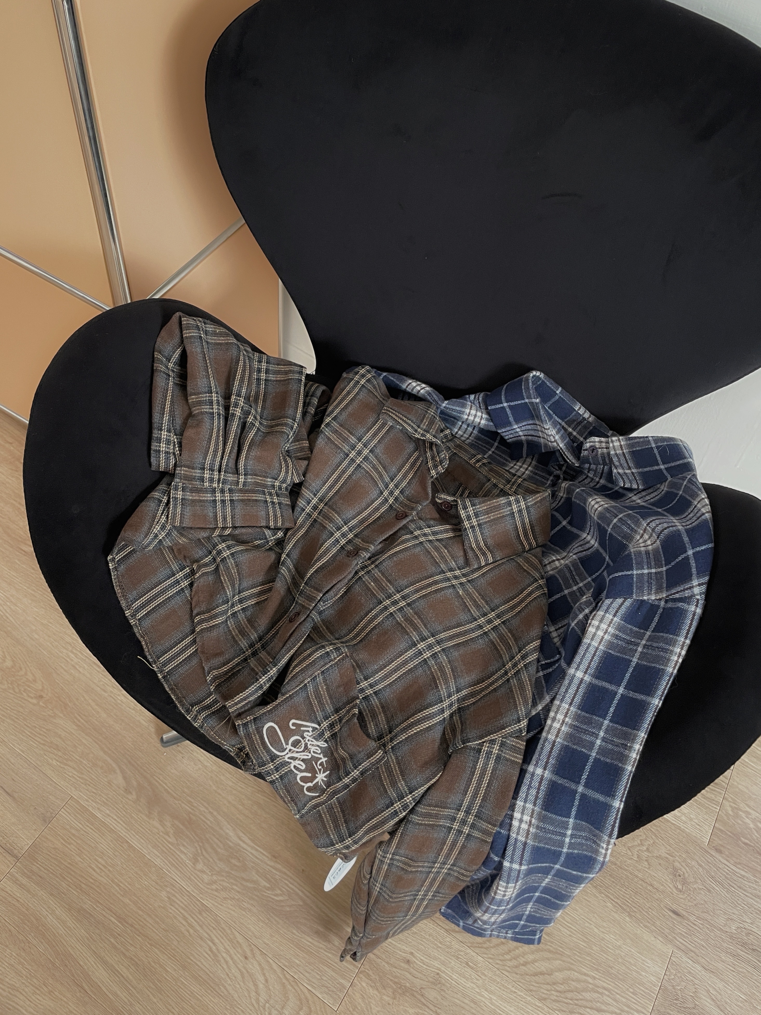 格紋字母磨毛短版襯衫