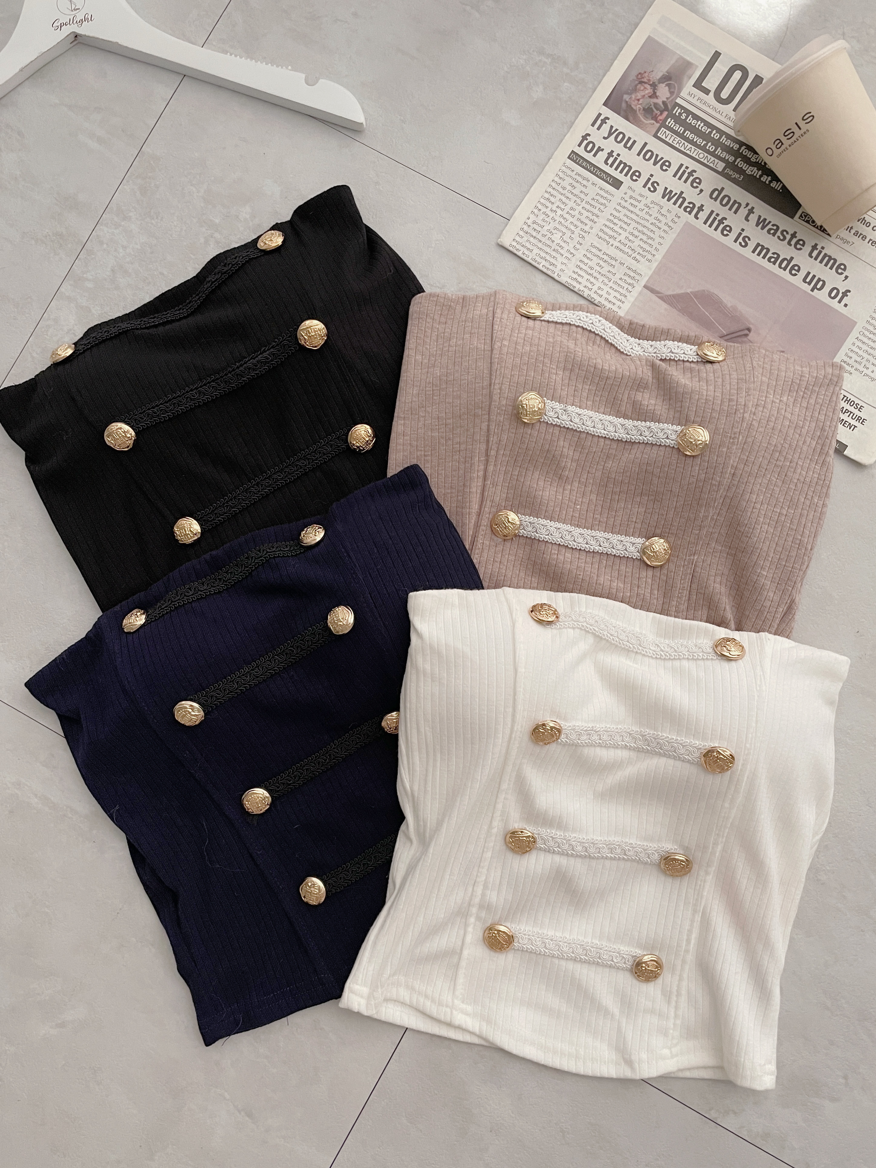 海軍風 羅紋平口八金釦邊織背心