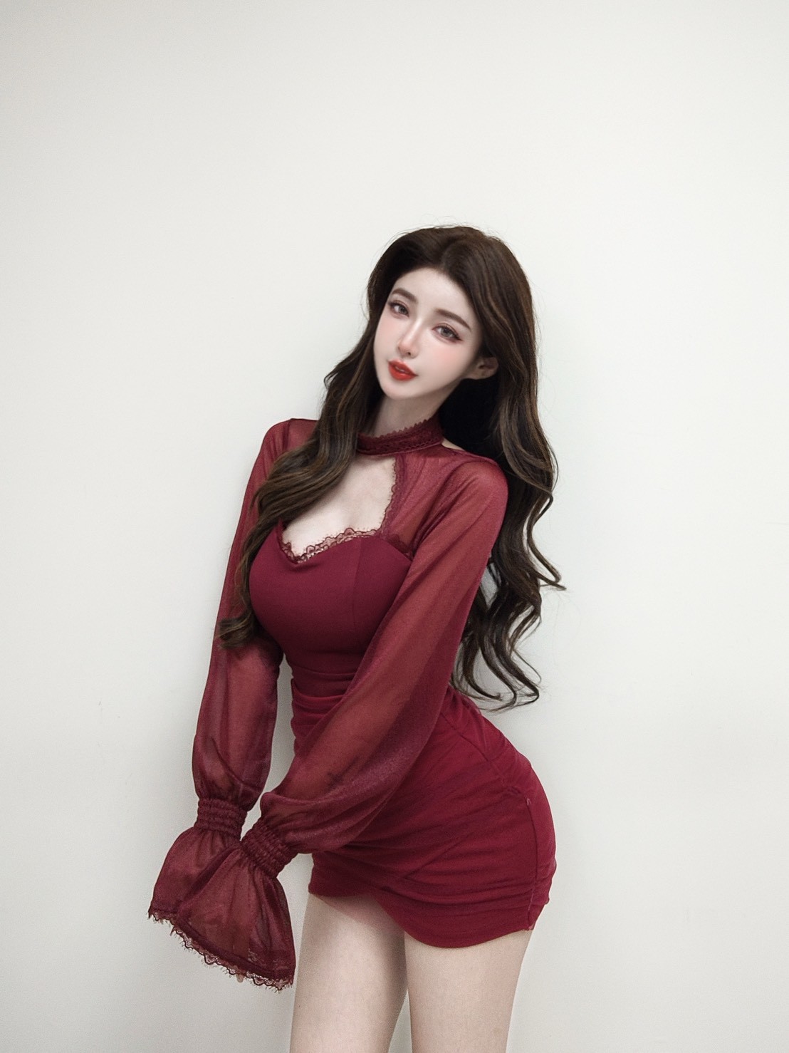 除了高腰設計之外,前擺做交叉感,更顯腿長。