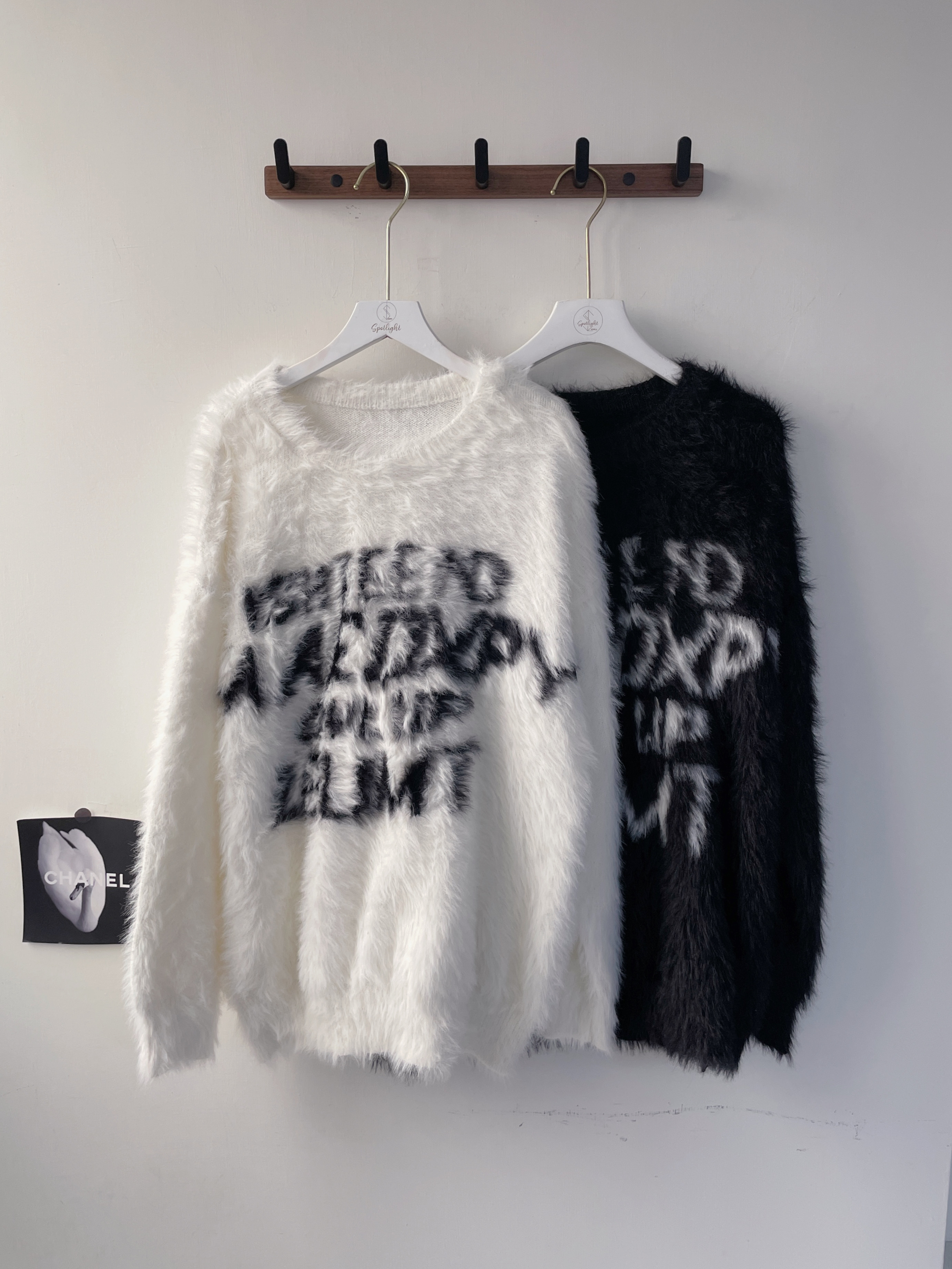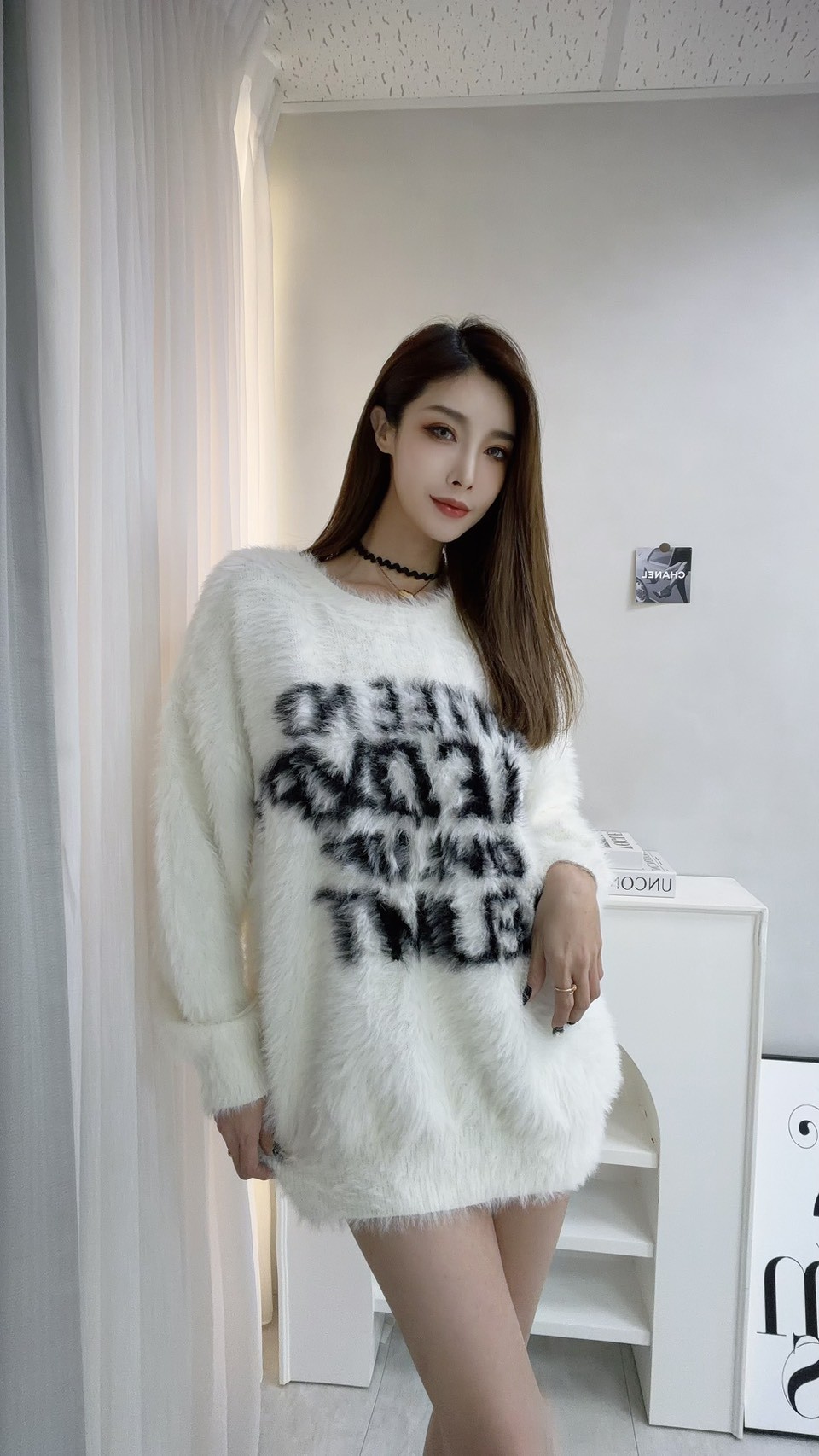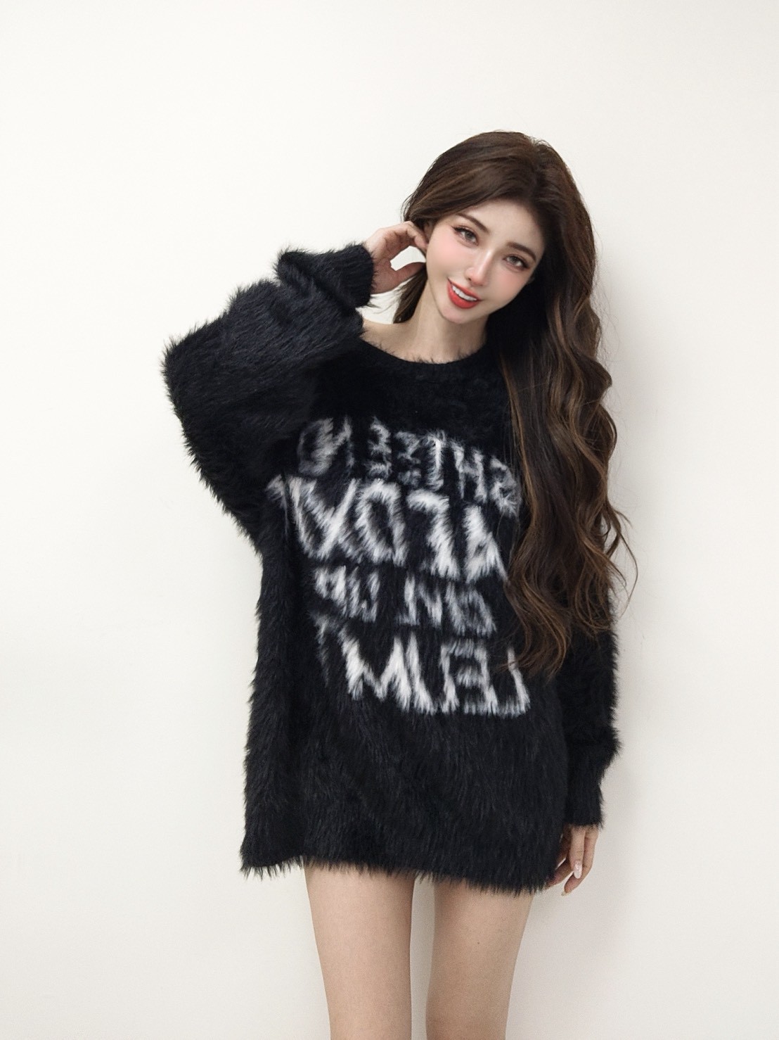 首爾潮流 馬海毛字母長袖上衣