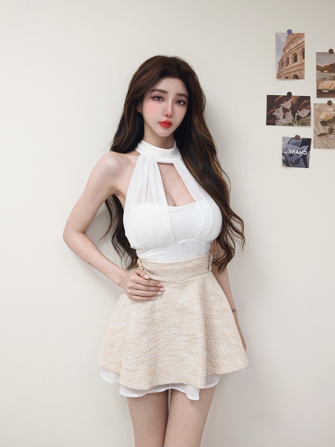 下層拼接柔滑雪紡面料,增添飄逸層次感,內附安全褲,行動自在無負擔。