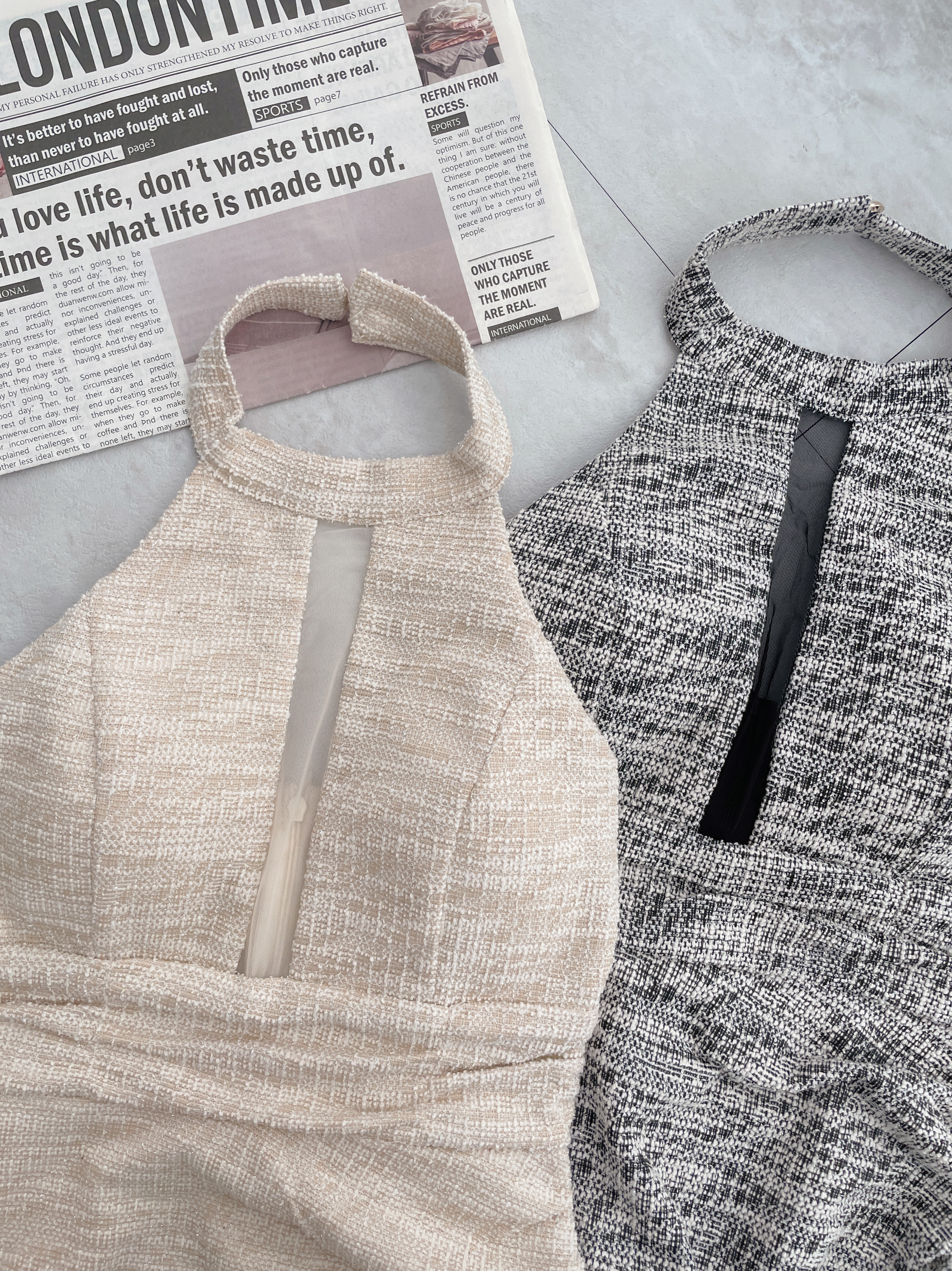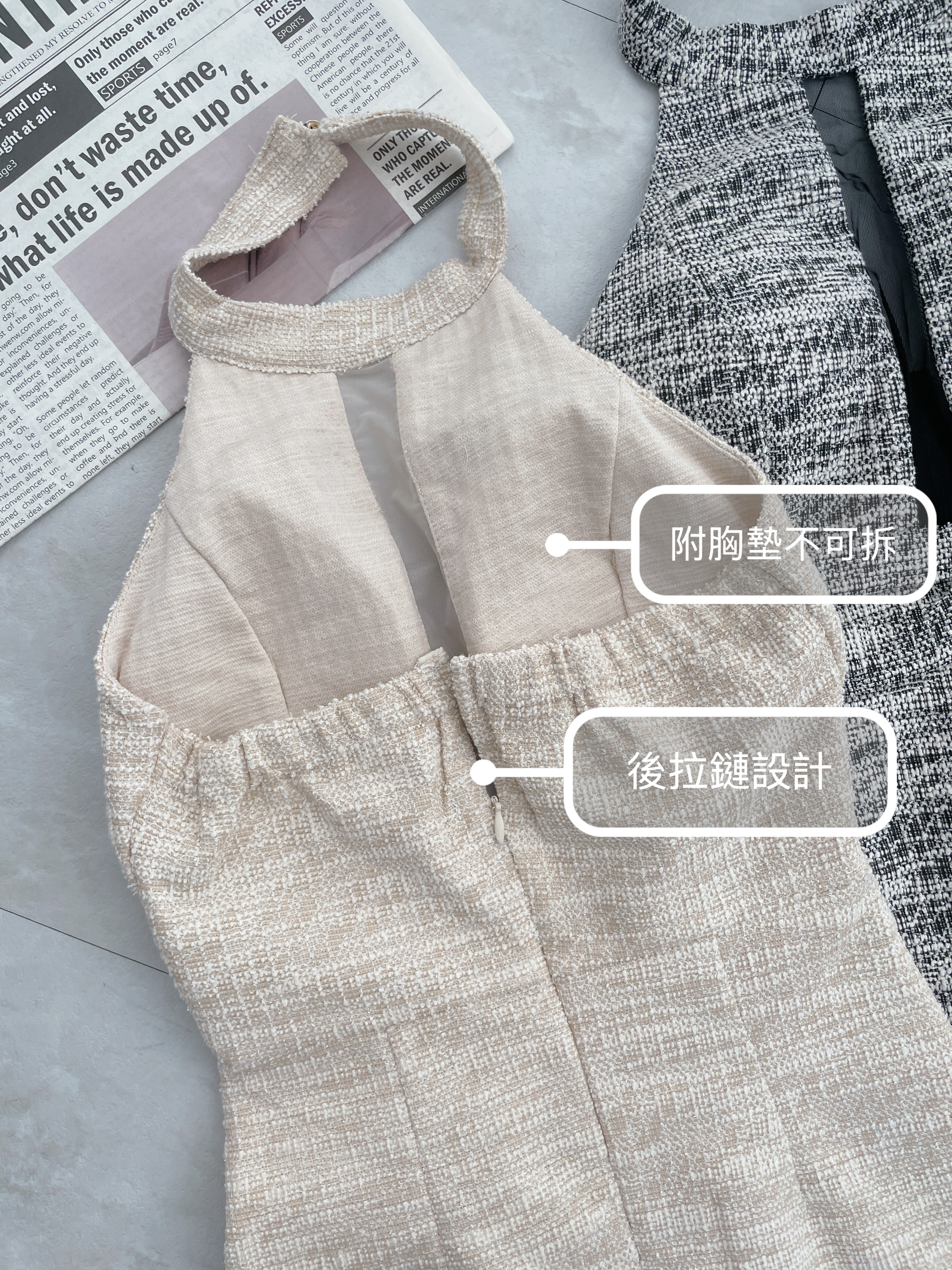 混紡小香削肩胸網紗短洋