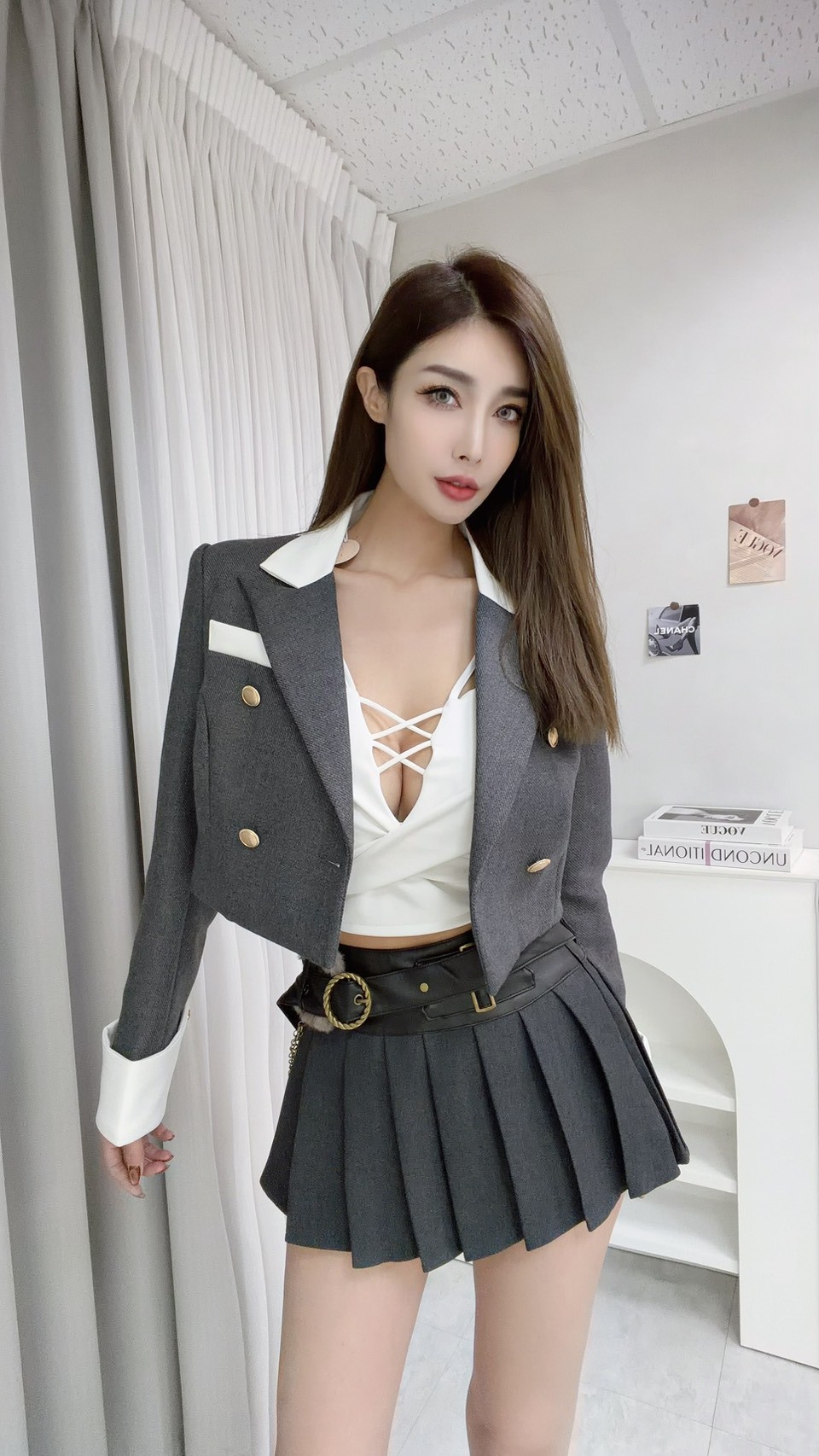 下身腰間交叉剪裁自然收腰,展現俐落甜辣曲線。