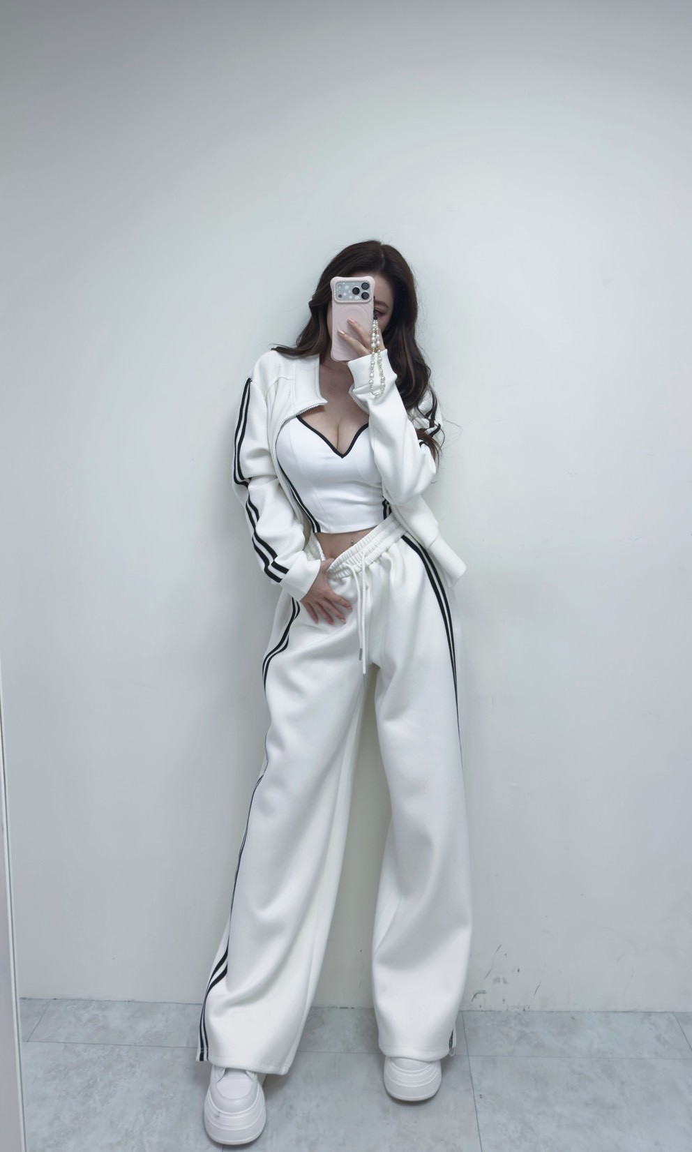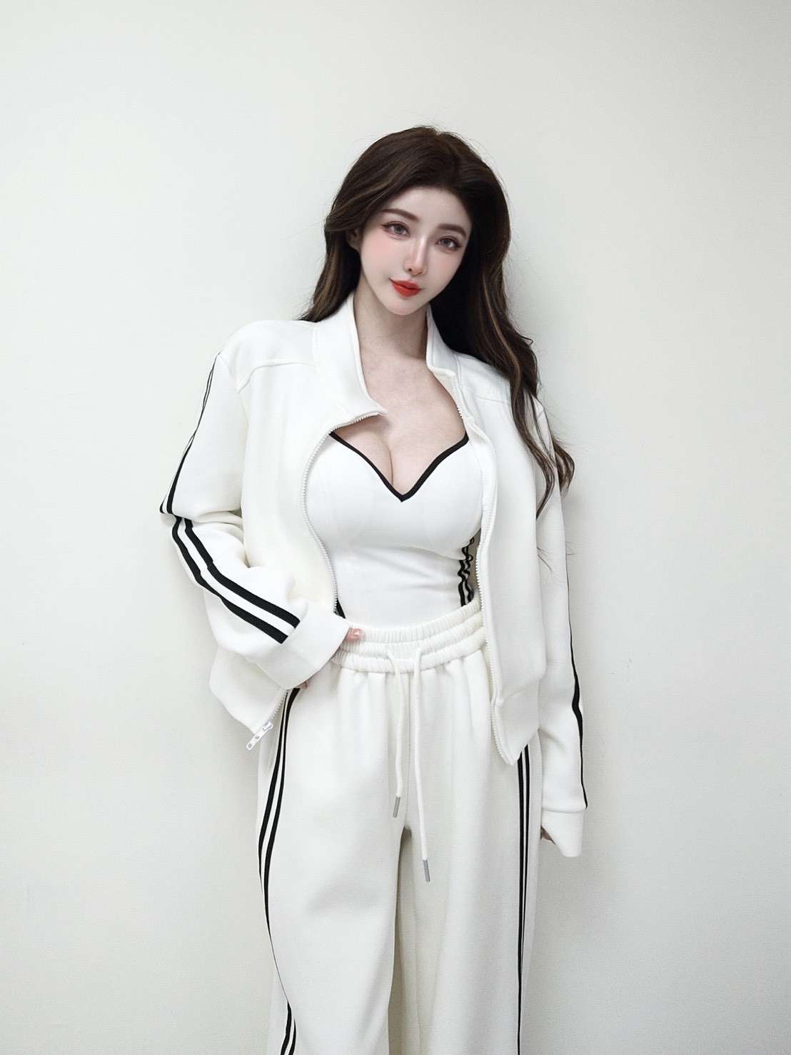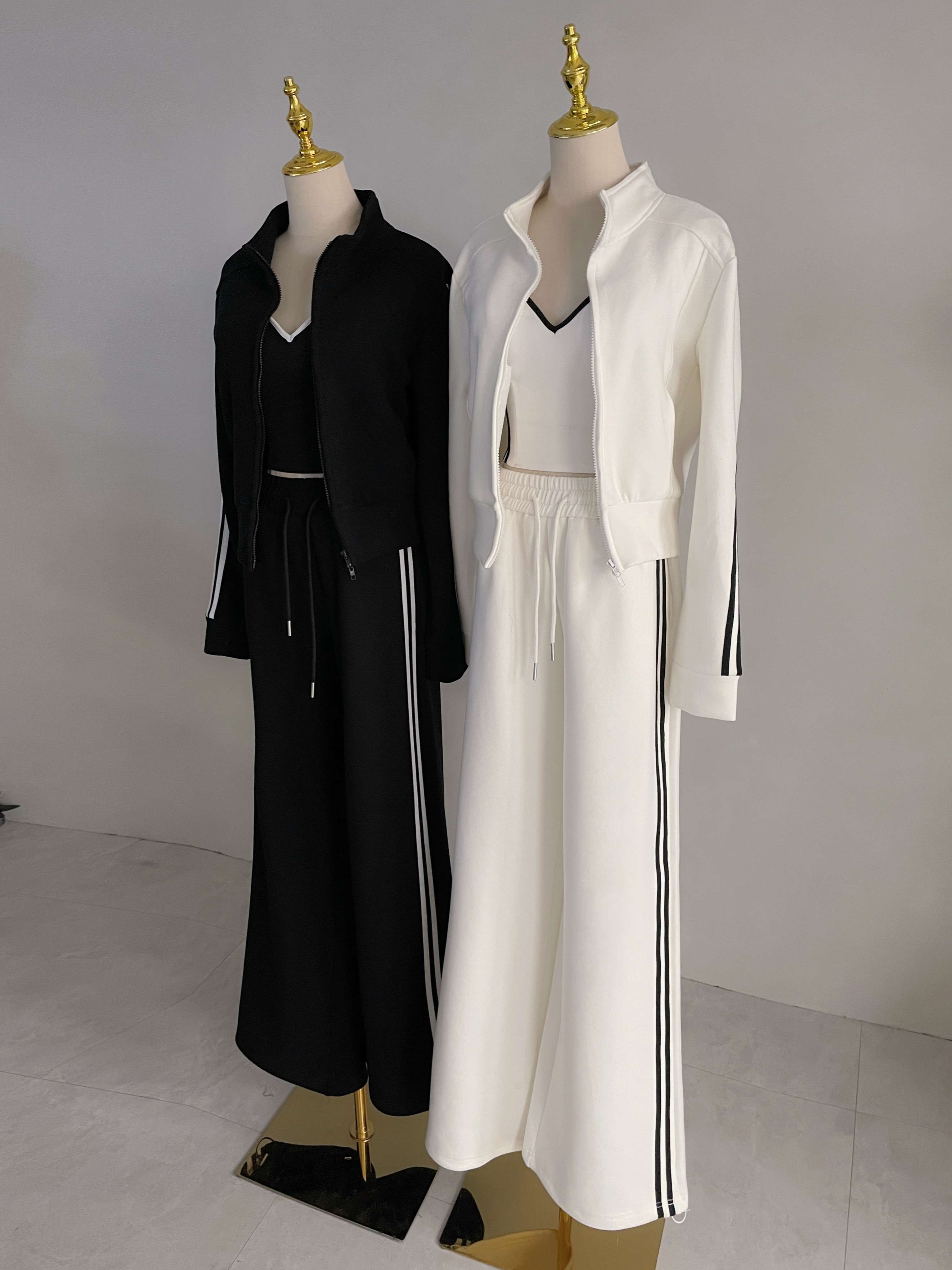 【SET】太空棉撞色線條雙拉鏈外套+寬褲