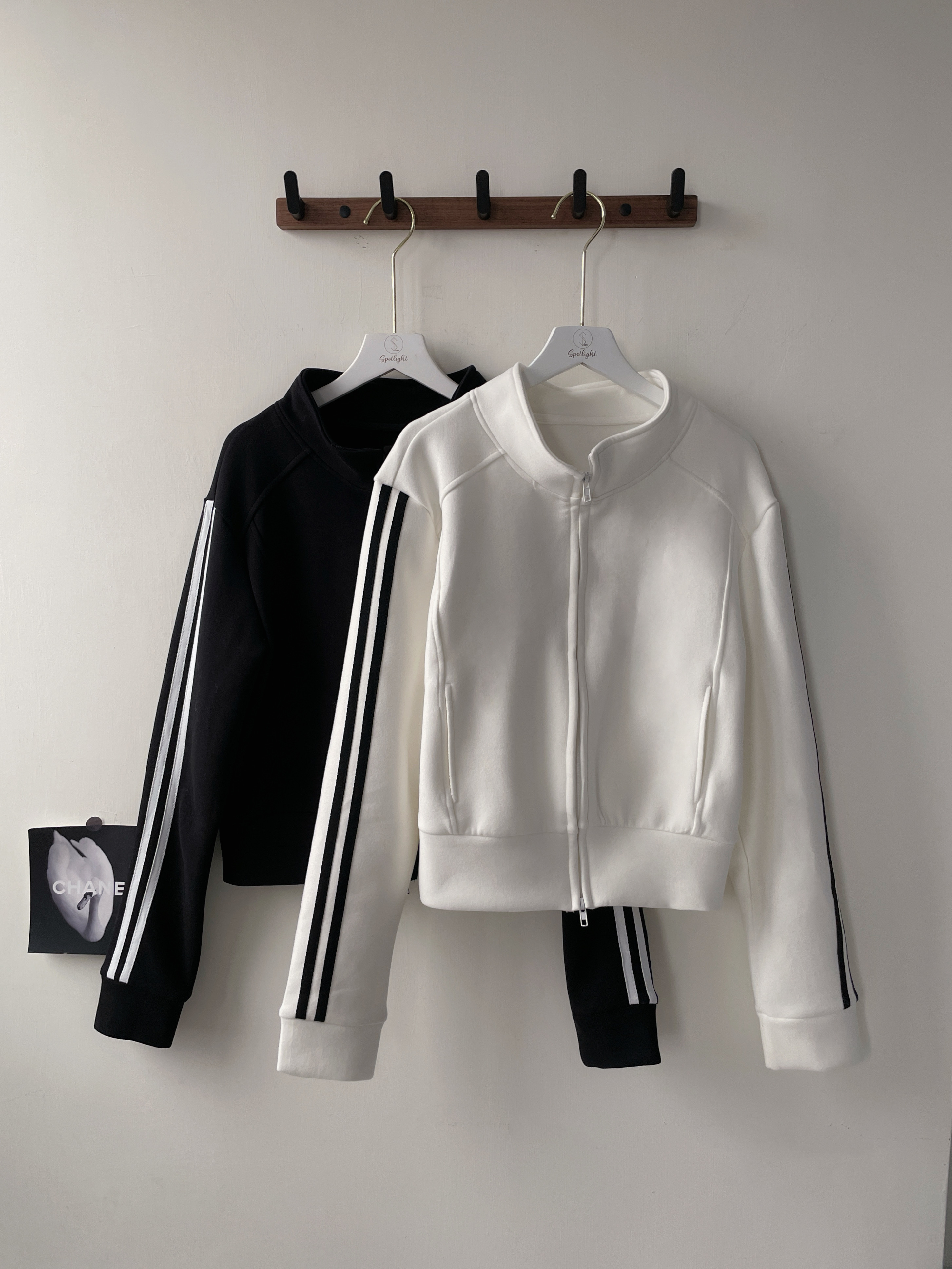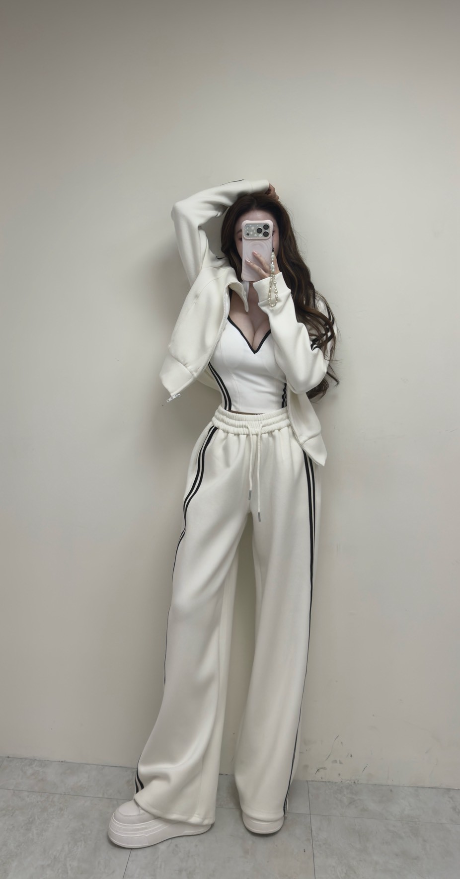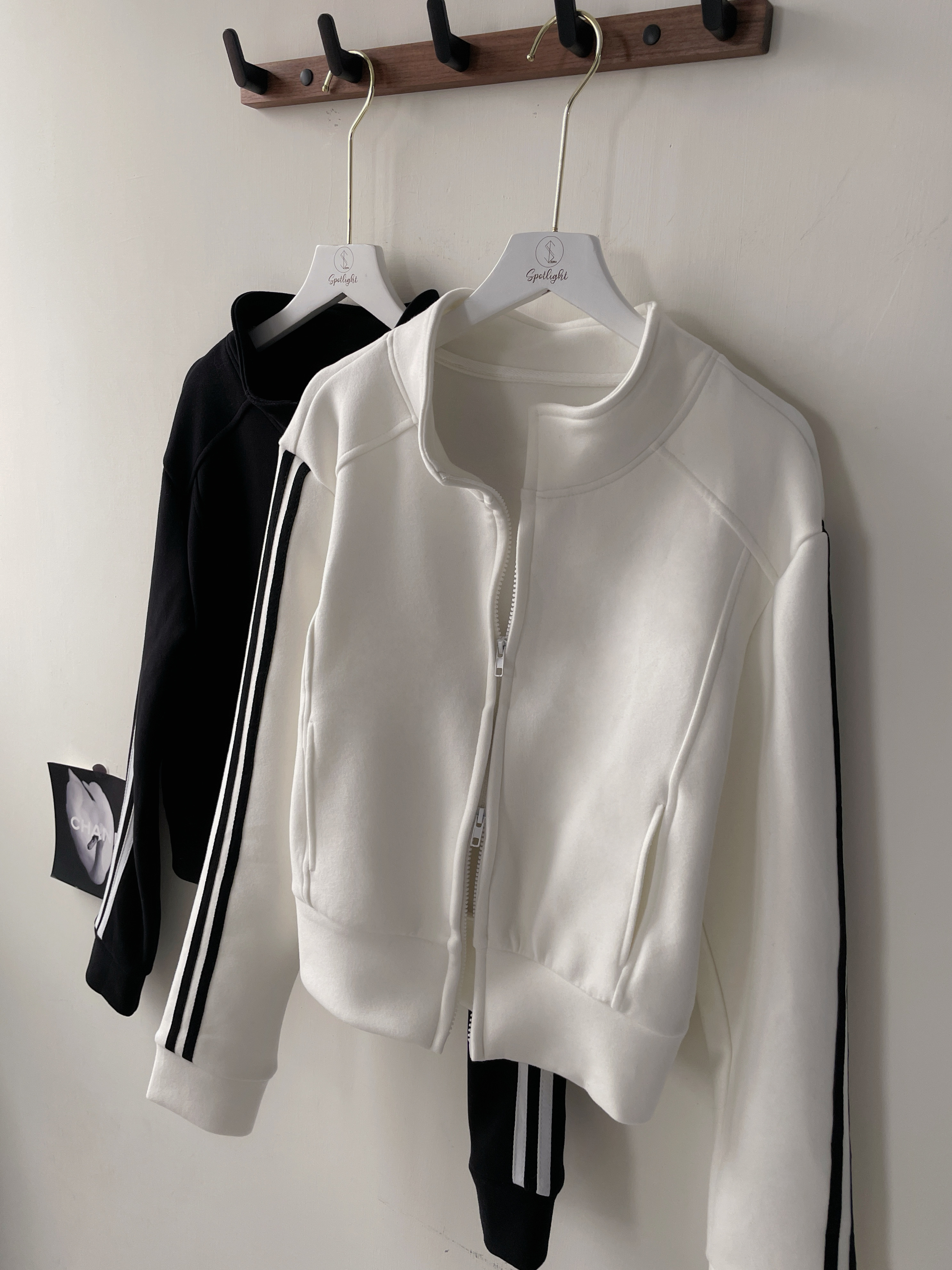 【SET】太空棉撞色線條雙拉鏈外套+寬褲