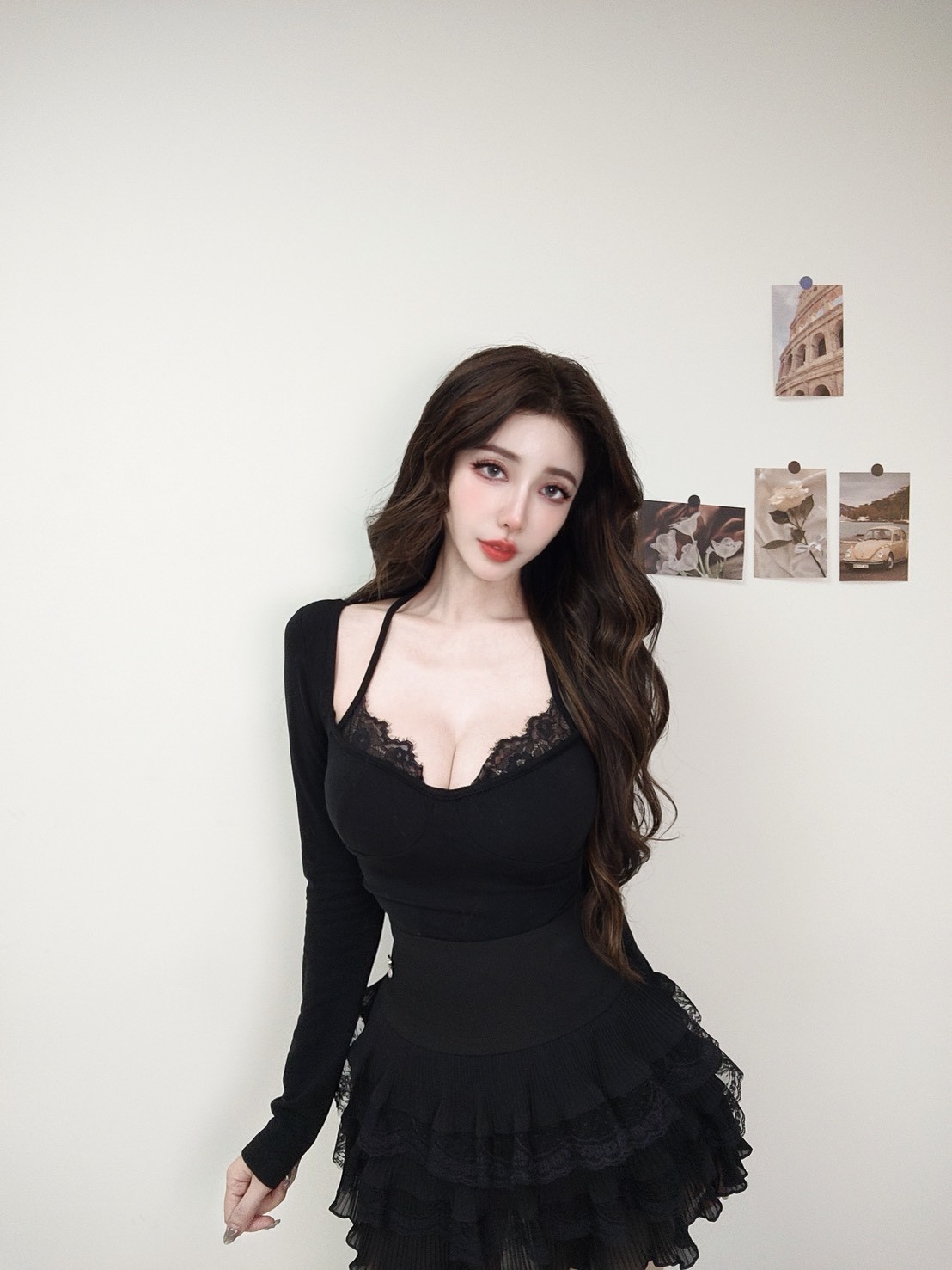 韓國小蝴蝶結亮鑽蛋糕蕾絲西裝短裙