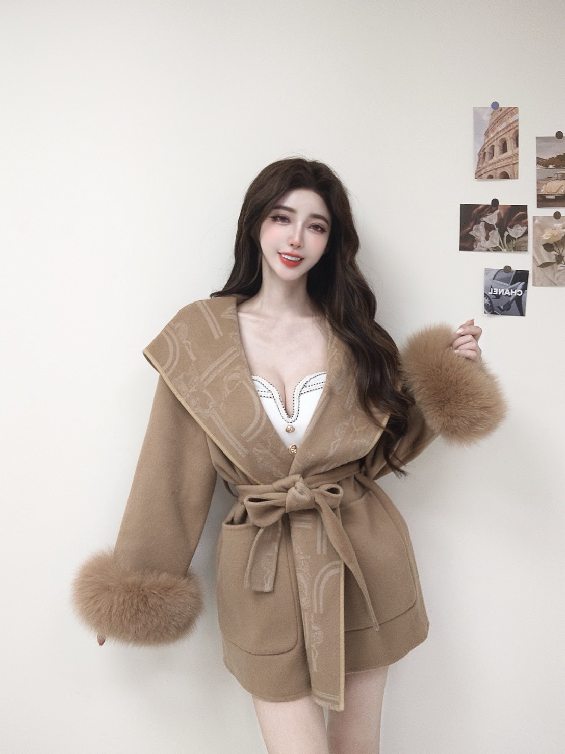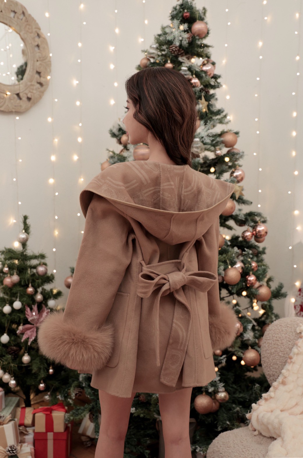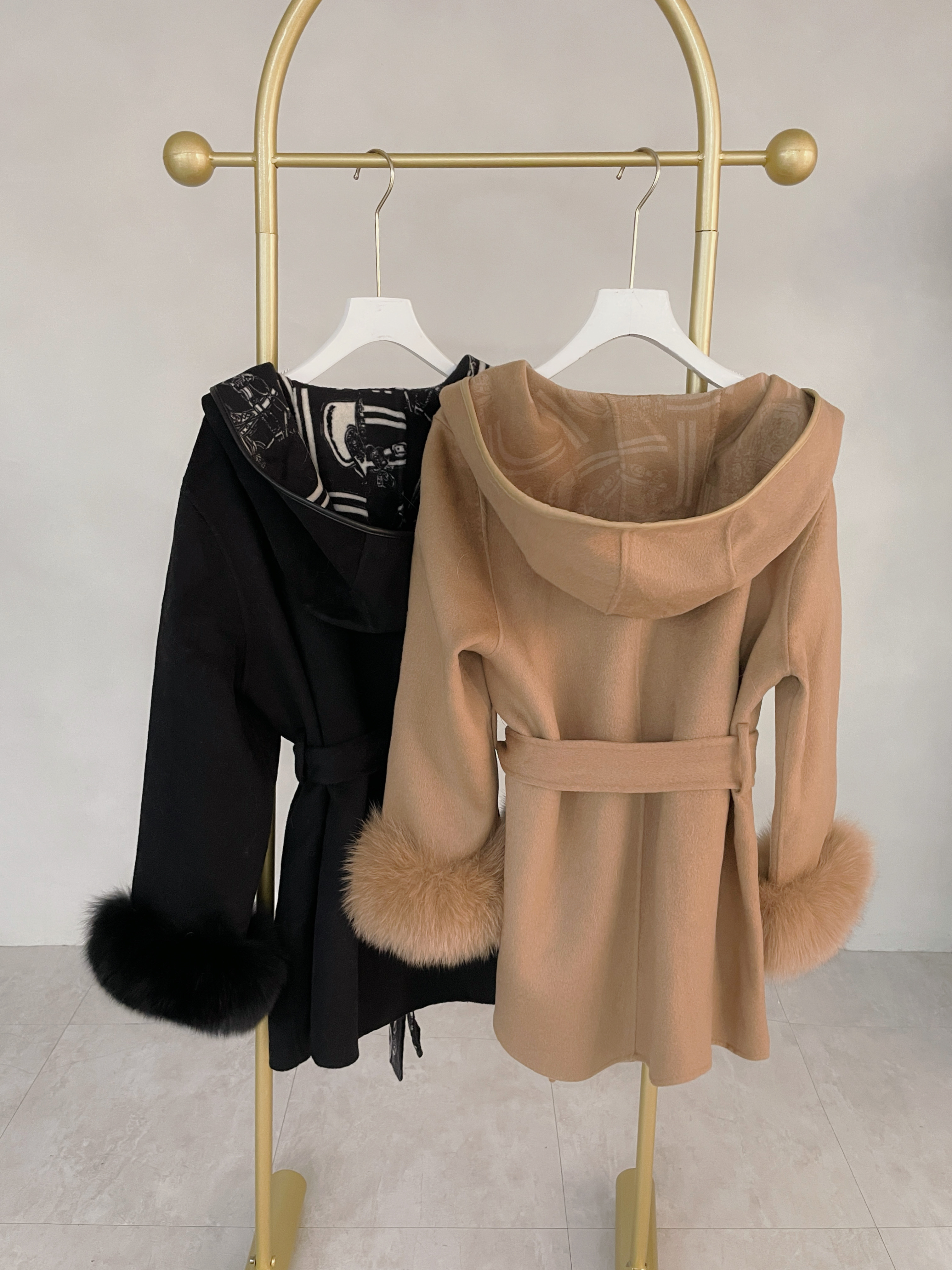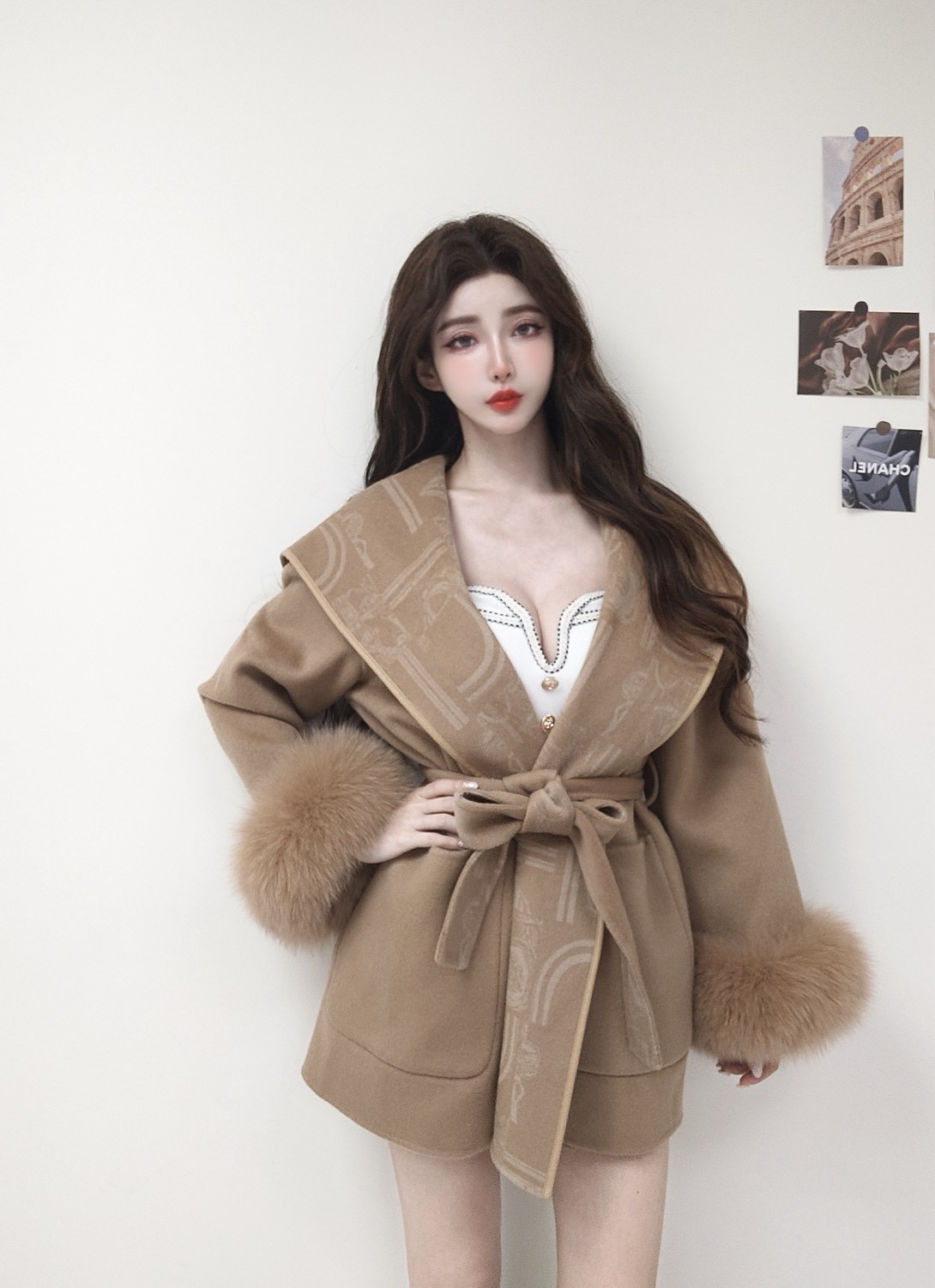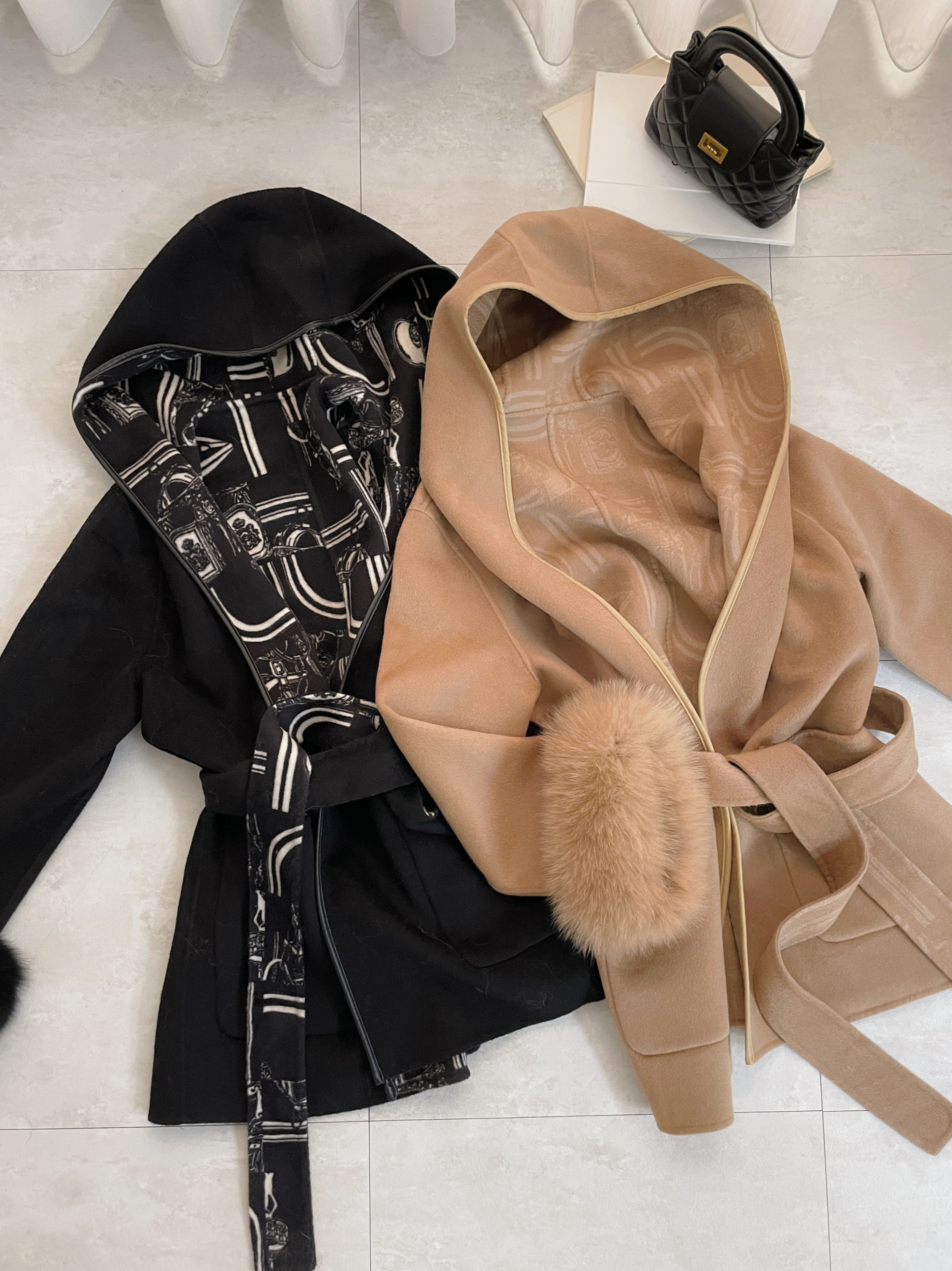 老錢格調 韓國100%狐狸毛拼羊絨雙口袋連帽外套