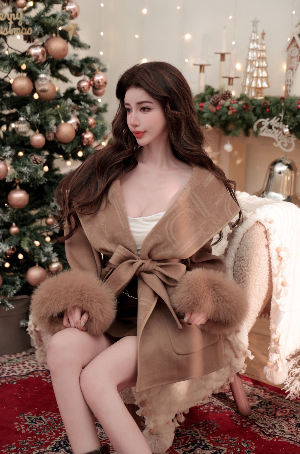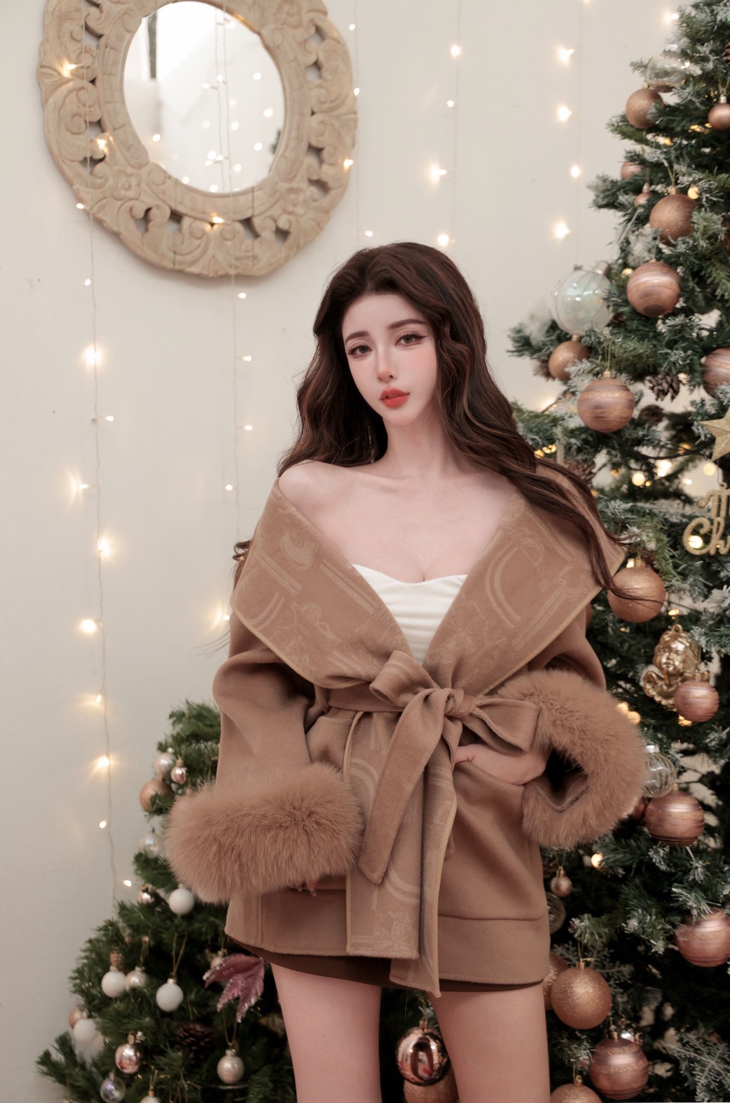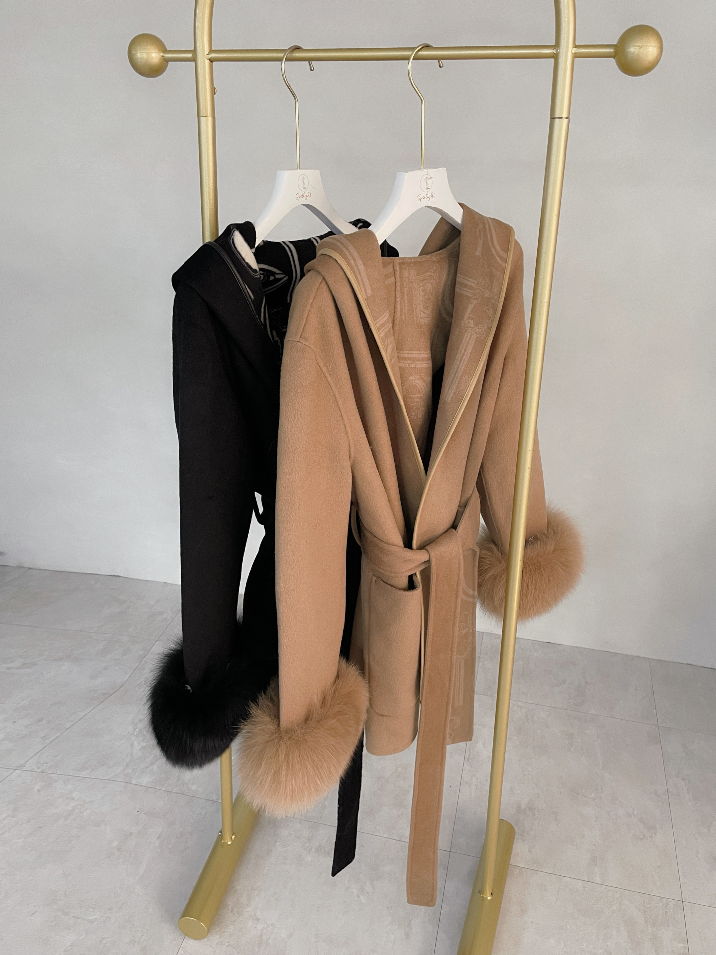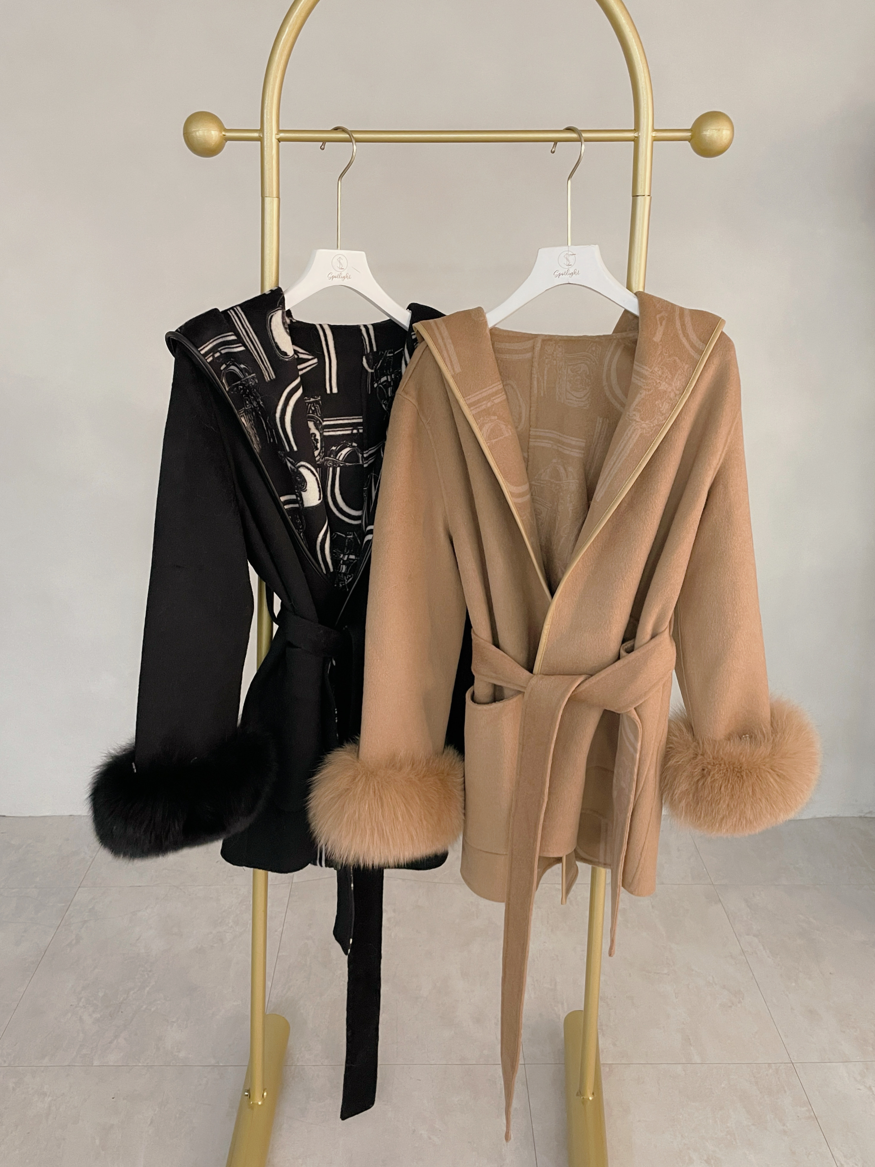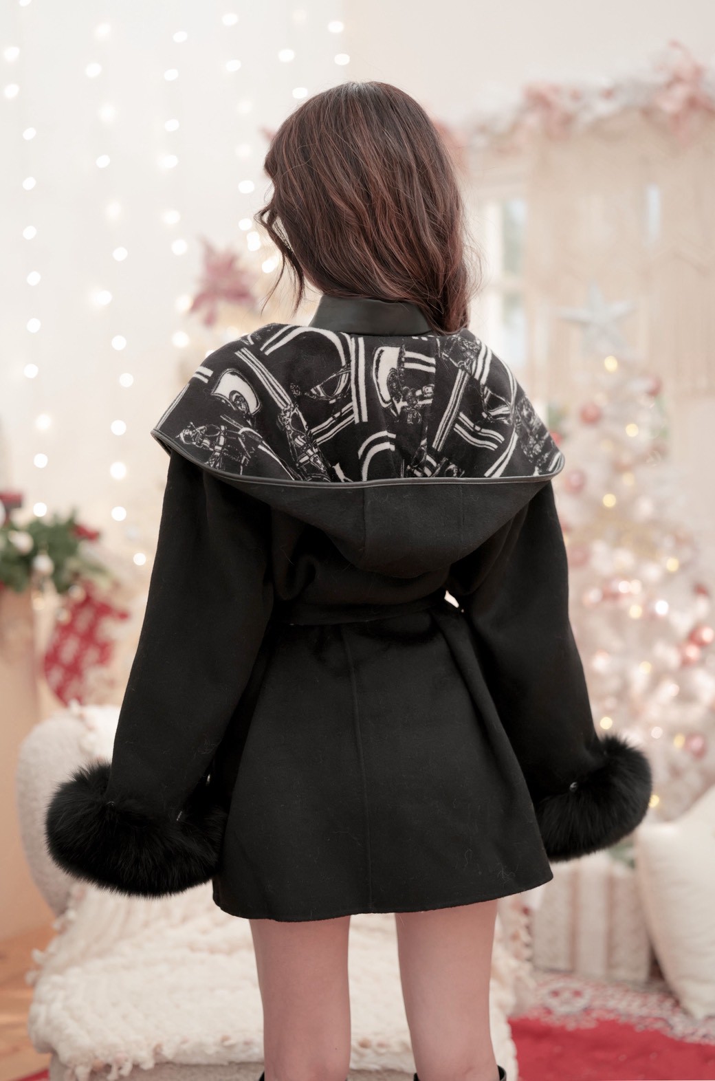 老錢格調 韓國100%狐狸毛拼羊絨雙口袋連帽外套
