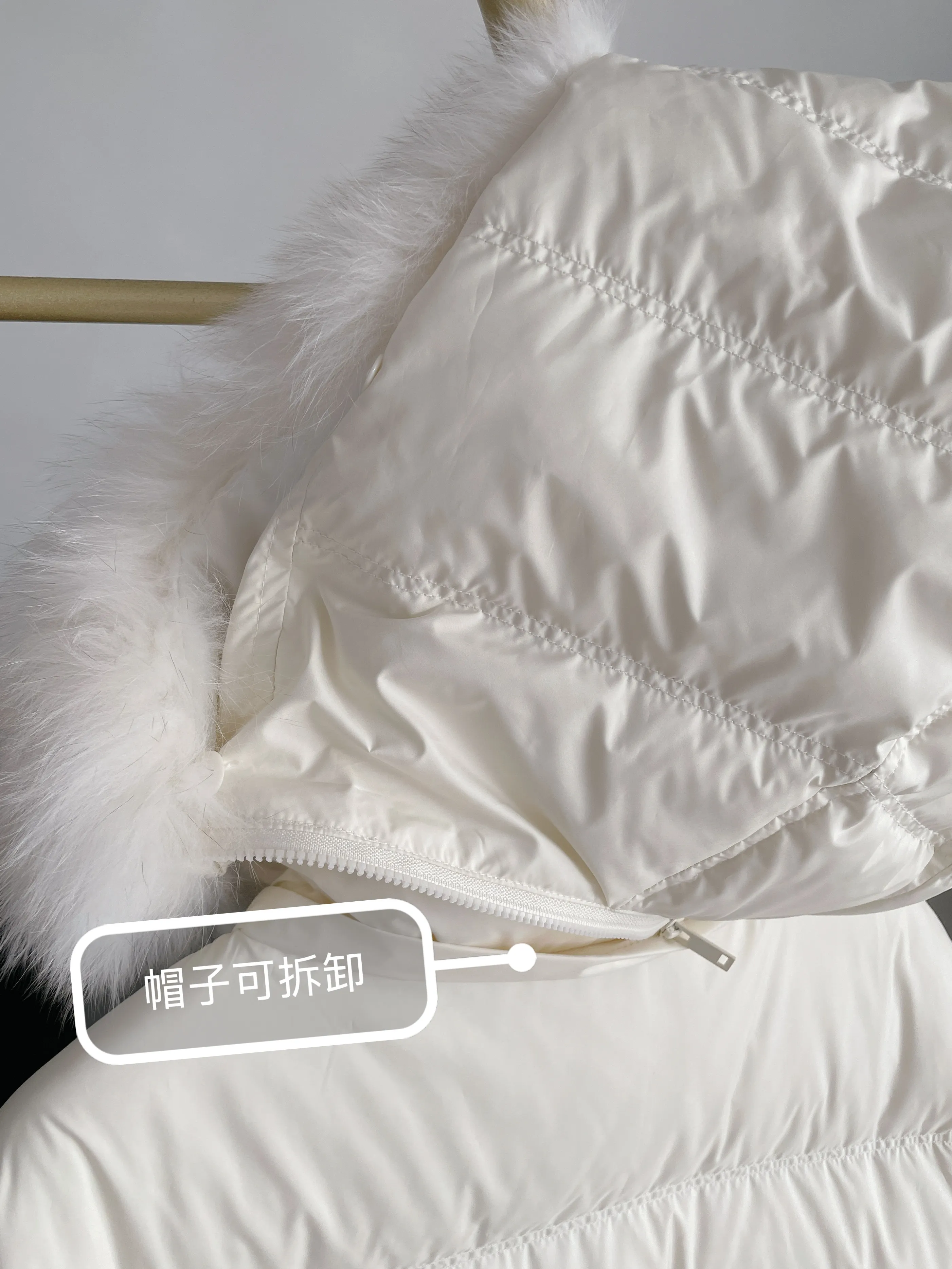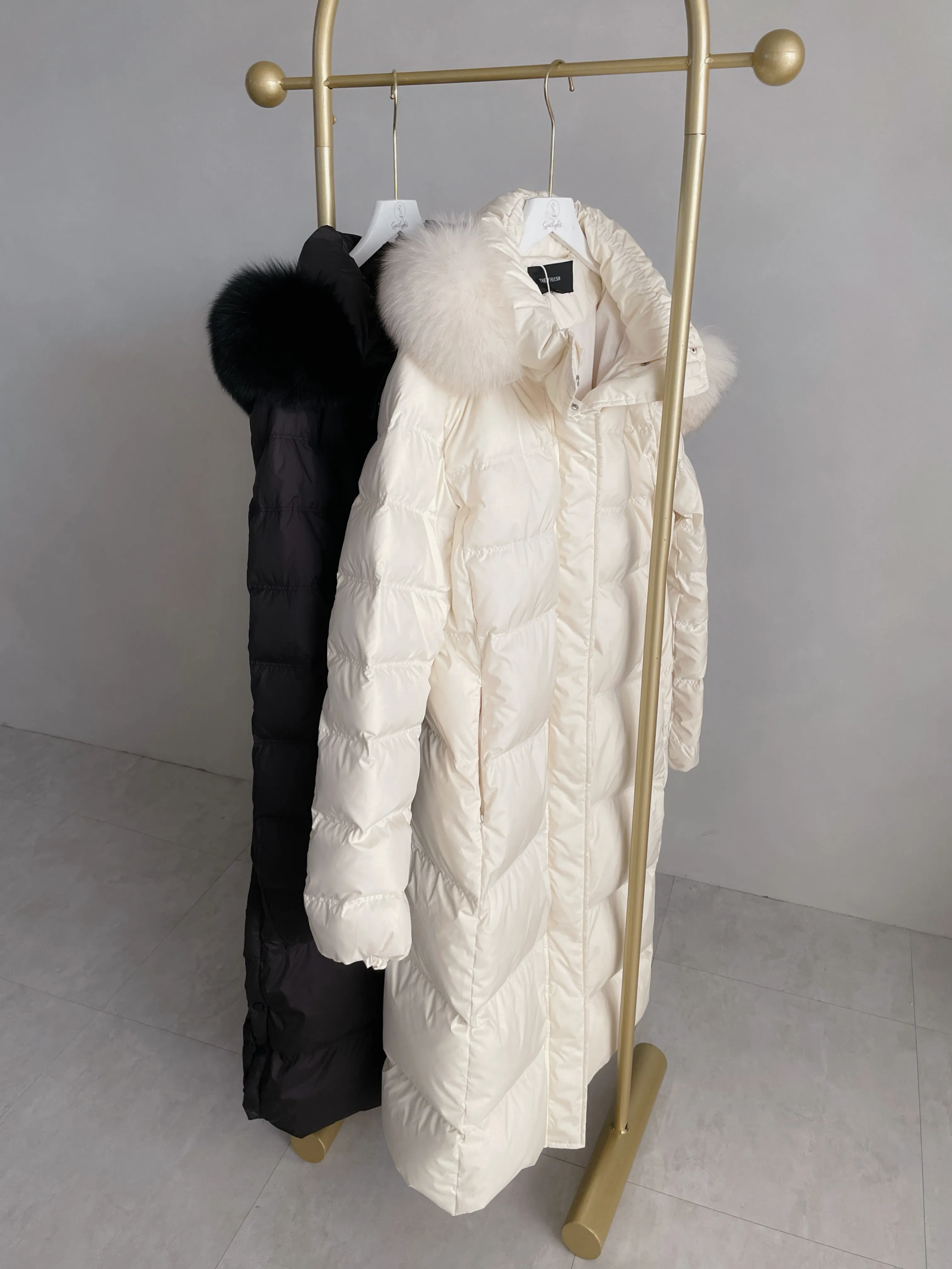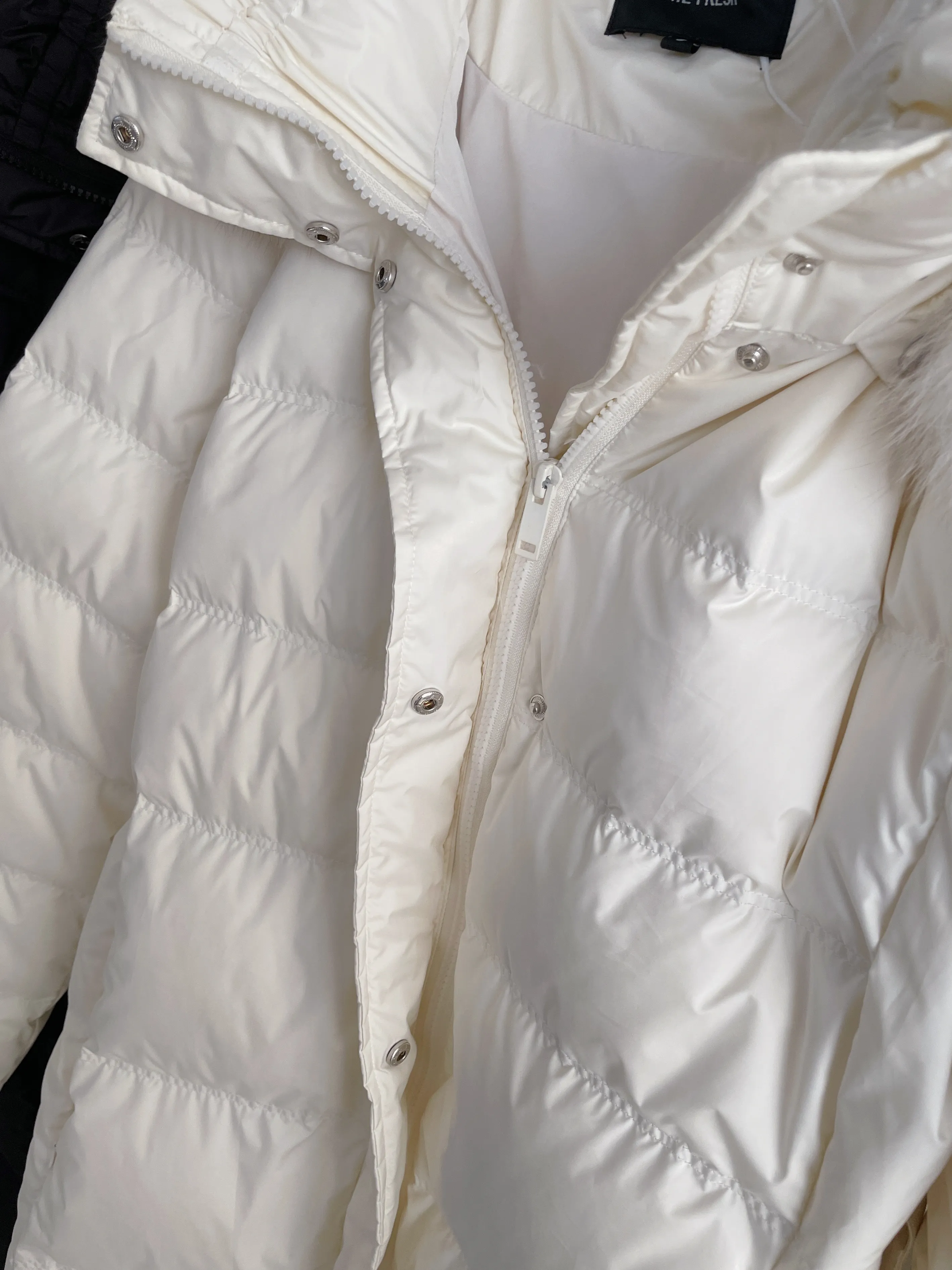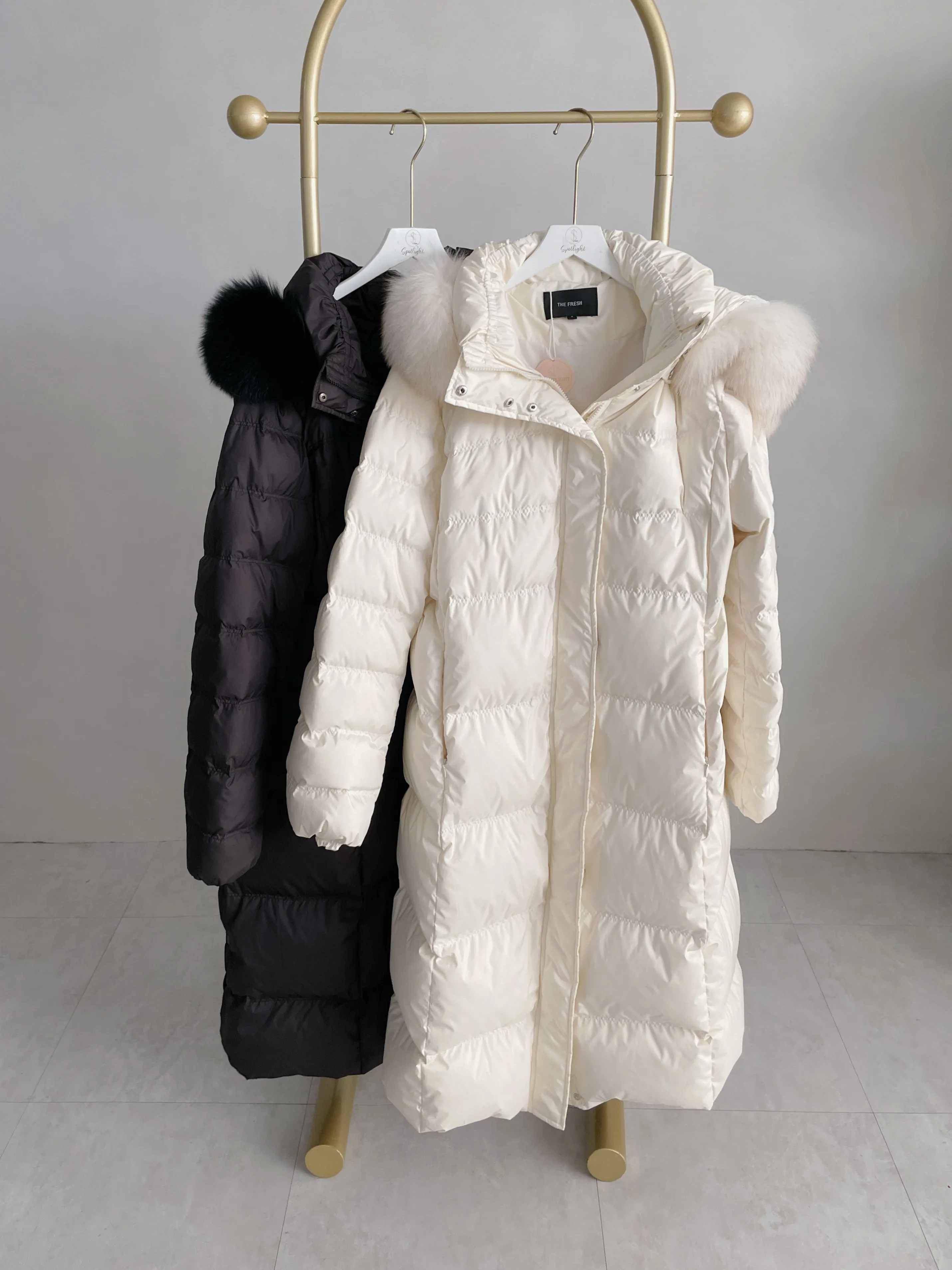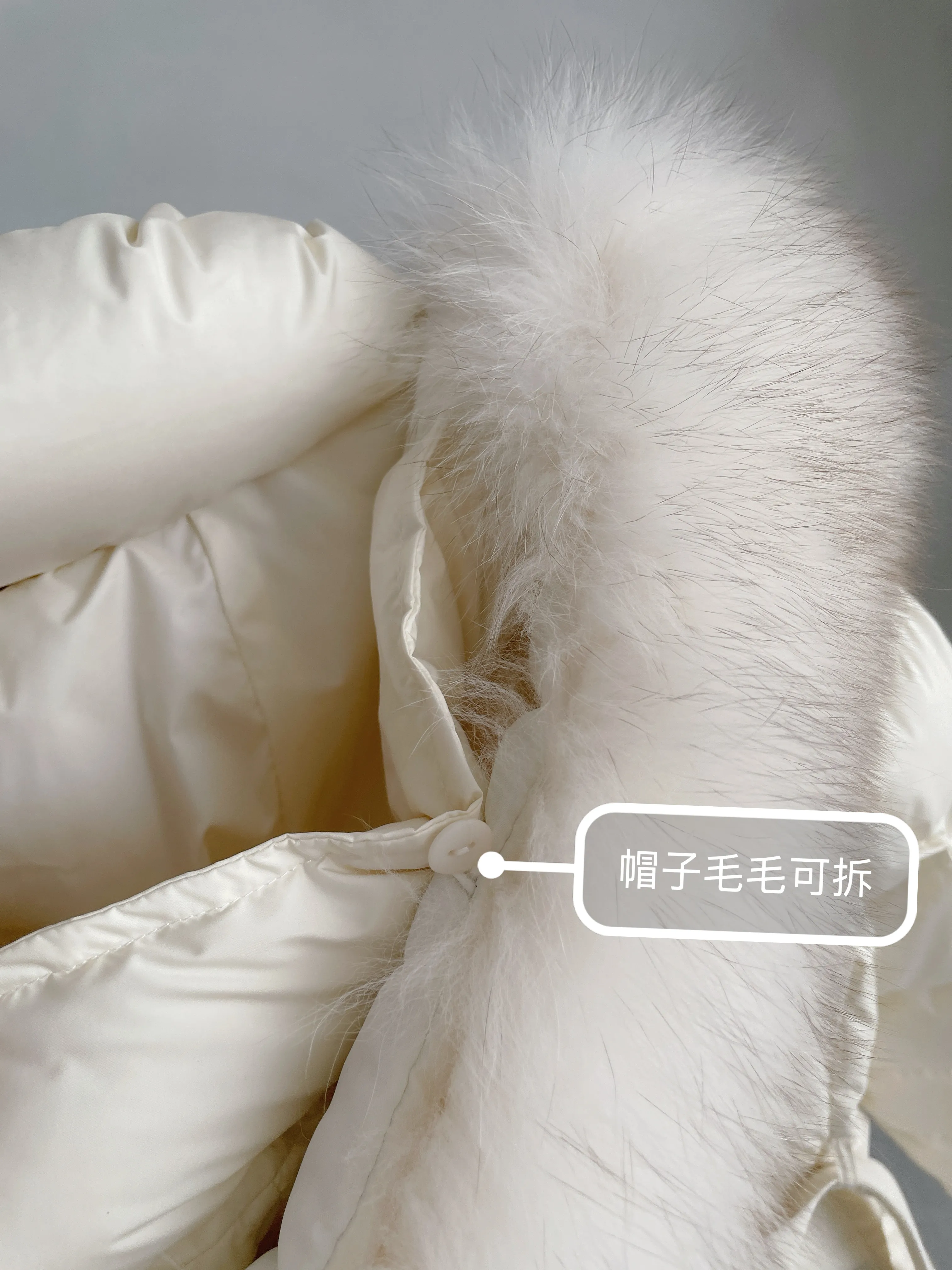 韓國100%鵝絨真狐狸毛長版附腰帶外套