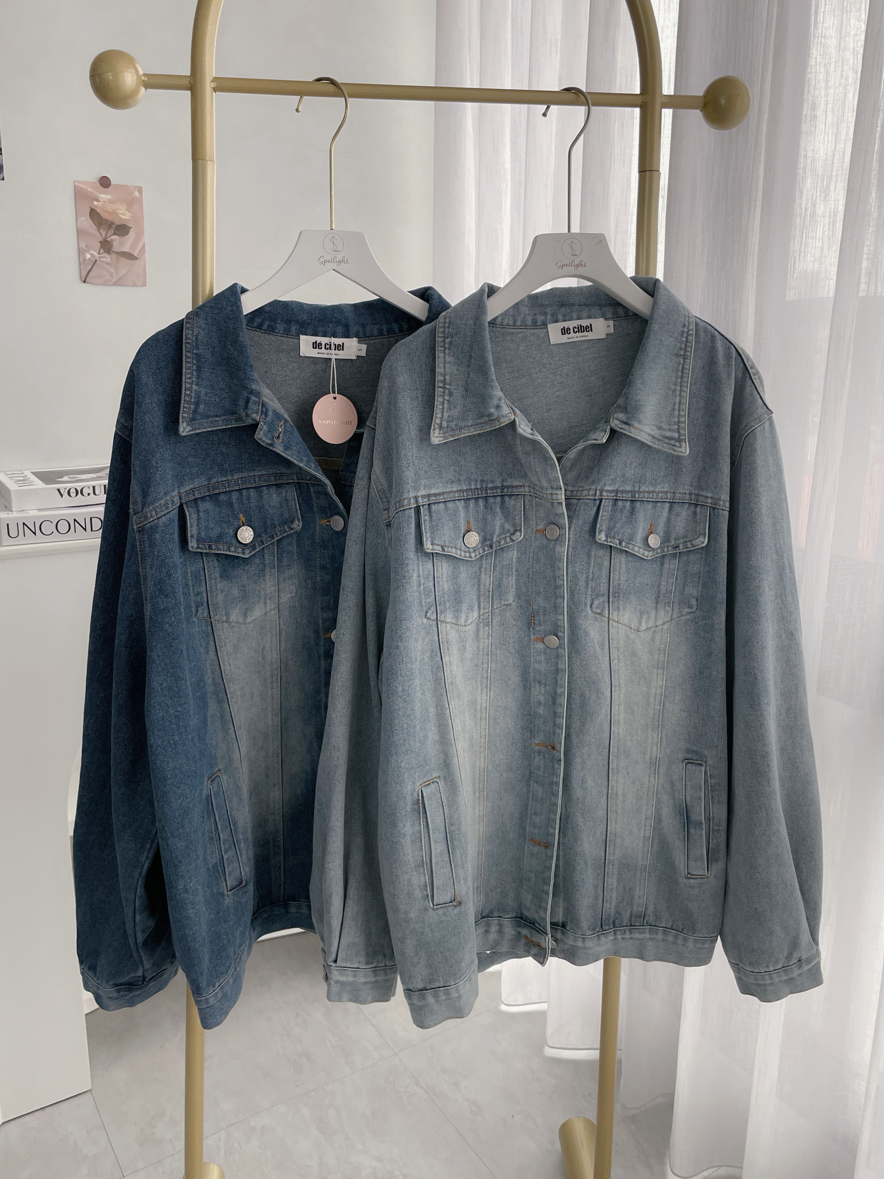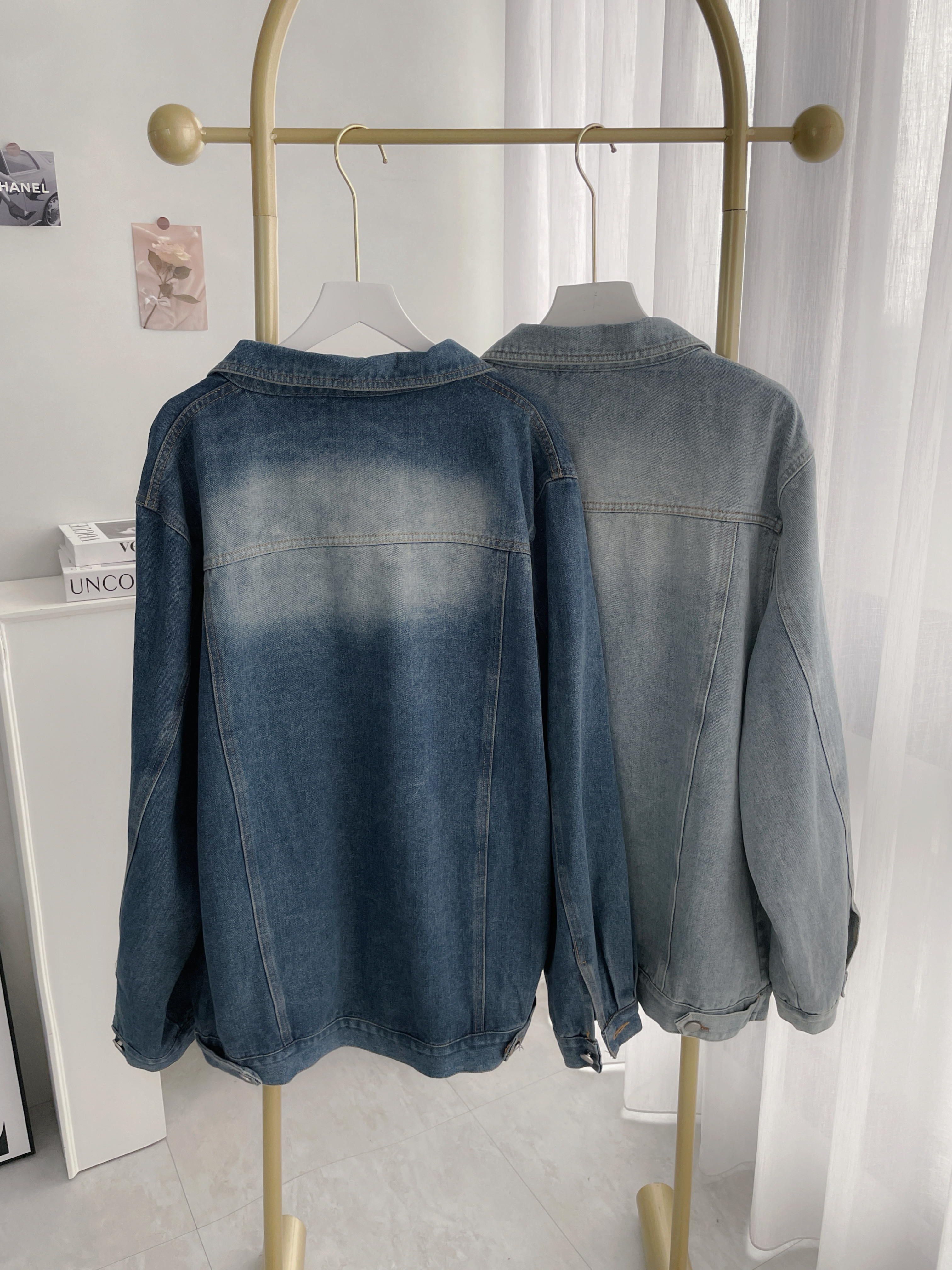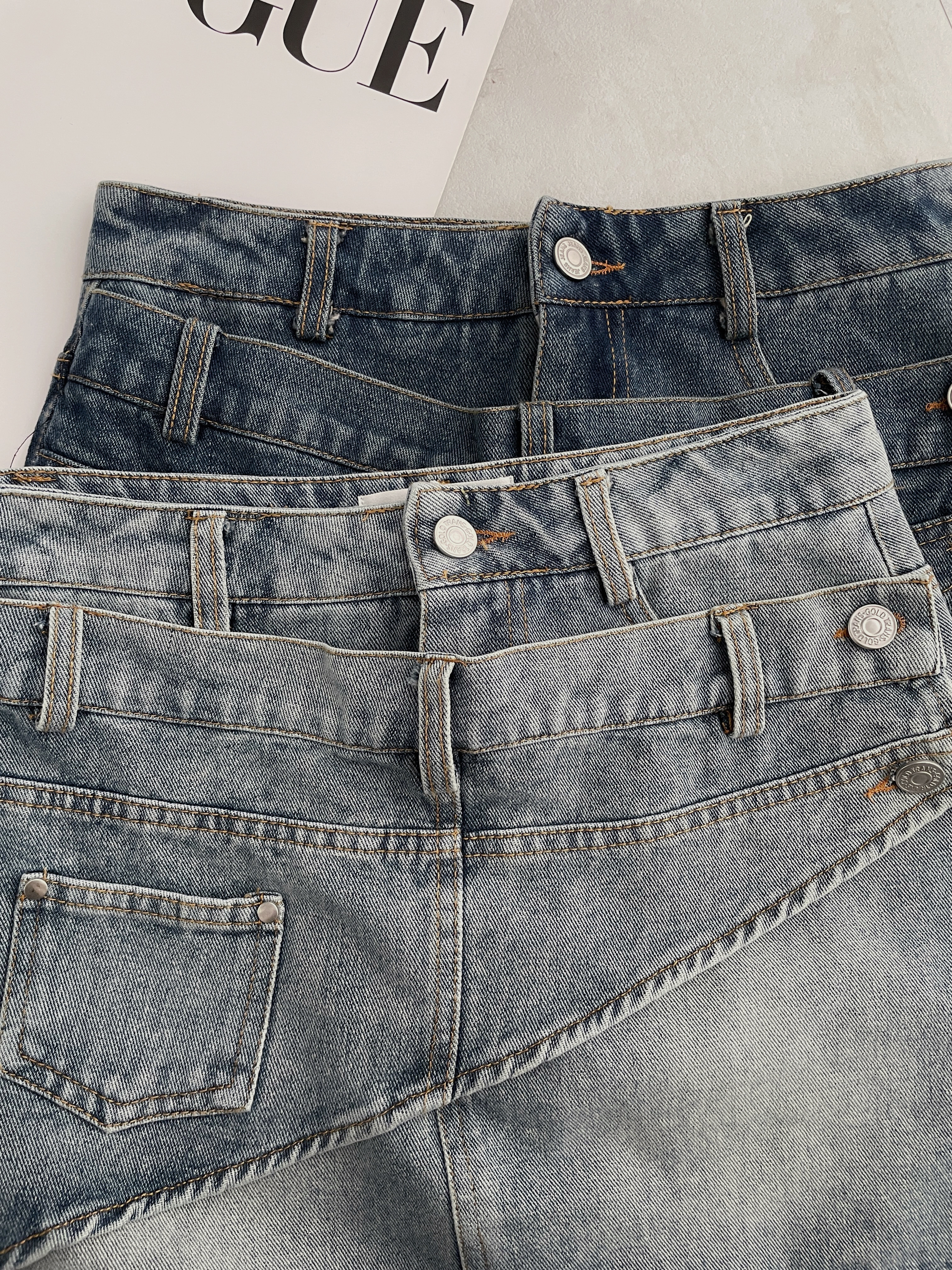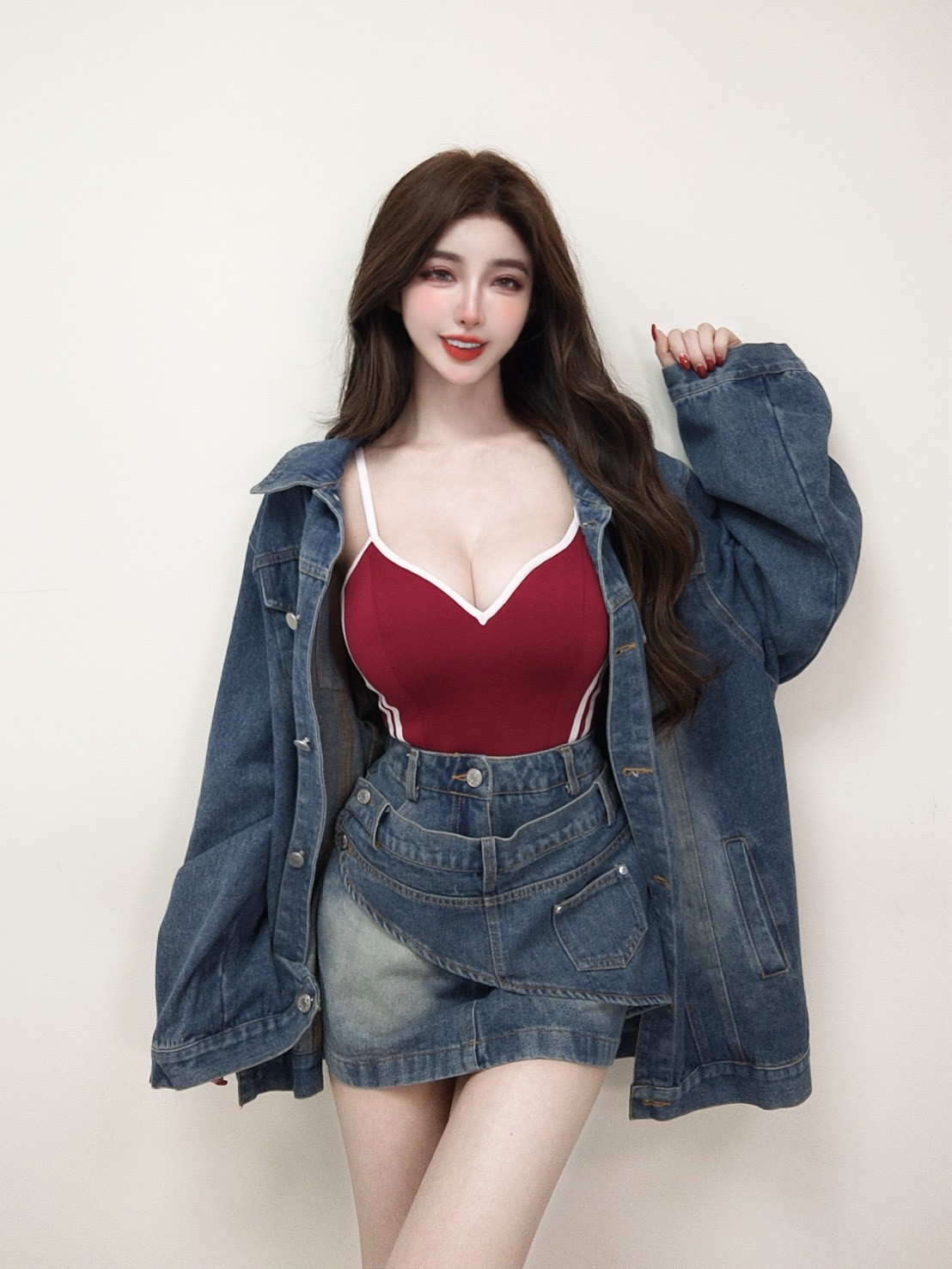 【SET】丹寧系列 韓國雙口袋牛仔長版外套+假兩件短裙