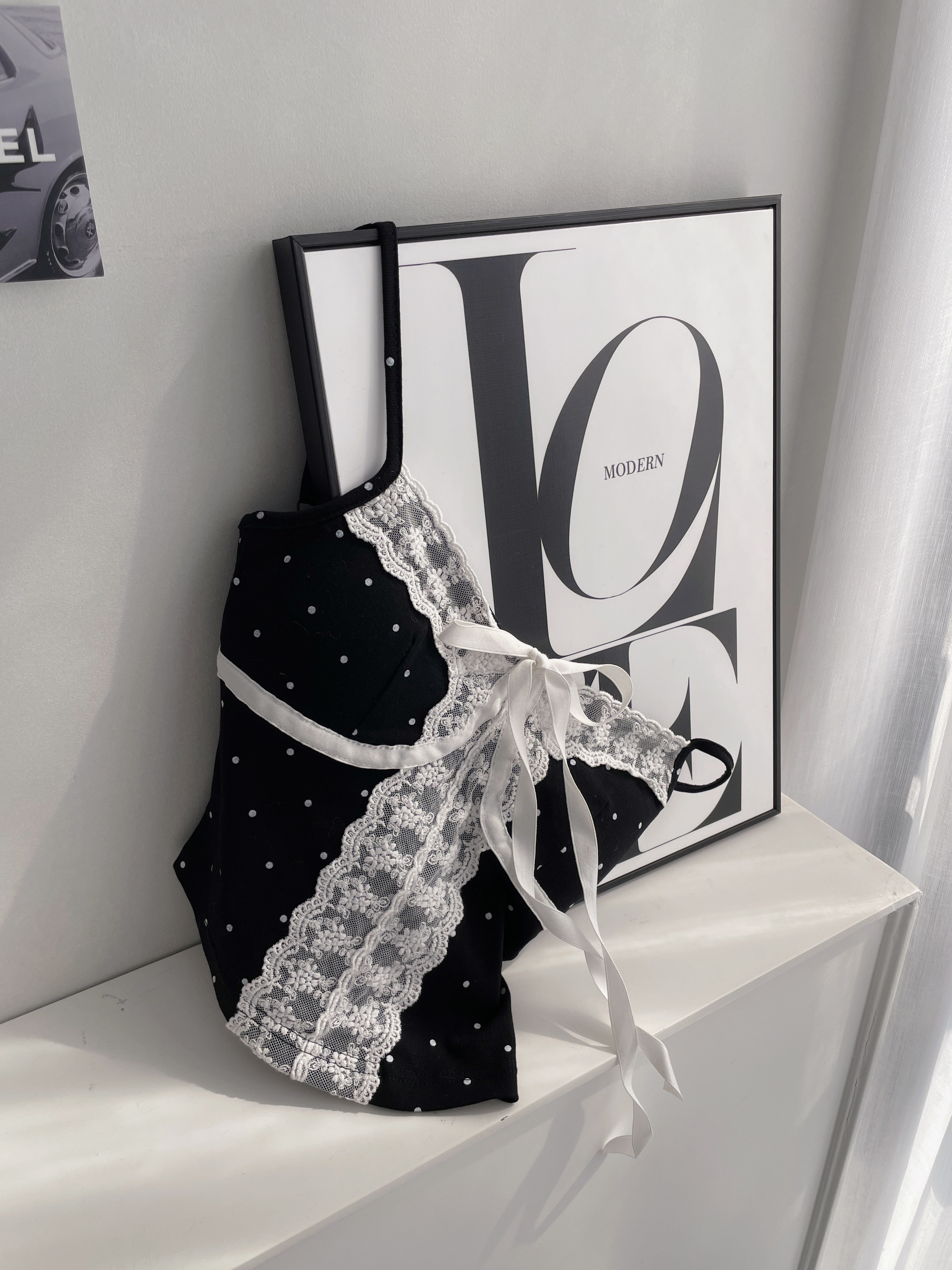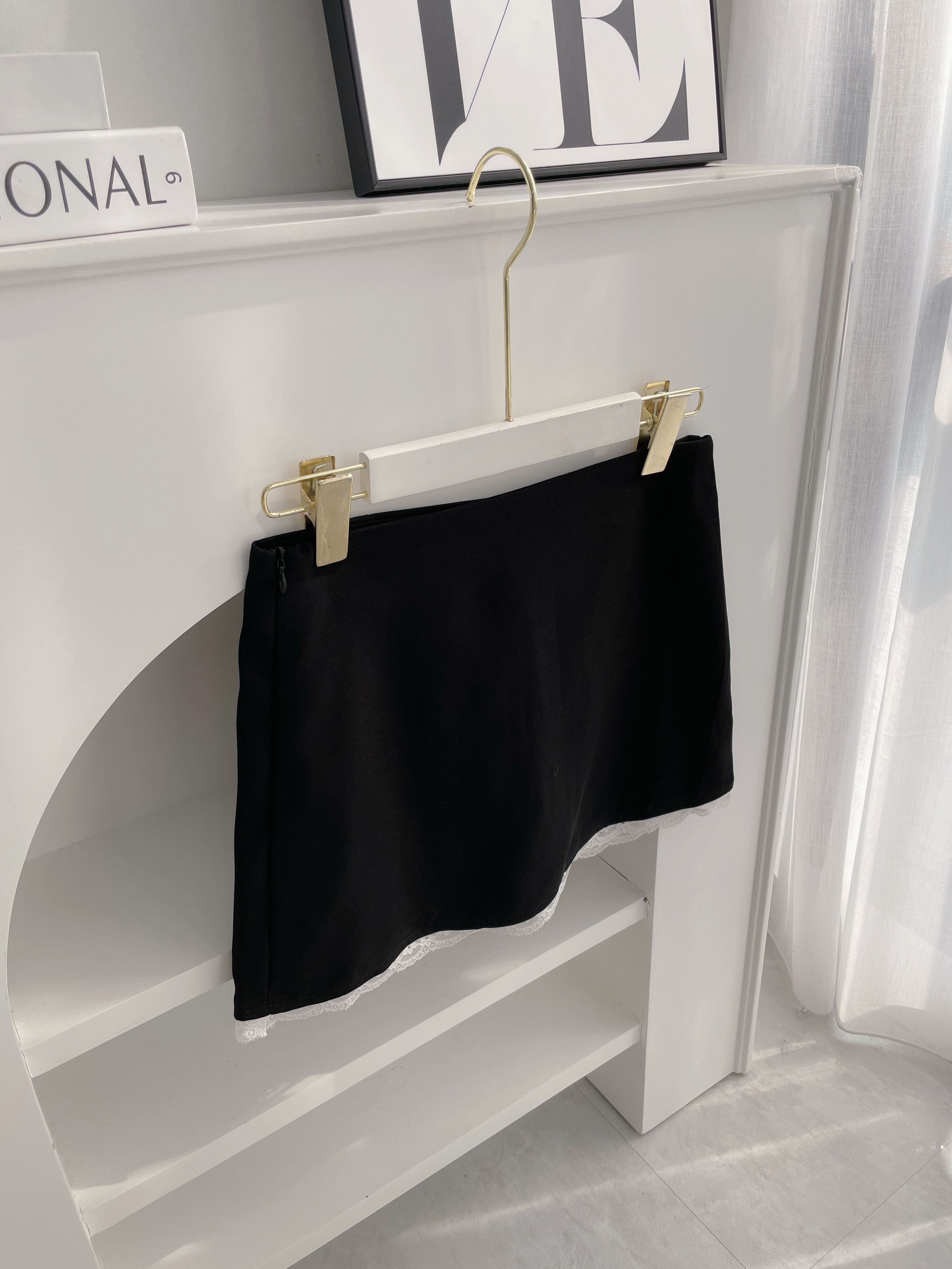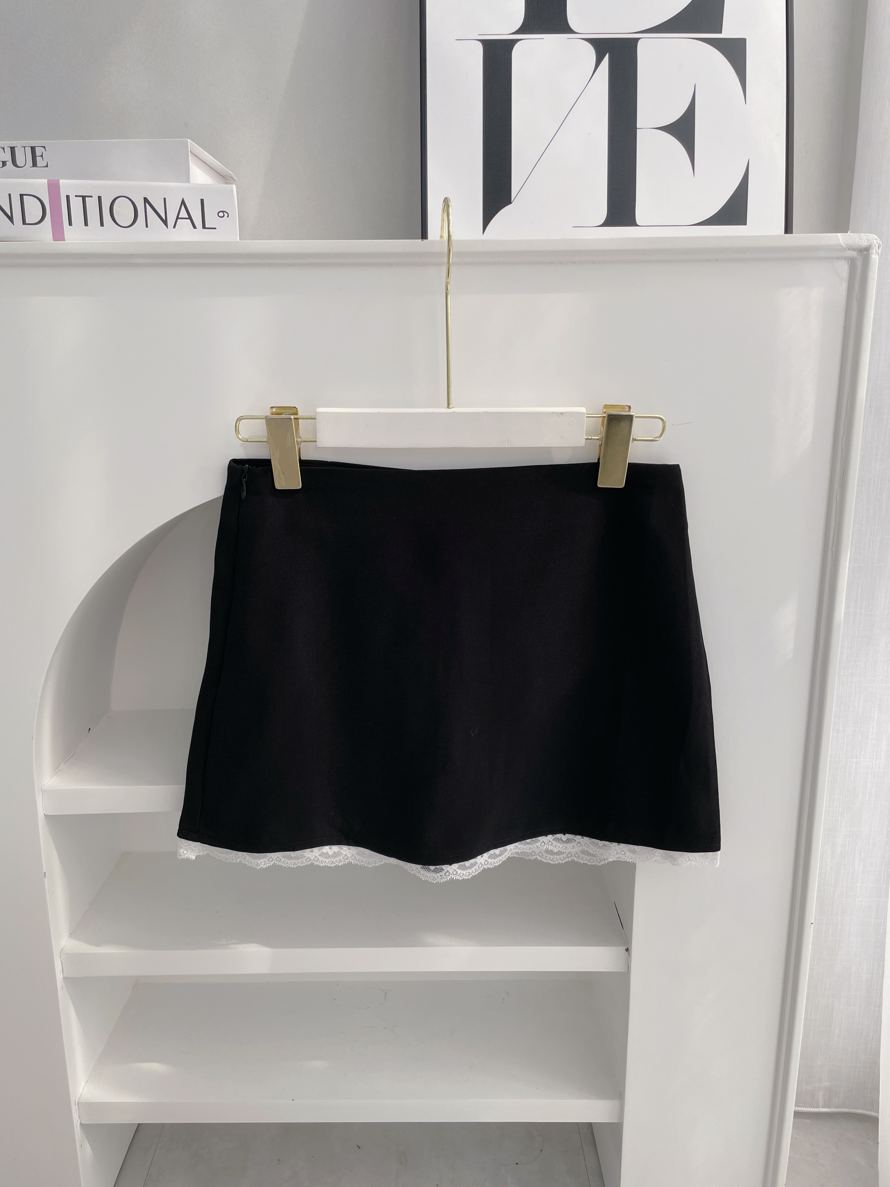 - 下擺拼接白色蕾絲,與上衣呼應