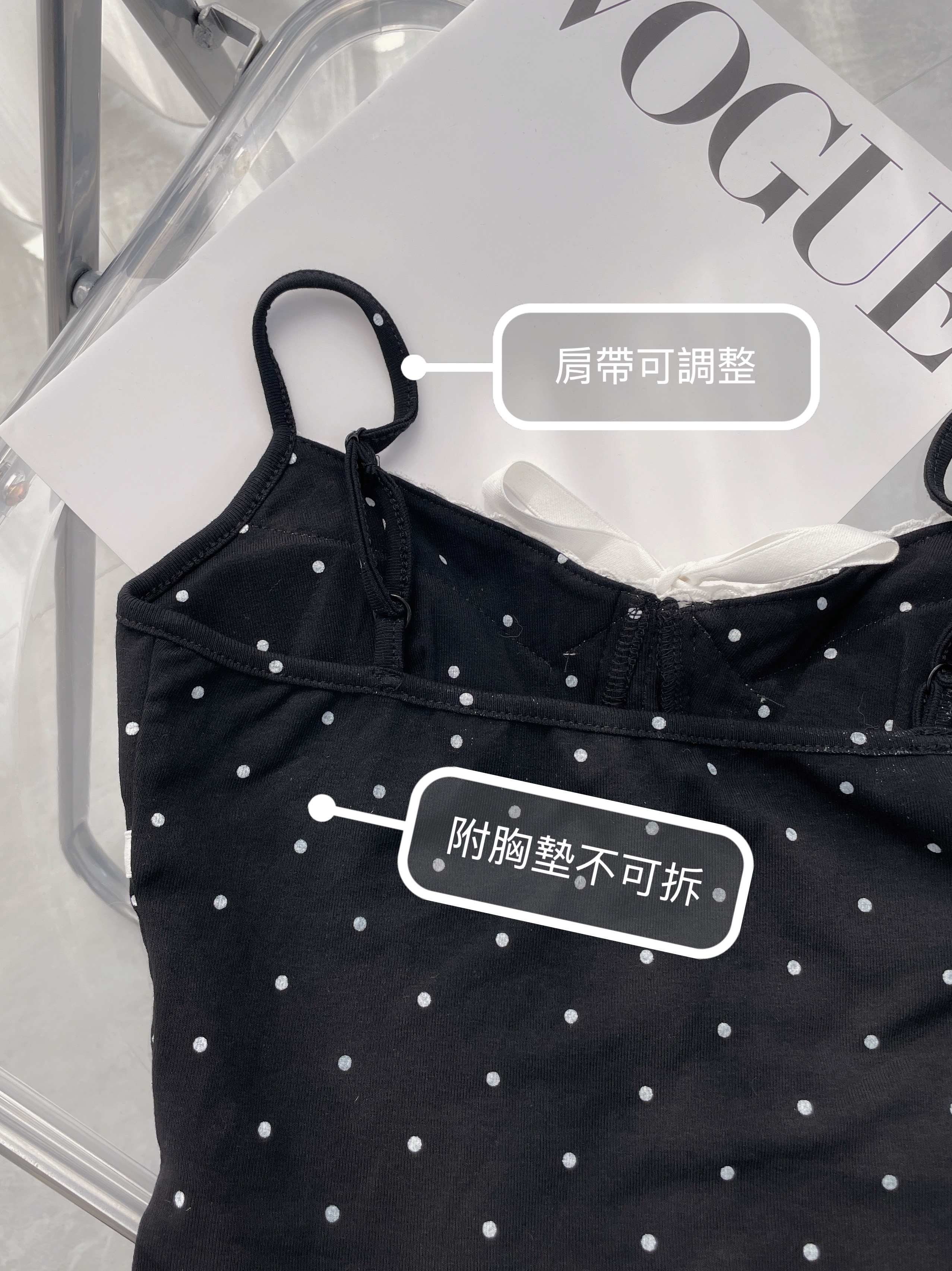 - 內附胸墊,可單穿不必另穿內衣
