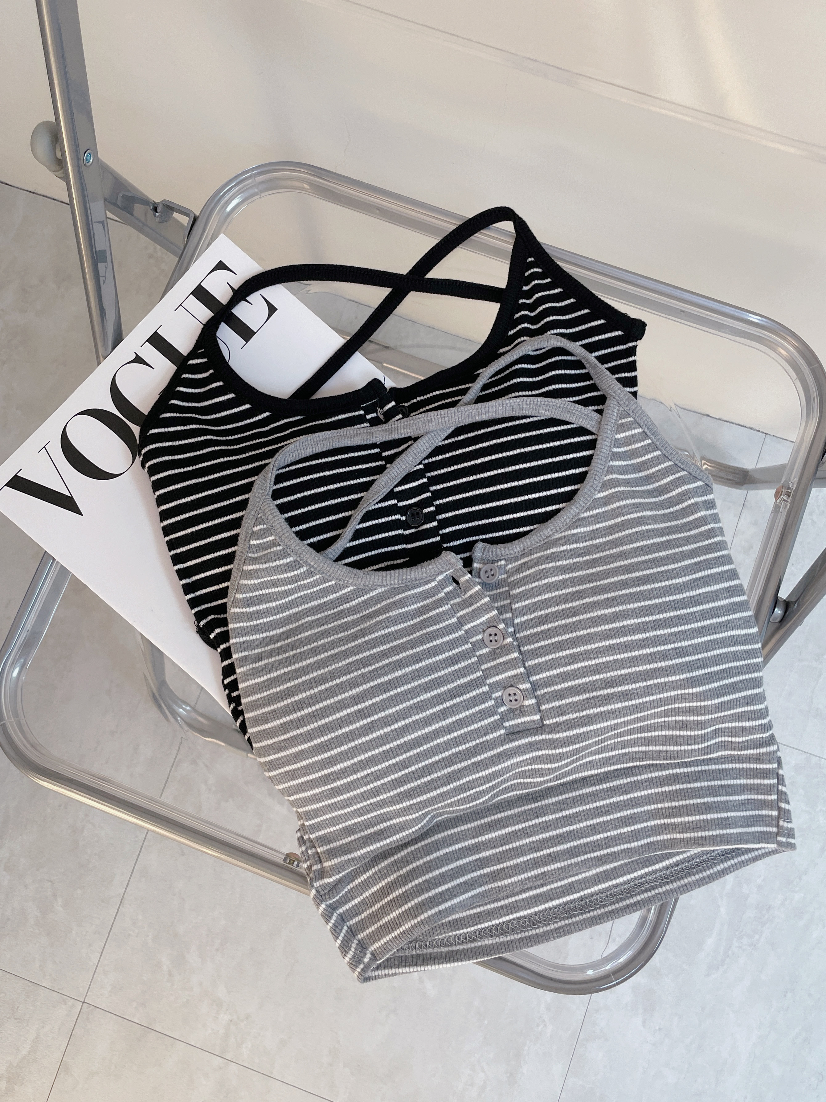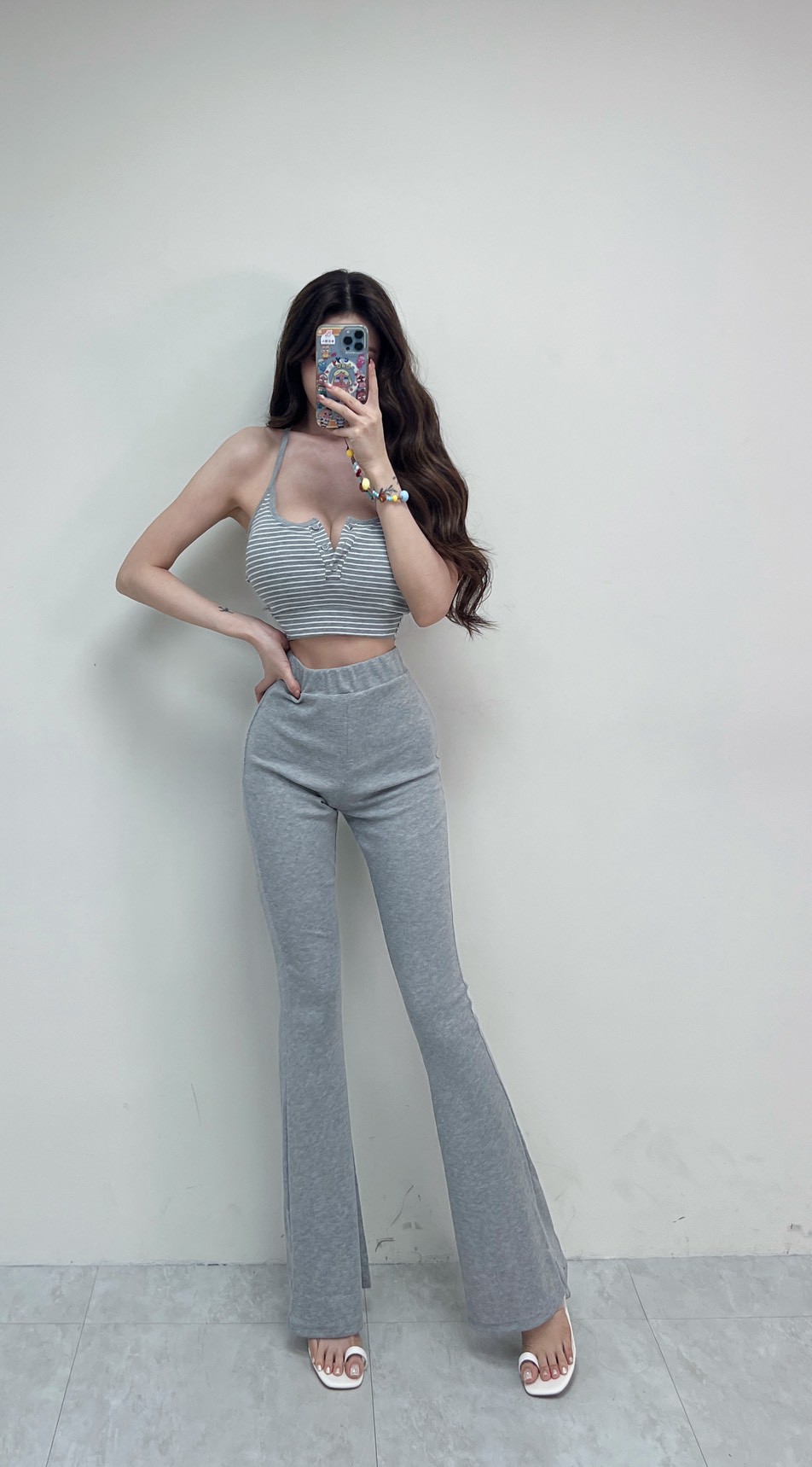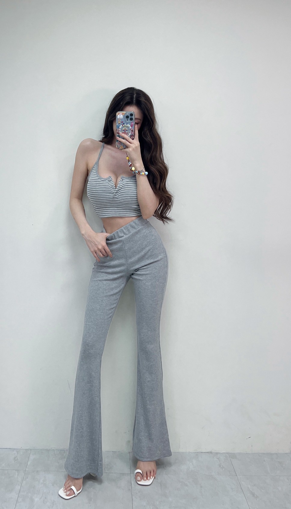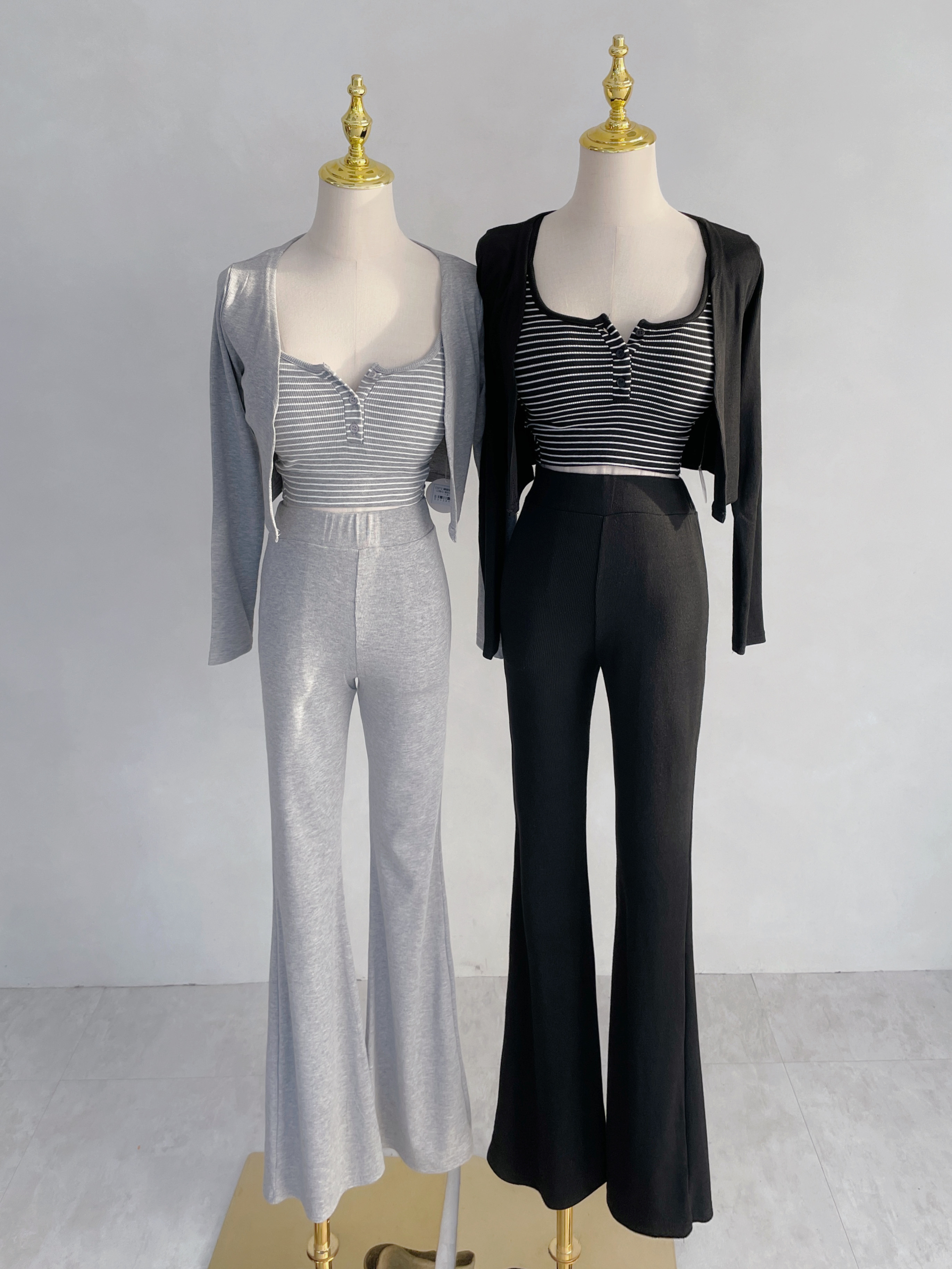 【SET】韓國條紋露背平口背心+喇叭褲+外套