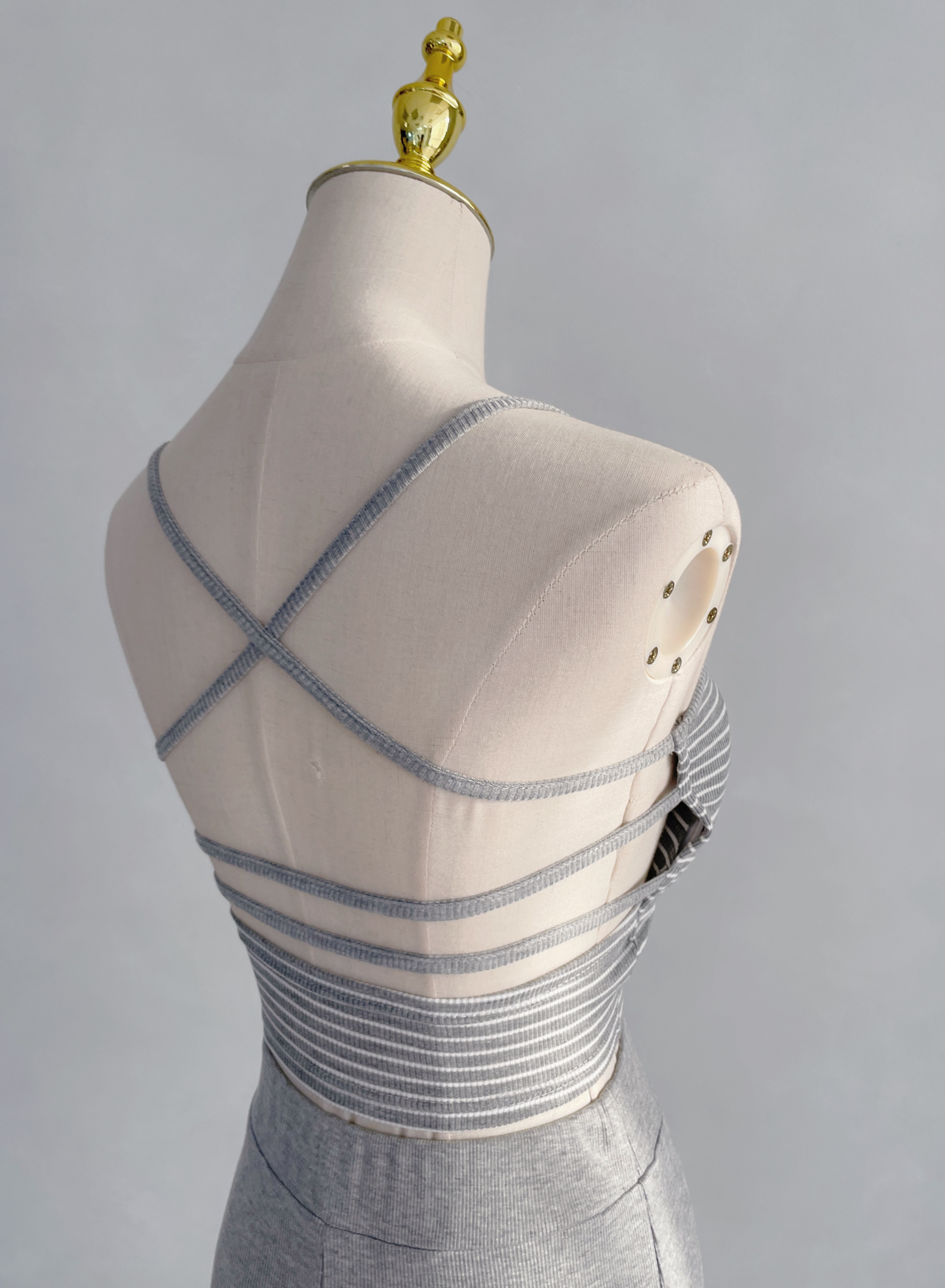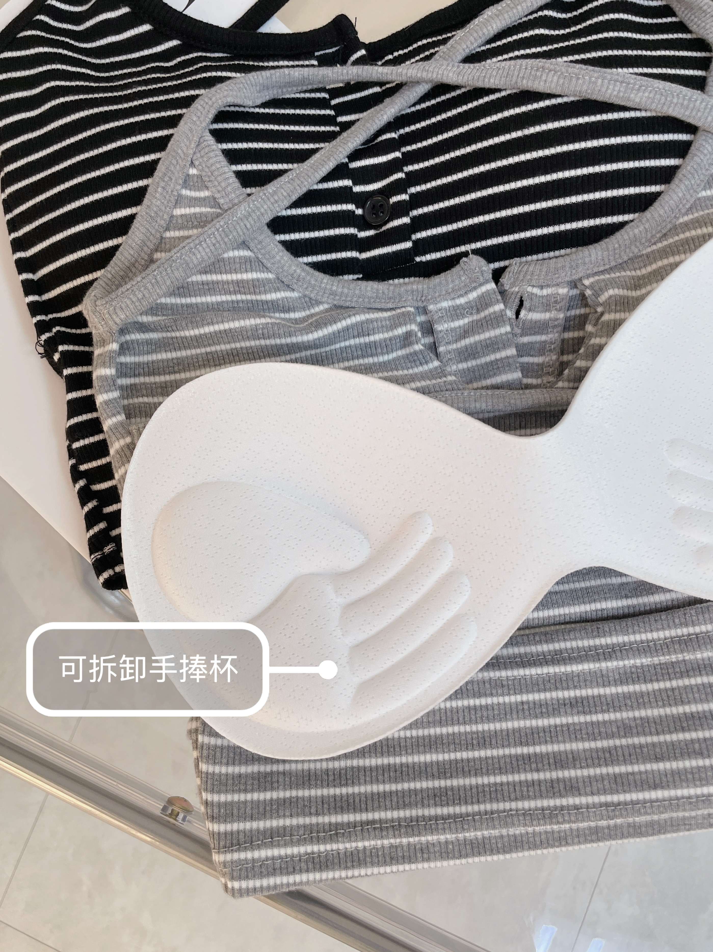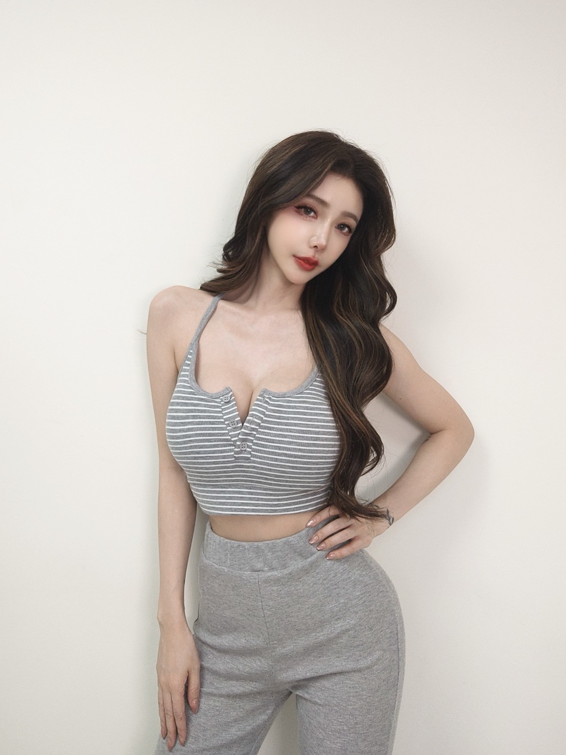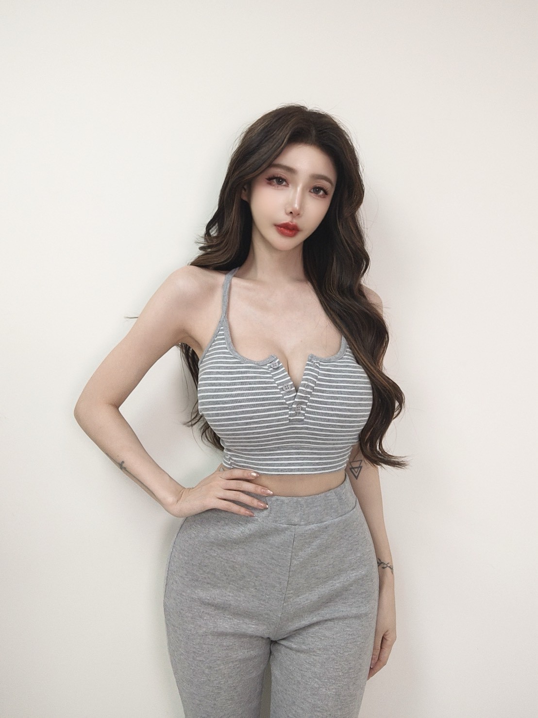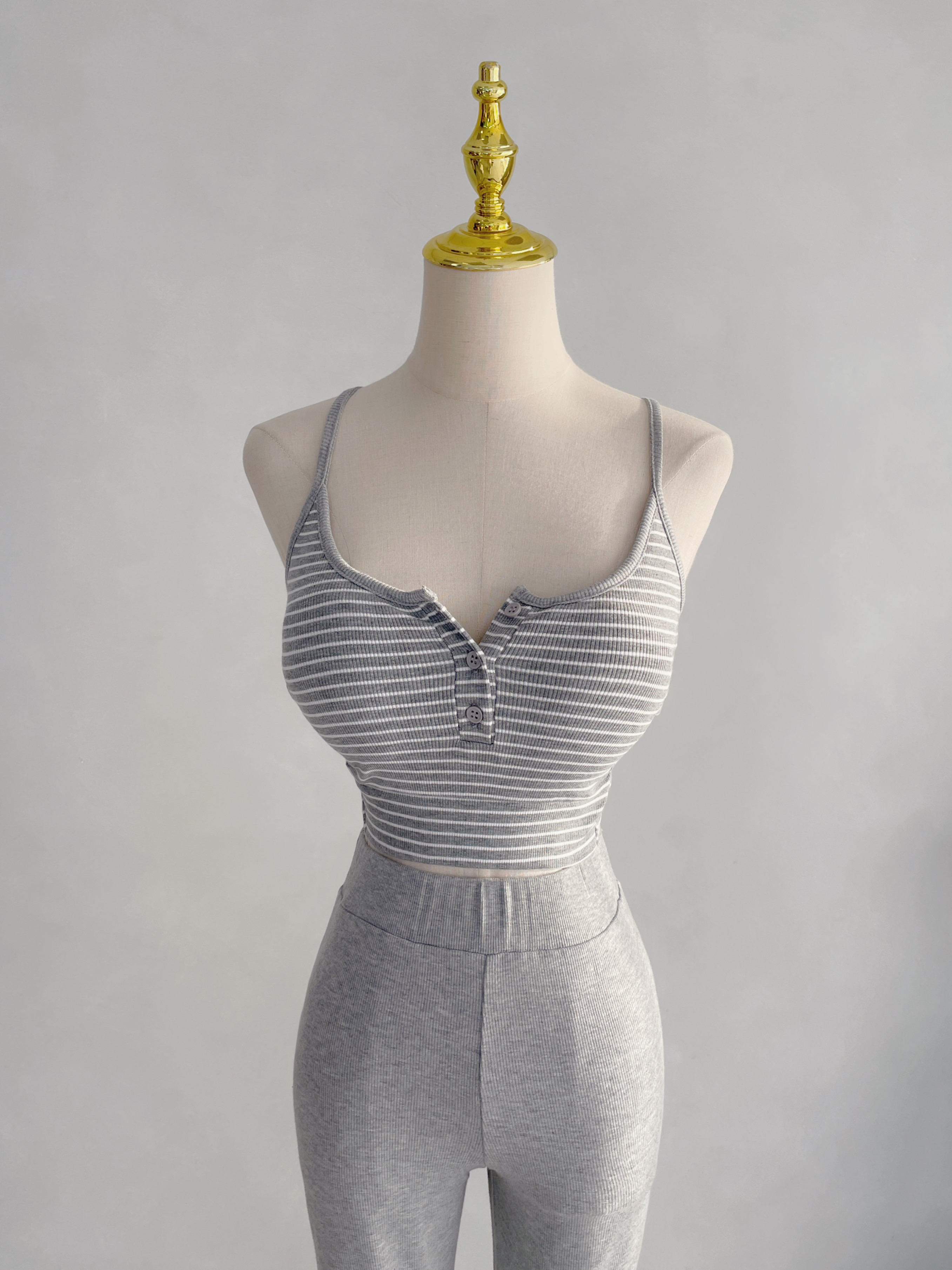 【SET】韓國條紋露背平口背心+喇叭褲+外套
