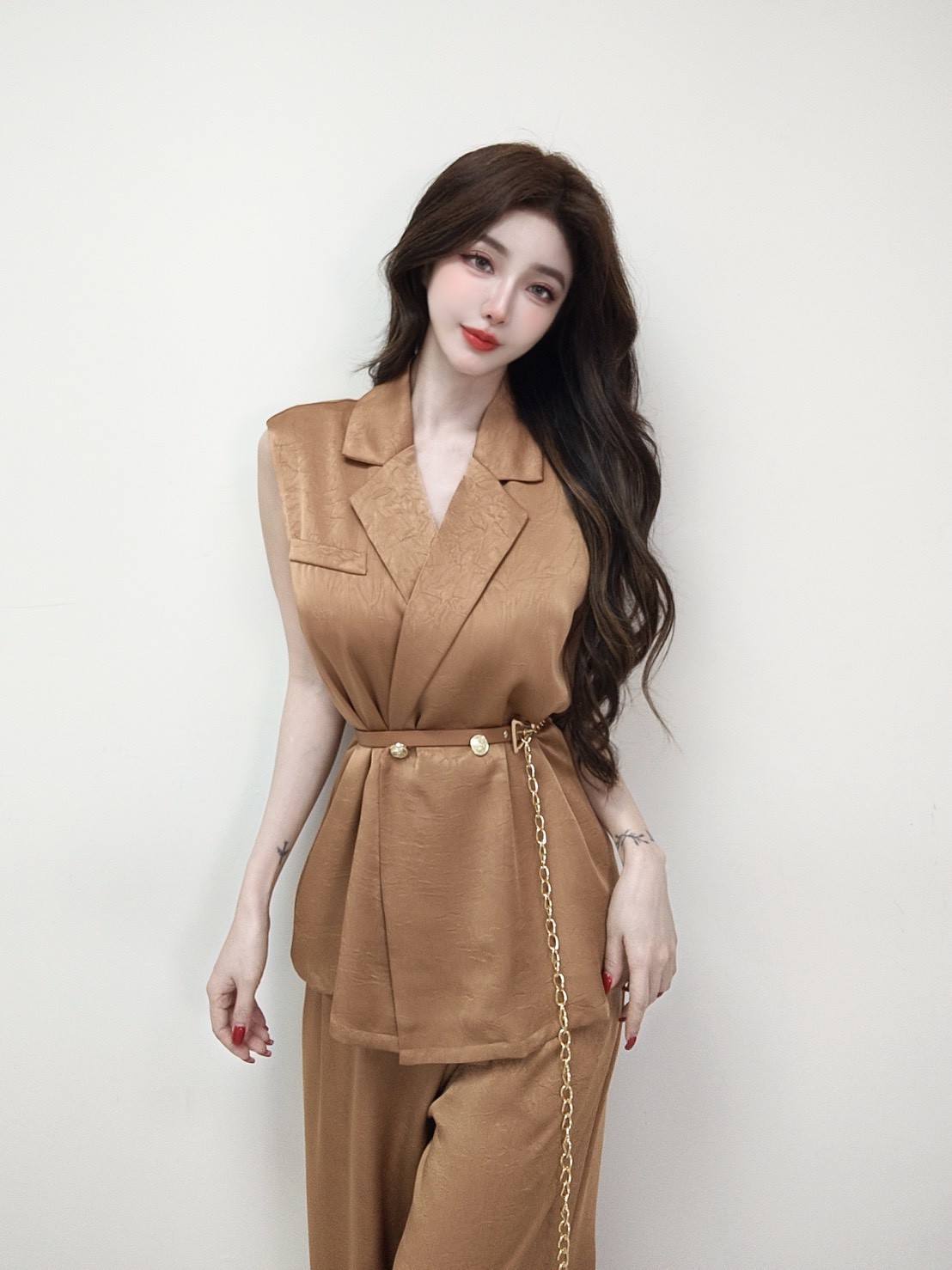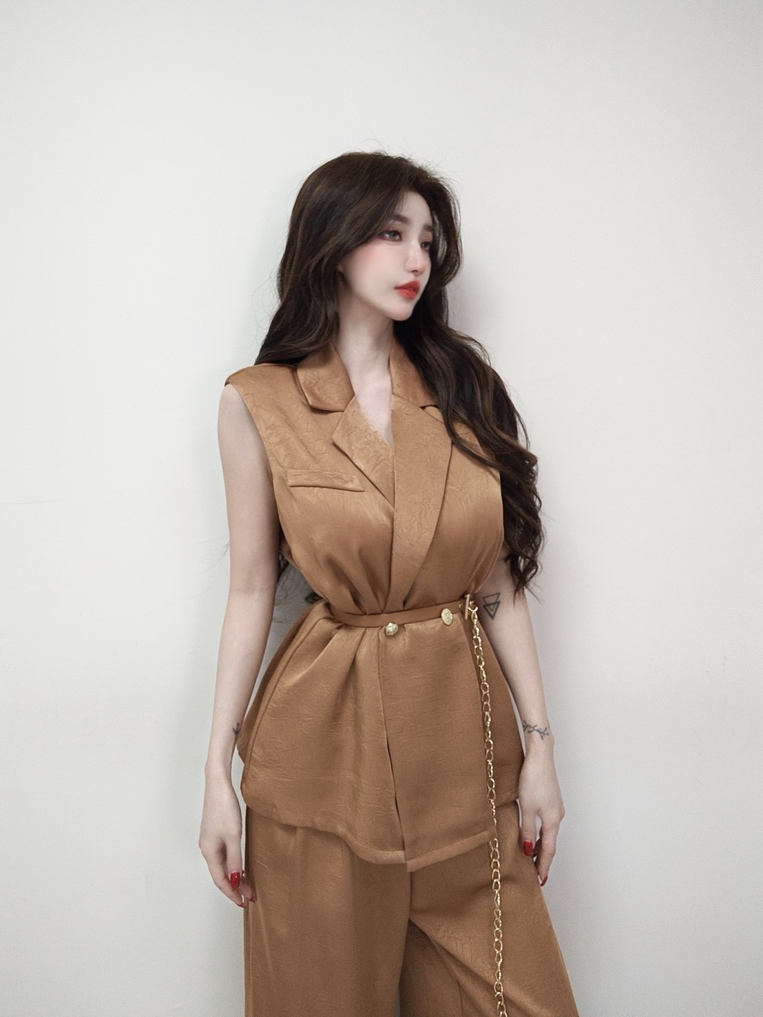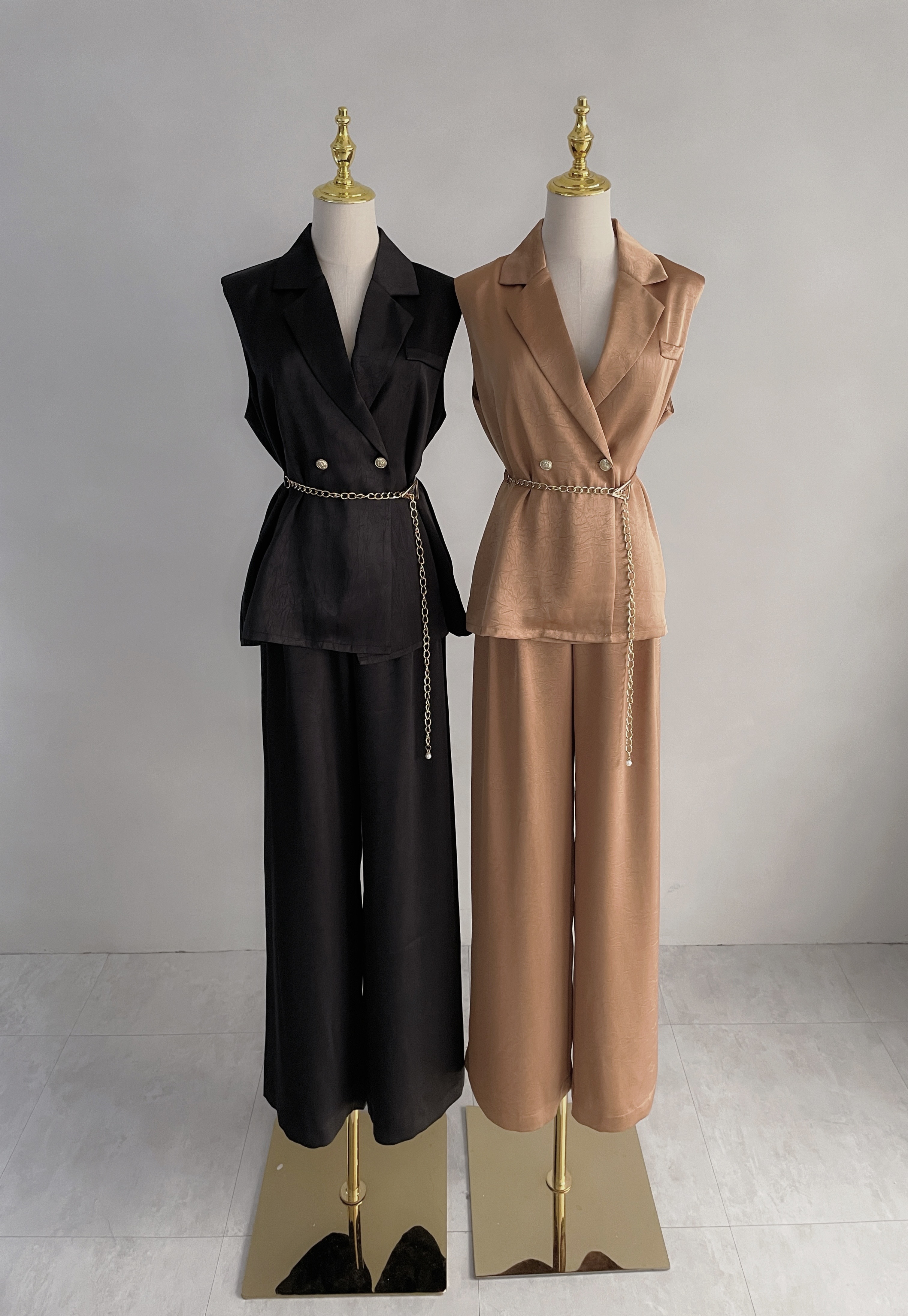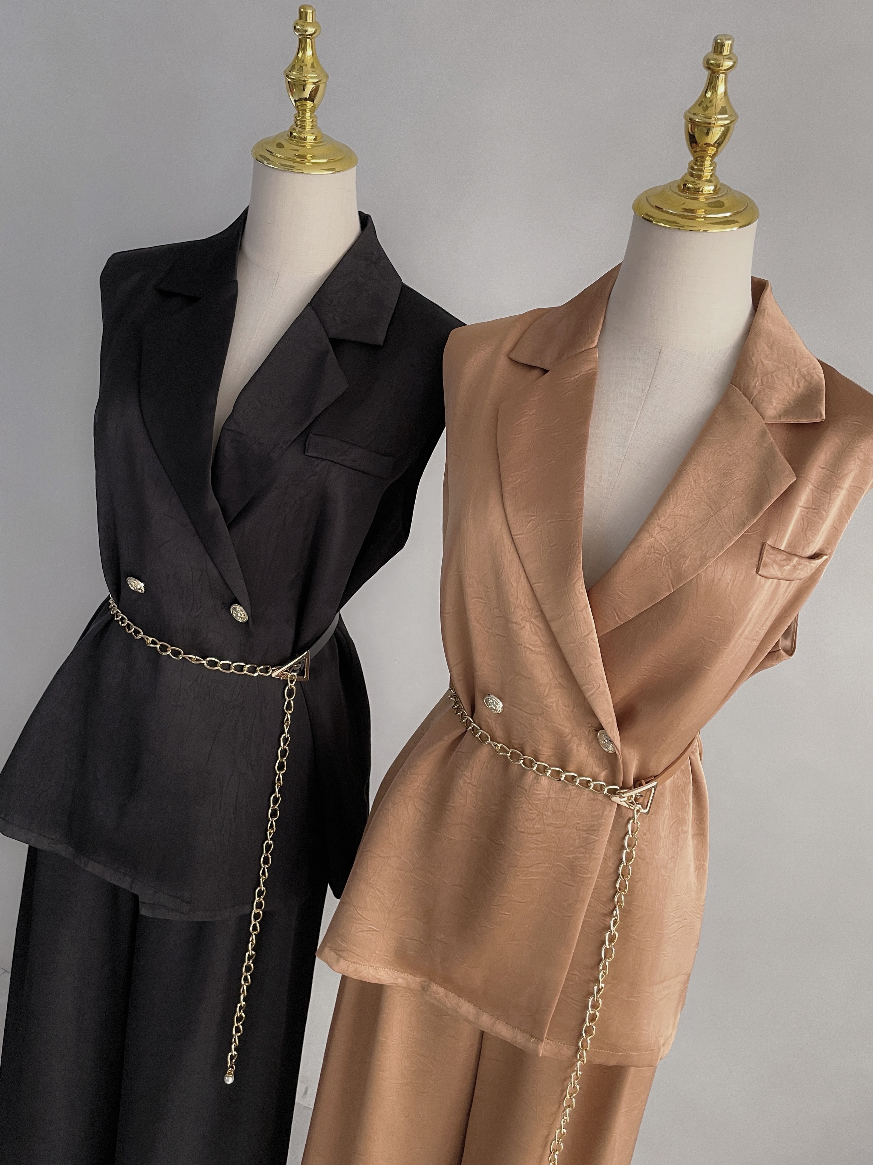 【SET】韓國高級微商金釦西裝附腰帶+長寬褲