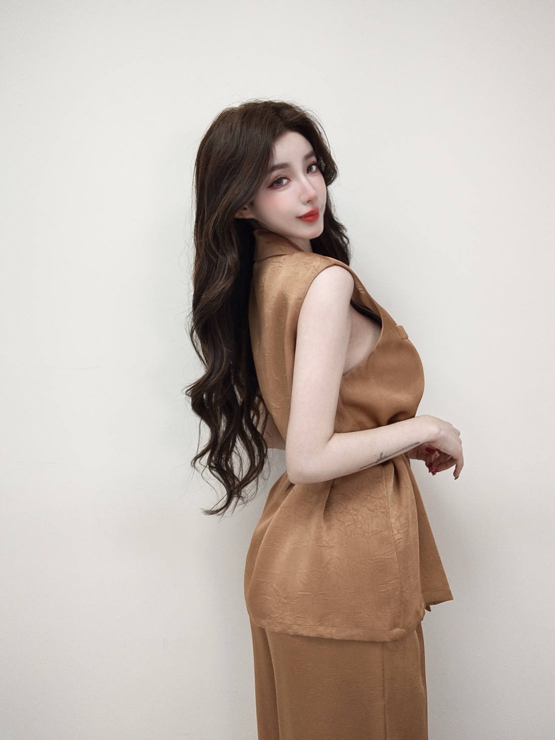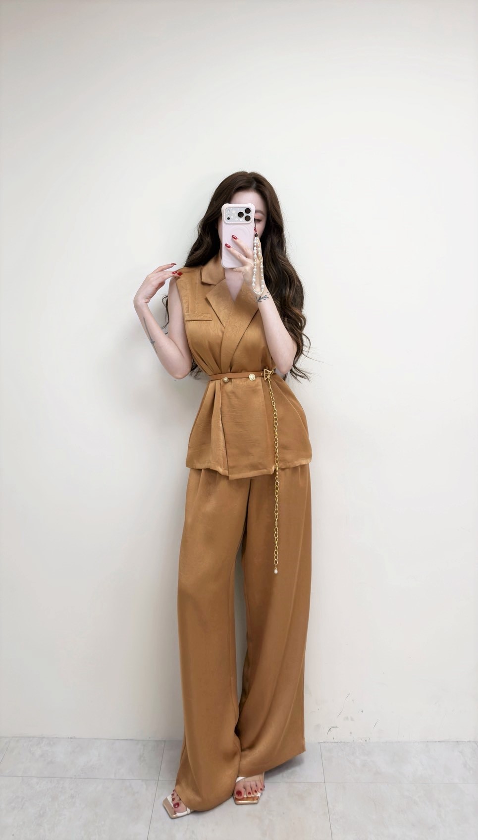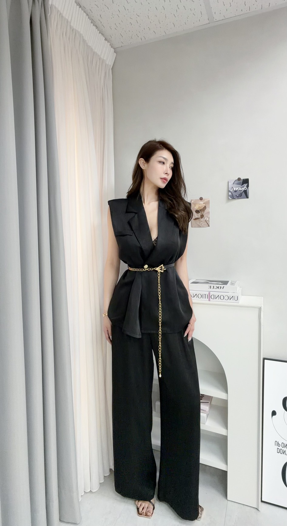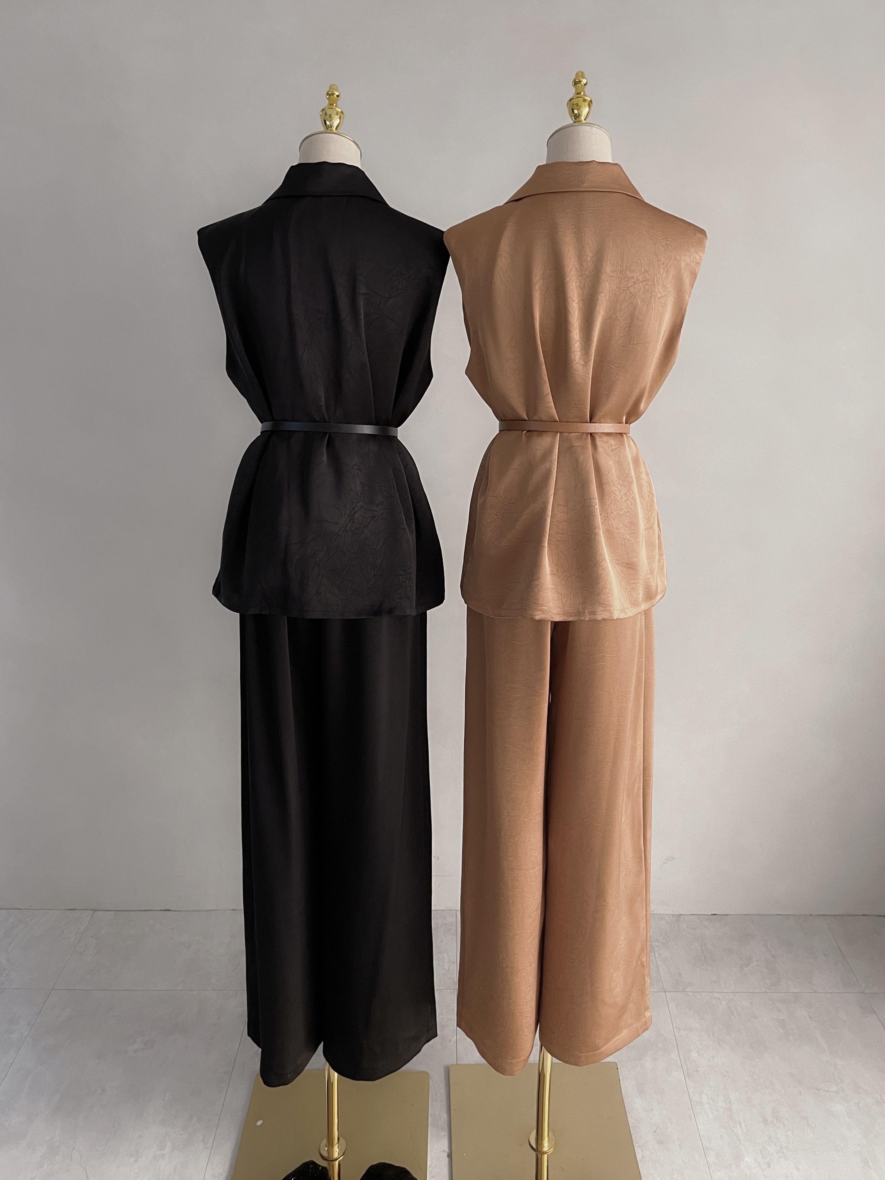 【SET】韓國高級微商金釦西裝附腰帶+長寬褲