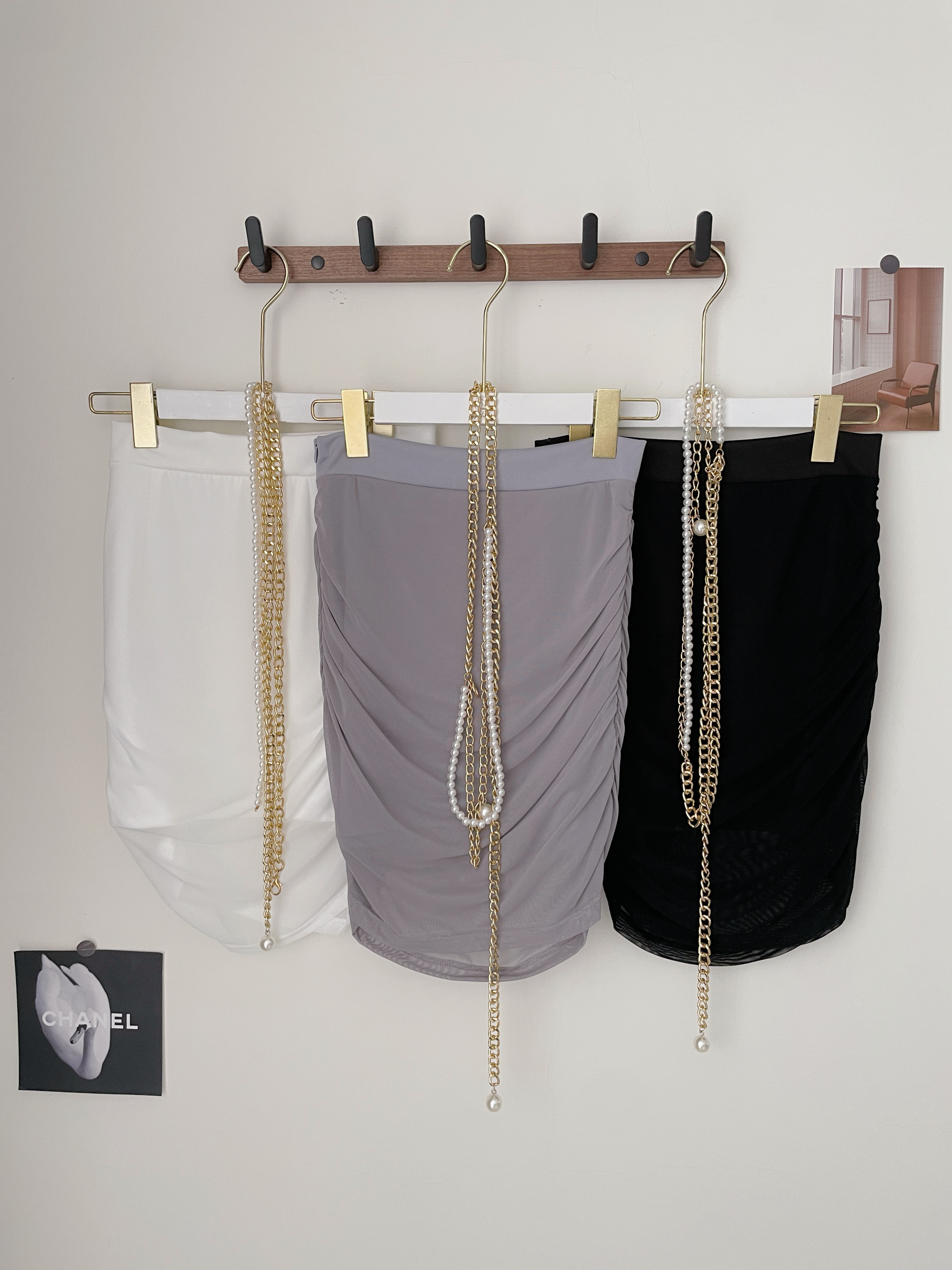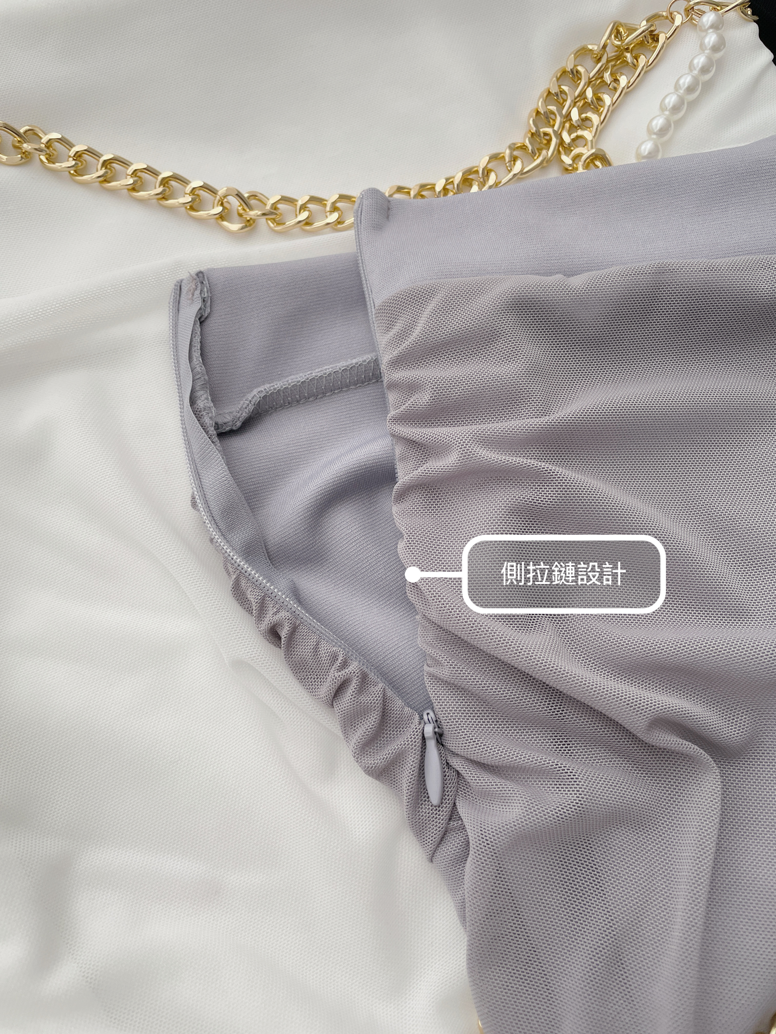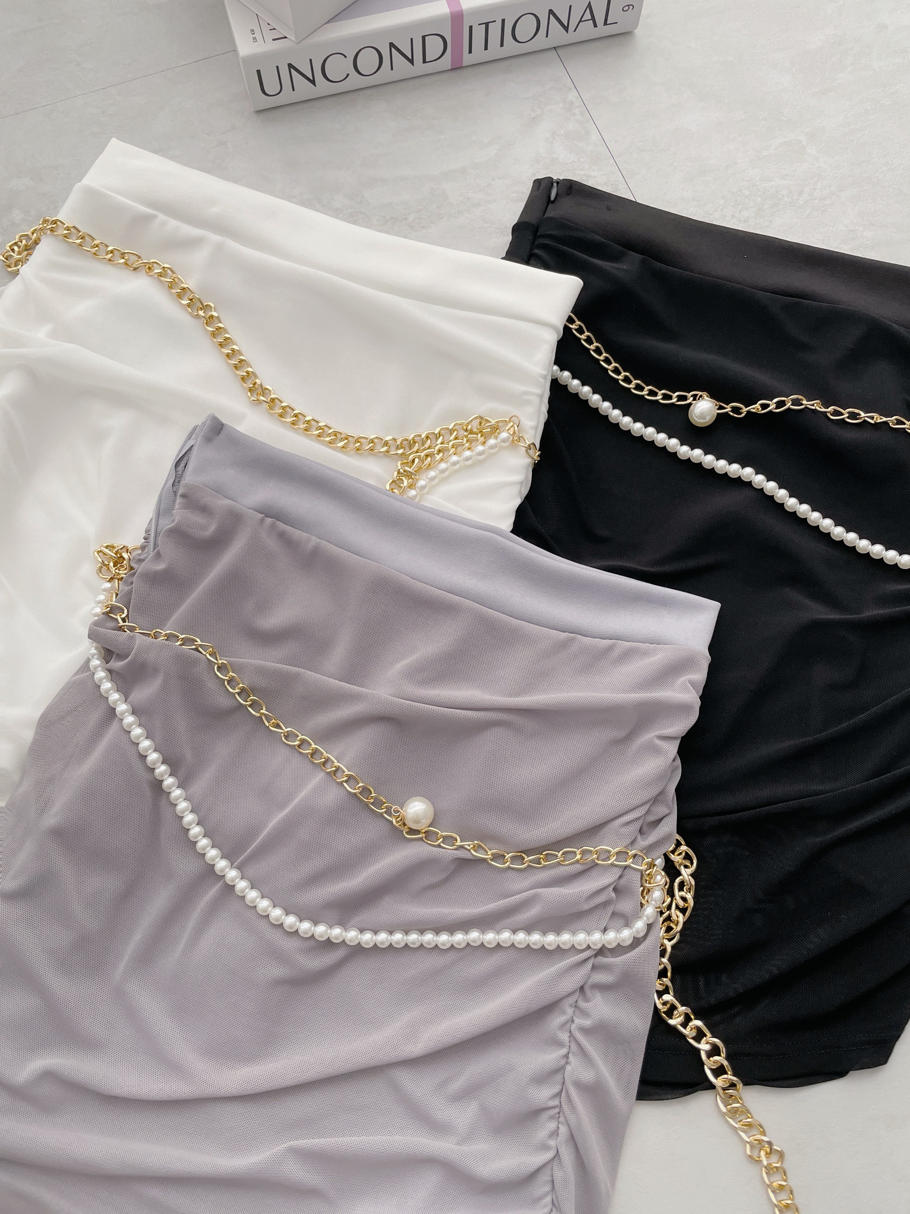 唯美戀曲 抓皺附腰鏈網紗短裙