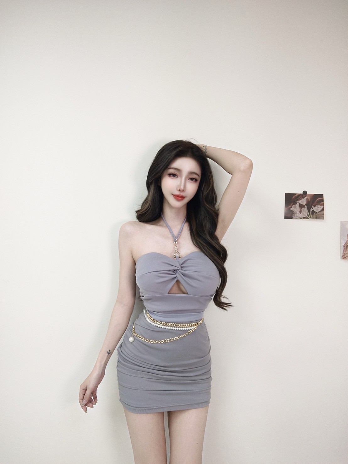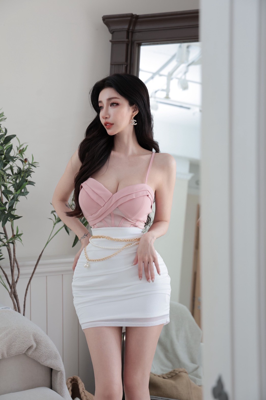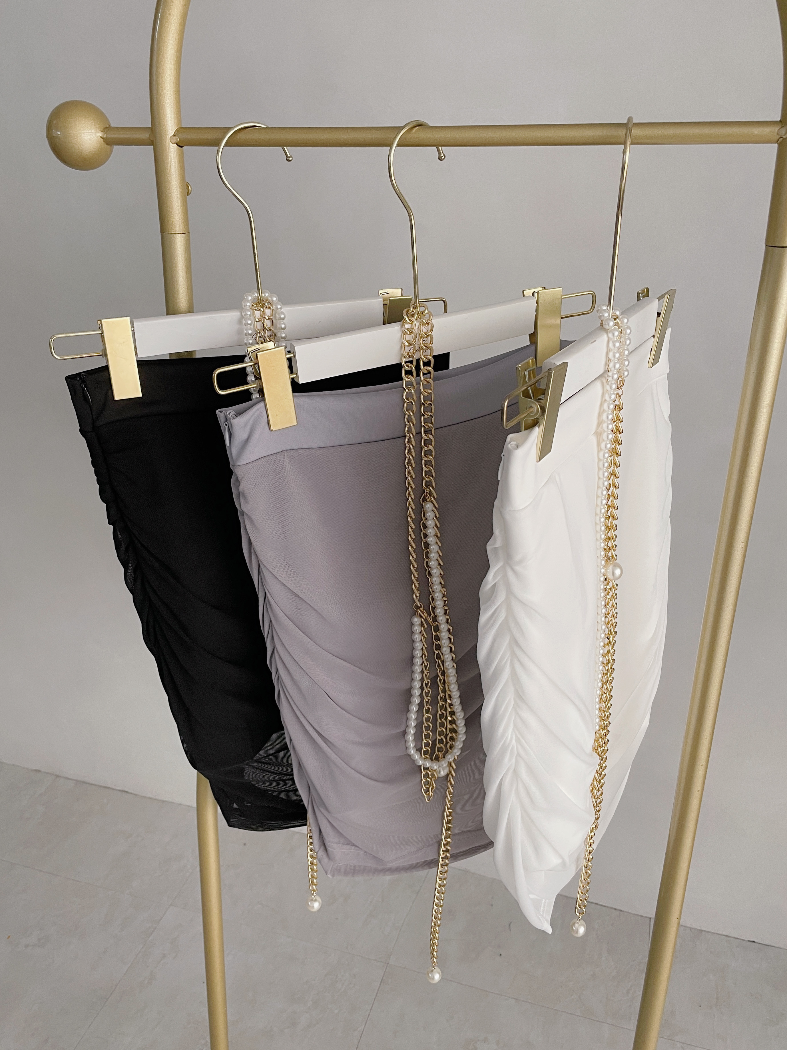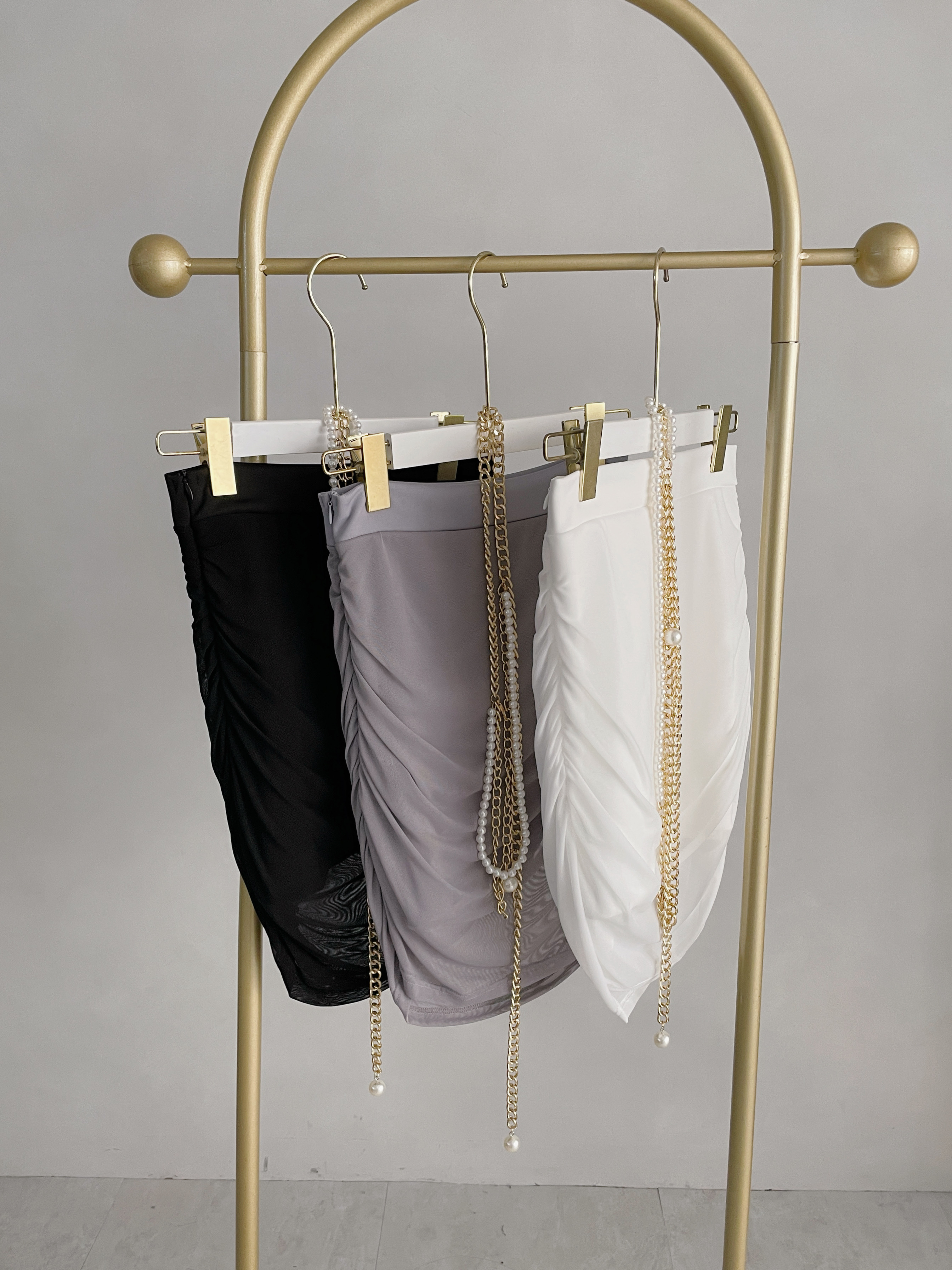 唯美戀曲 抓皺附腰鏈網紗短裙
