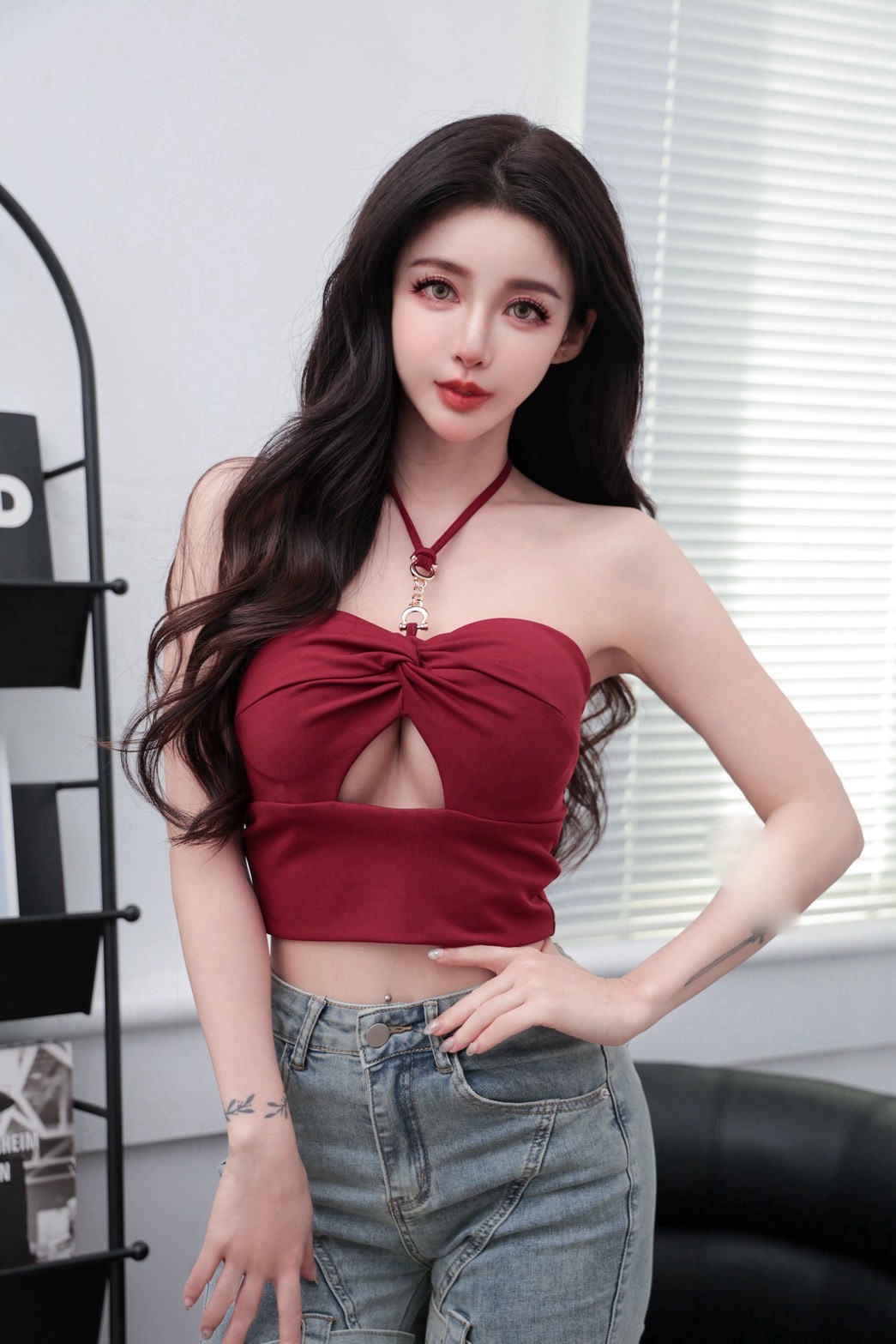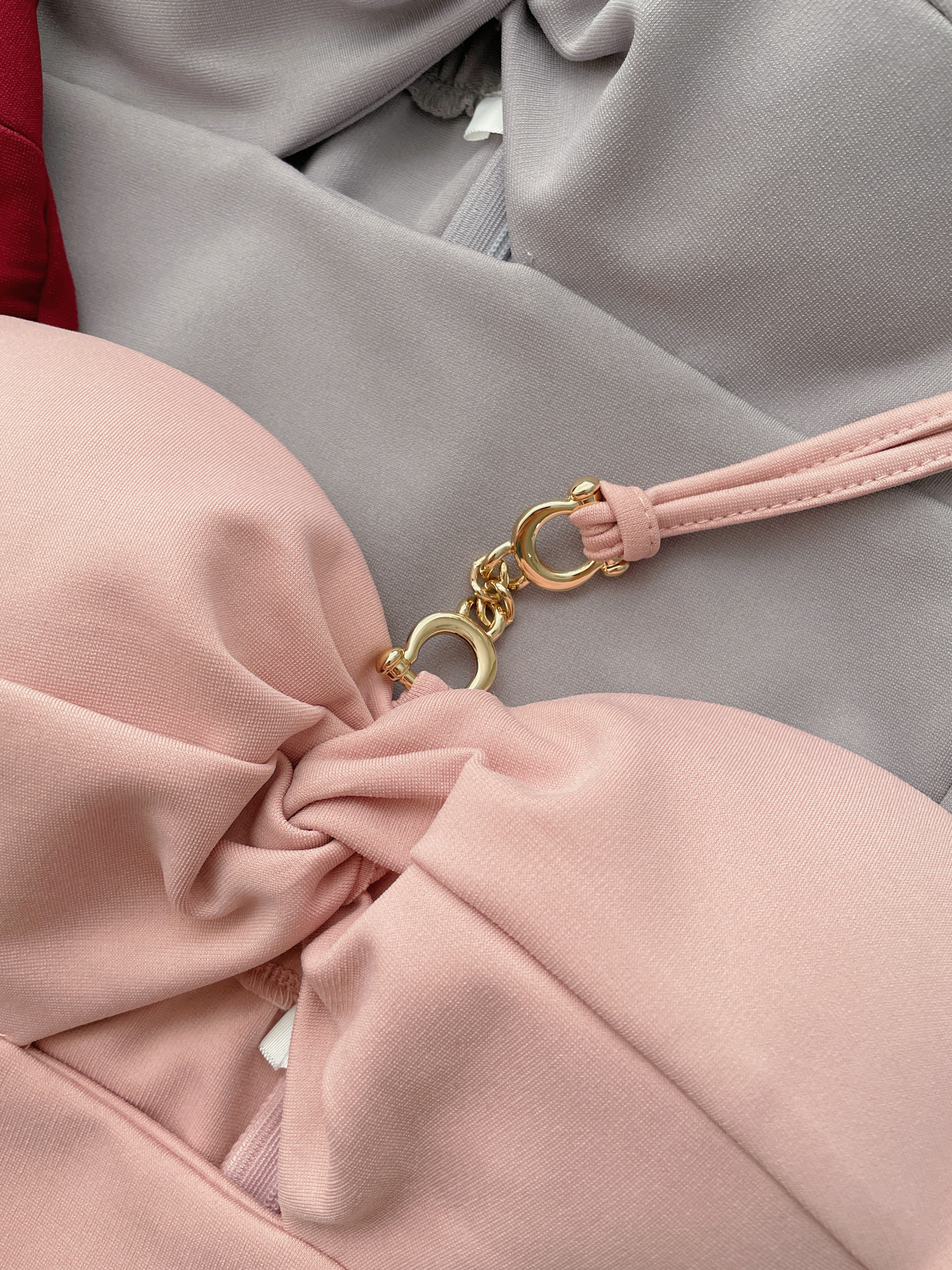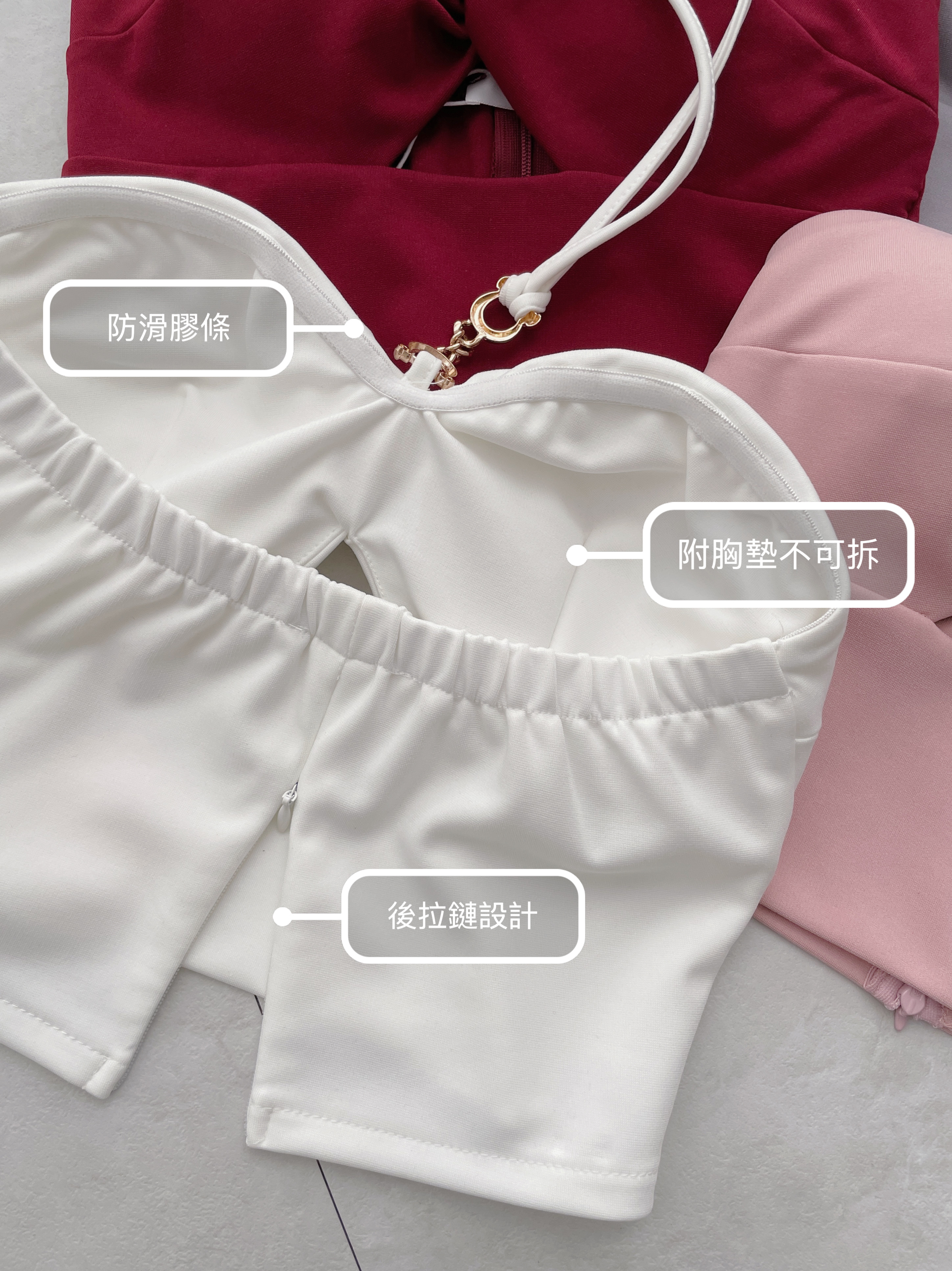 M可穿金屬環固定不可拆,胸前紐結造型搭配三角鏤空設計,微微展露胸下圍,增添性感小心機。