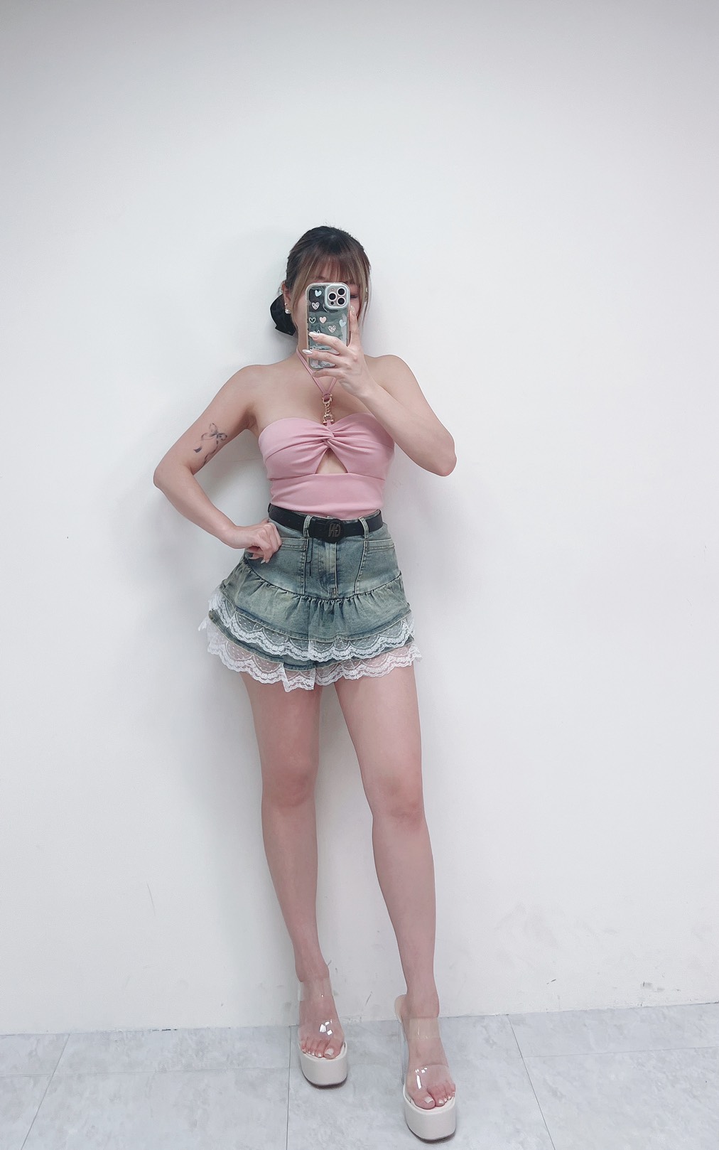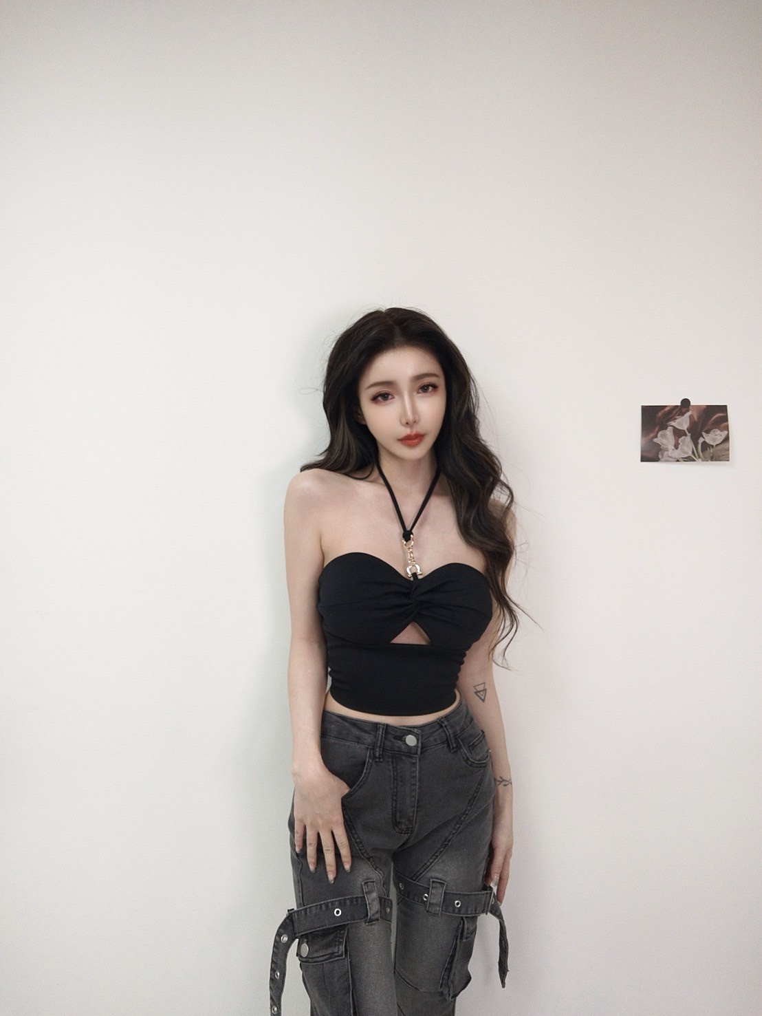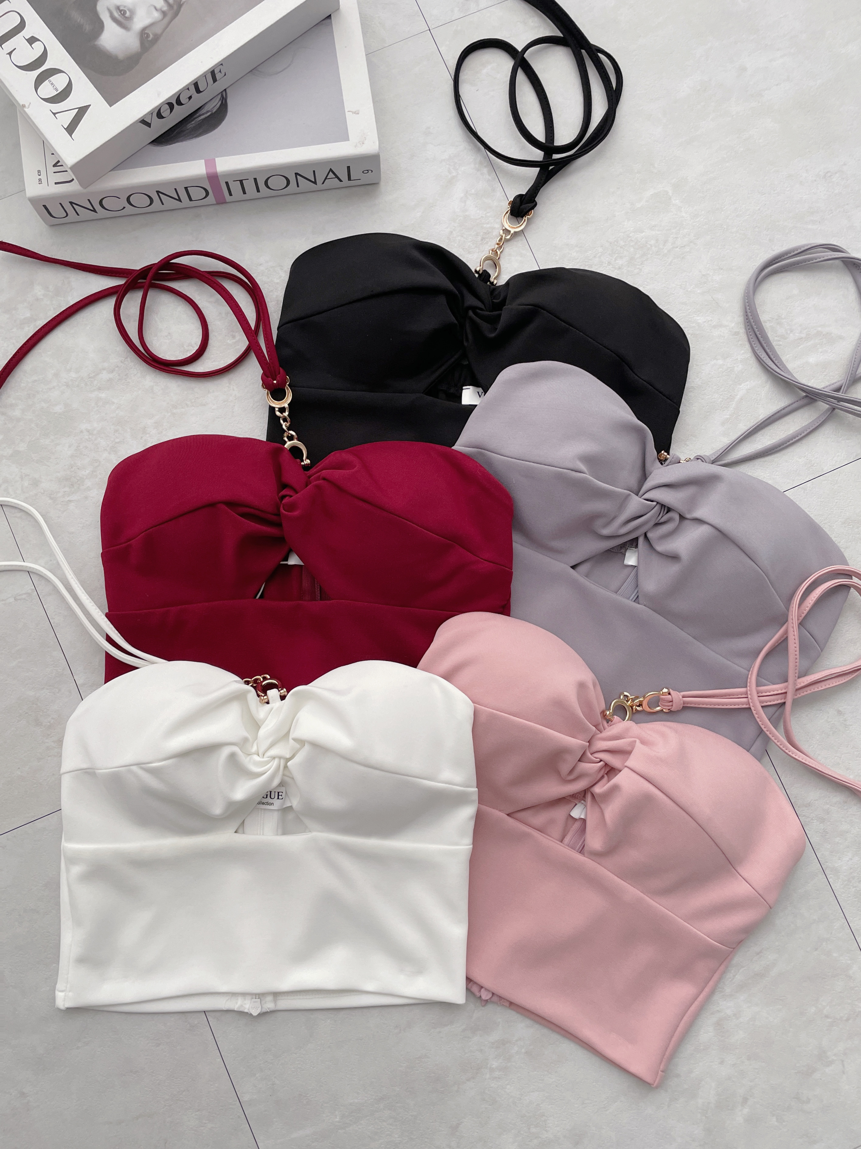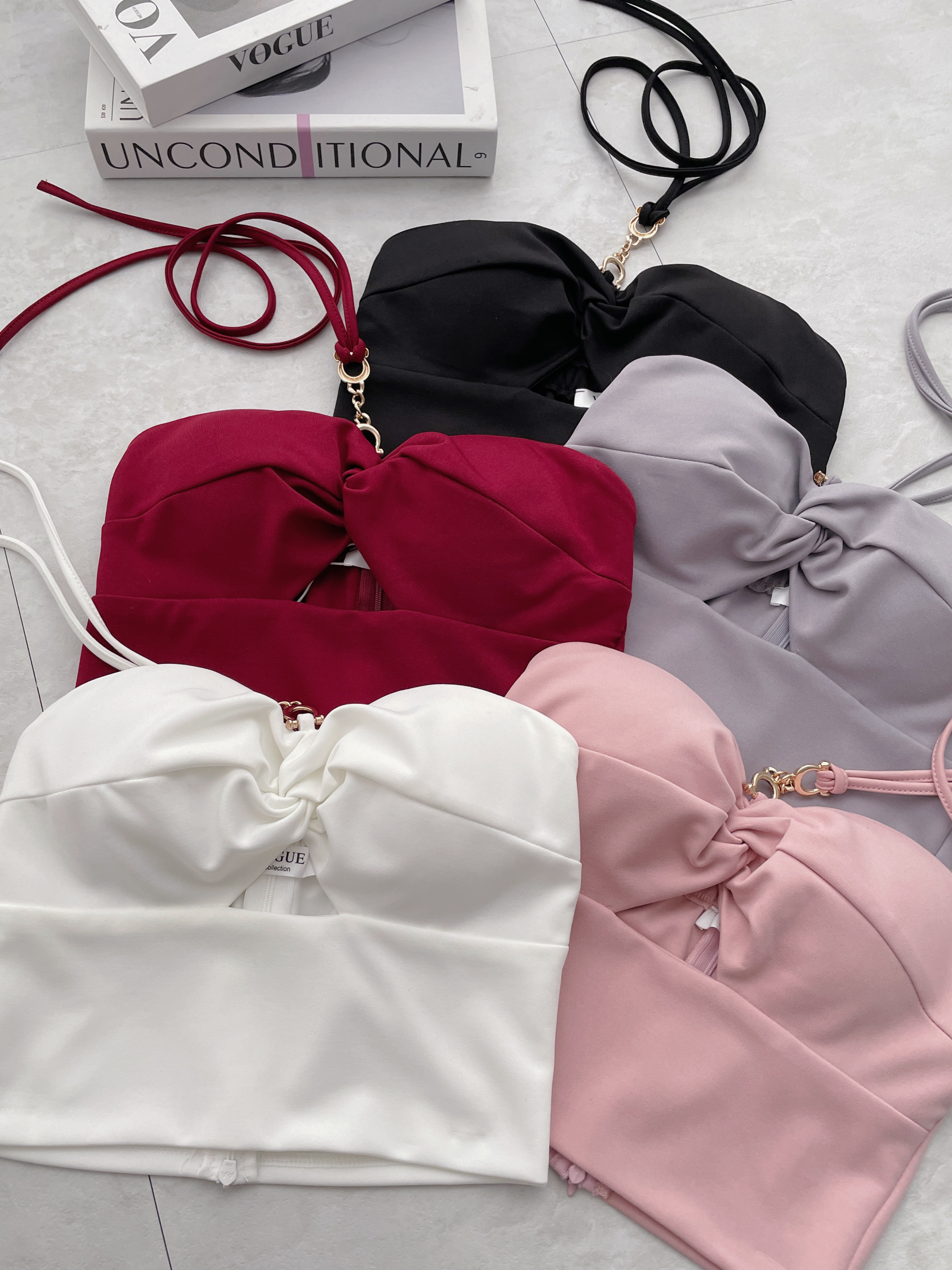 M可穿金屬環固定不可拆,胸前紐結造型搭配三角鏤空設計,微微展露胸下圍,增添性感小心機。
