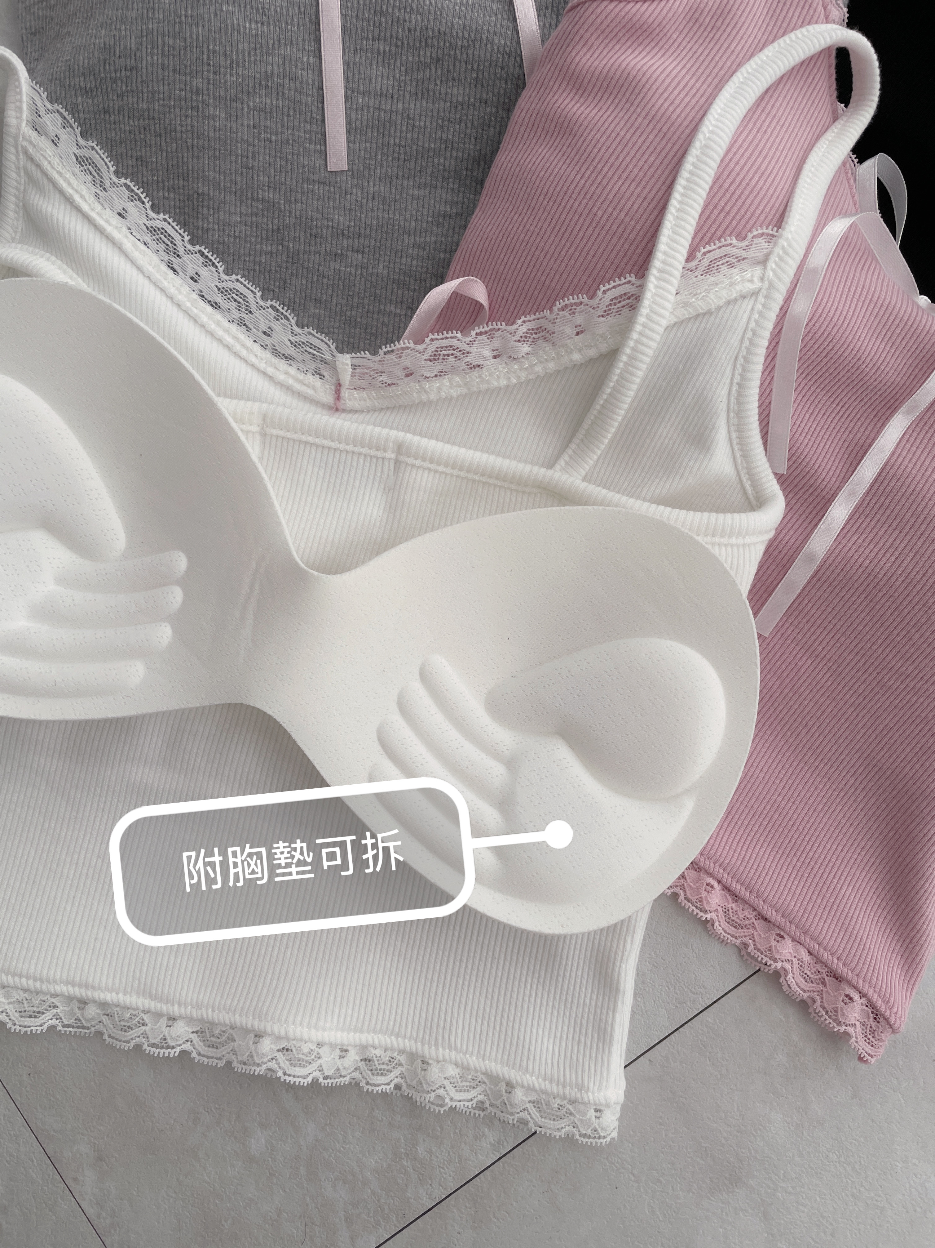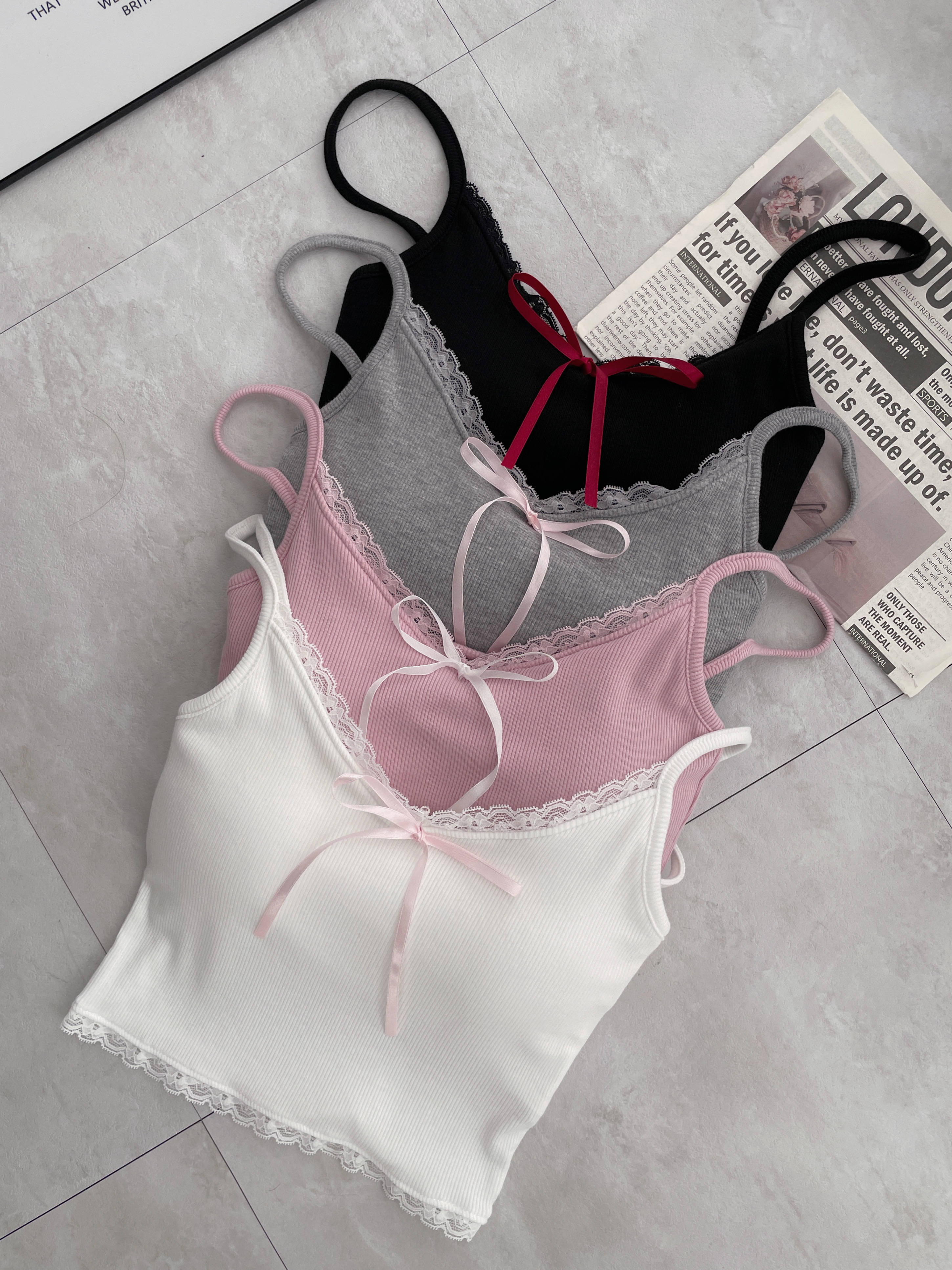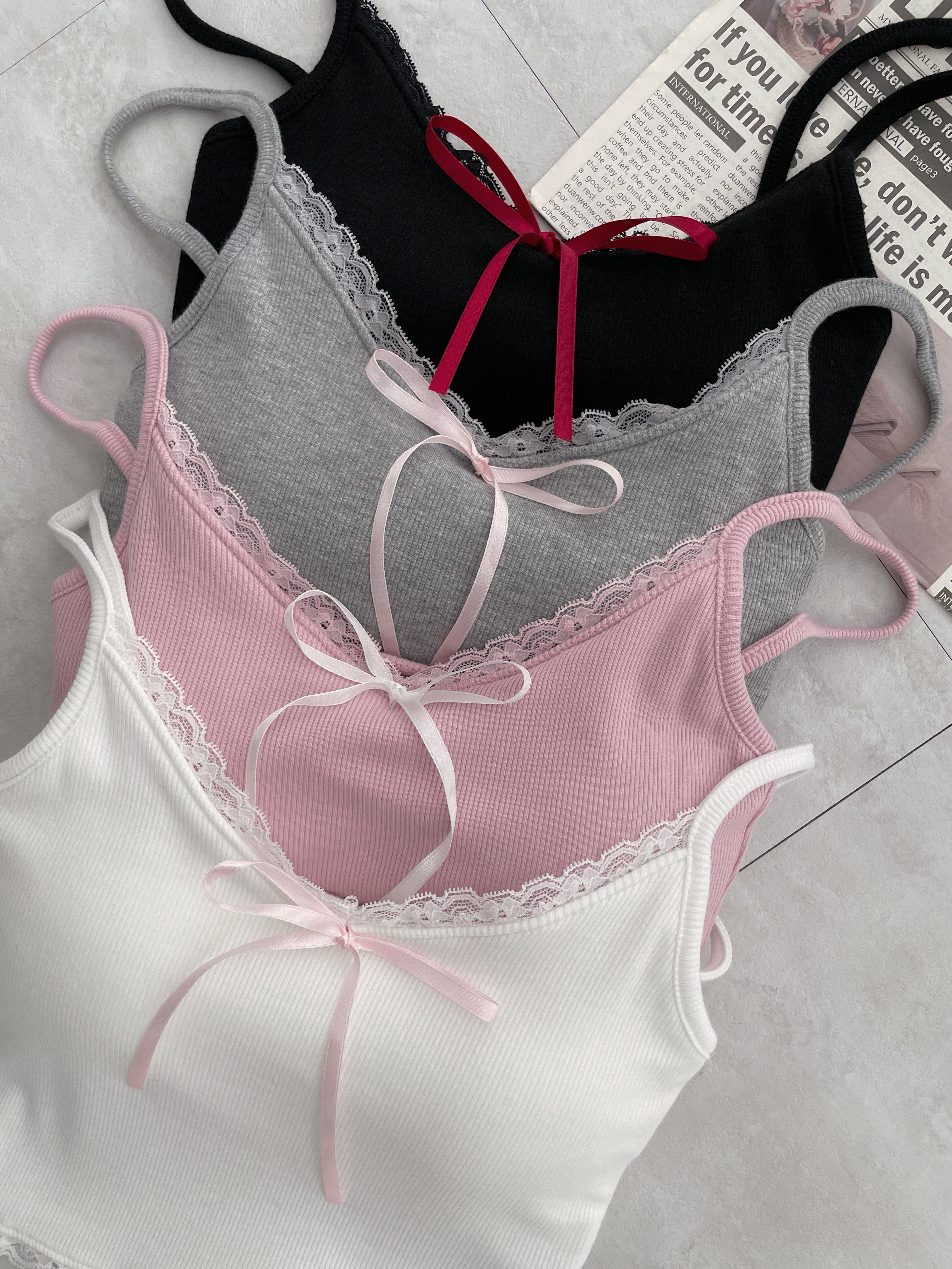 純慾甜甜 細肩接蕾絲綁帶罩杯背心