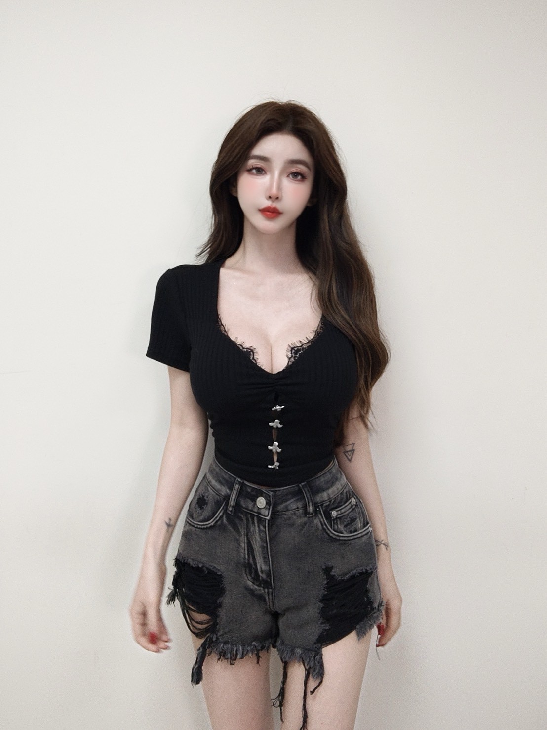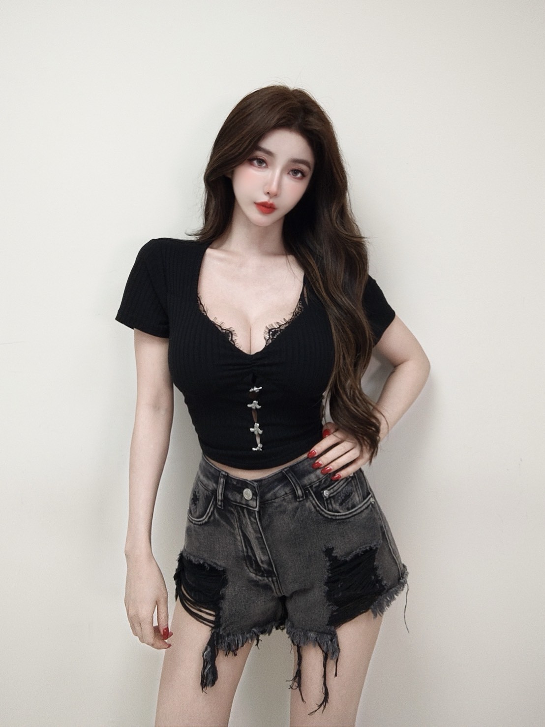 訂製款 柔光日常 銀釦簍空短袖上衣