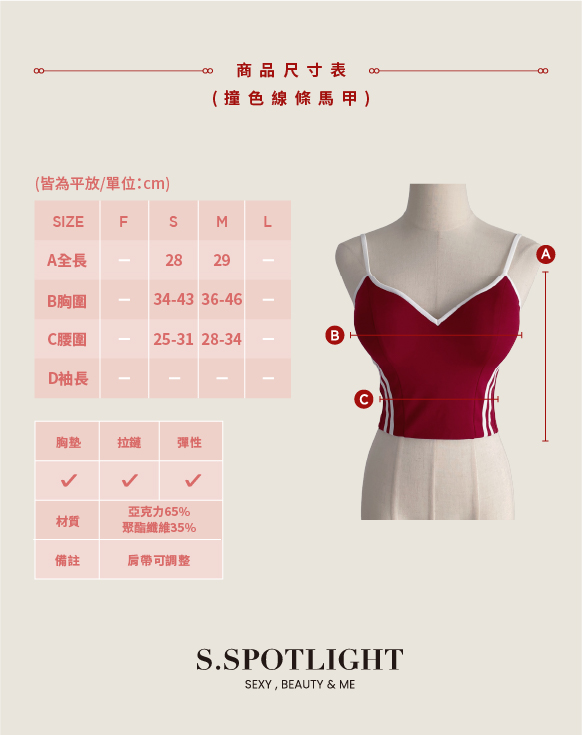訂製款 運動甜心 細肩蜜桃胸撞色線條馬甲