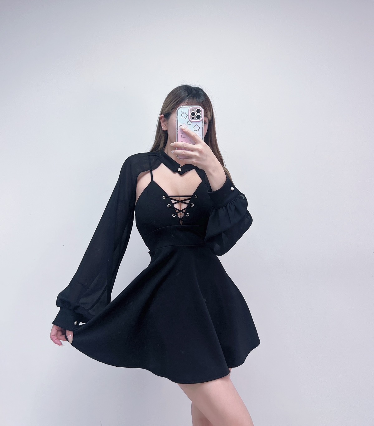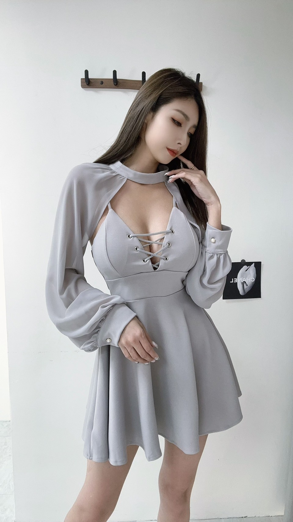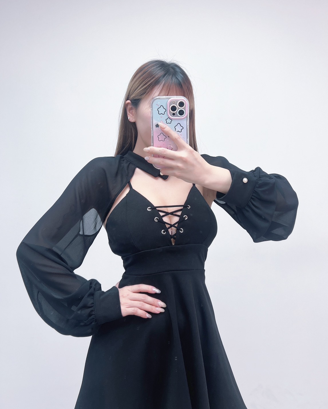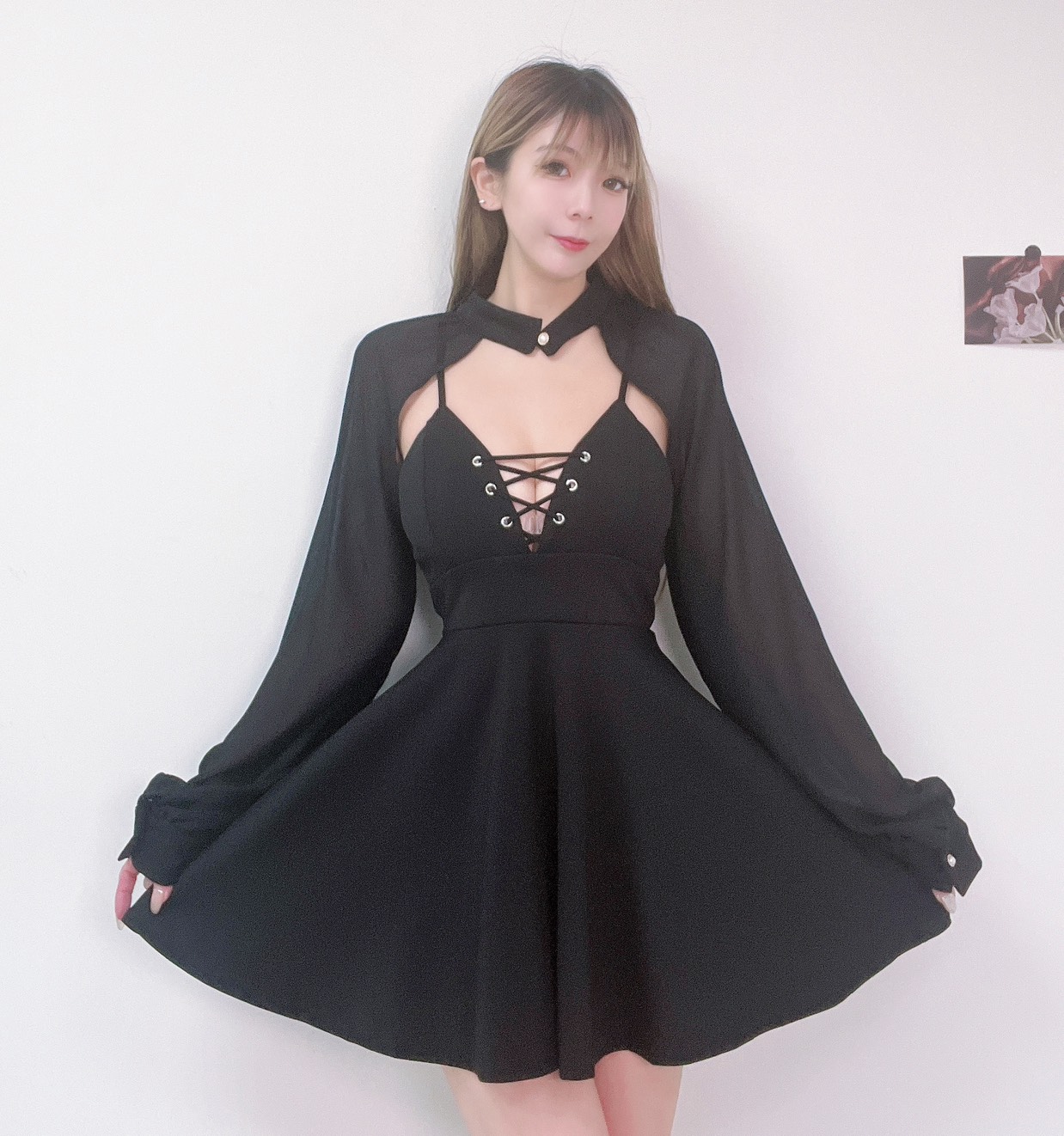【SET】柔美性感交叉美胸傘洋+雪紡罩衫