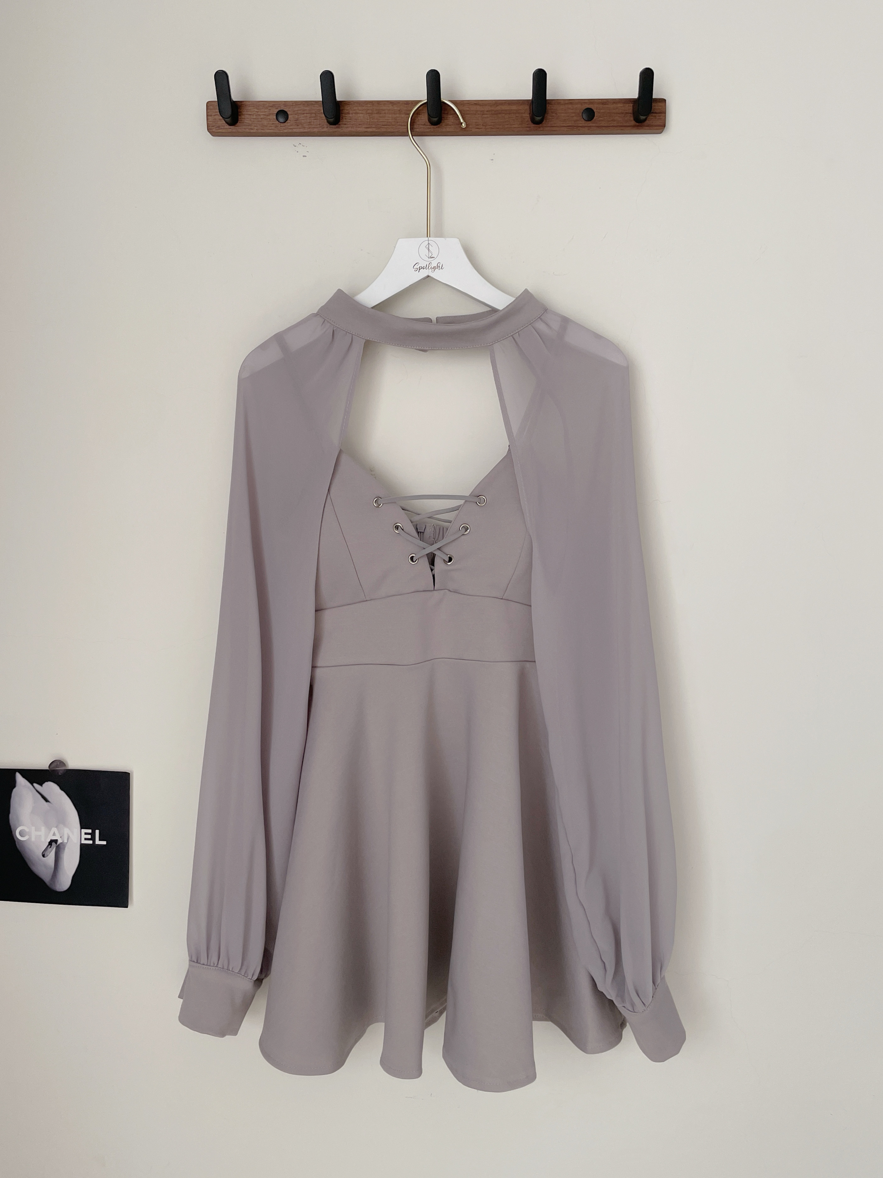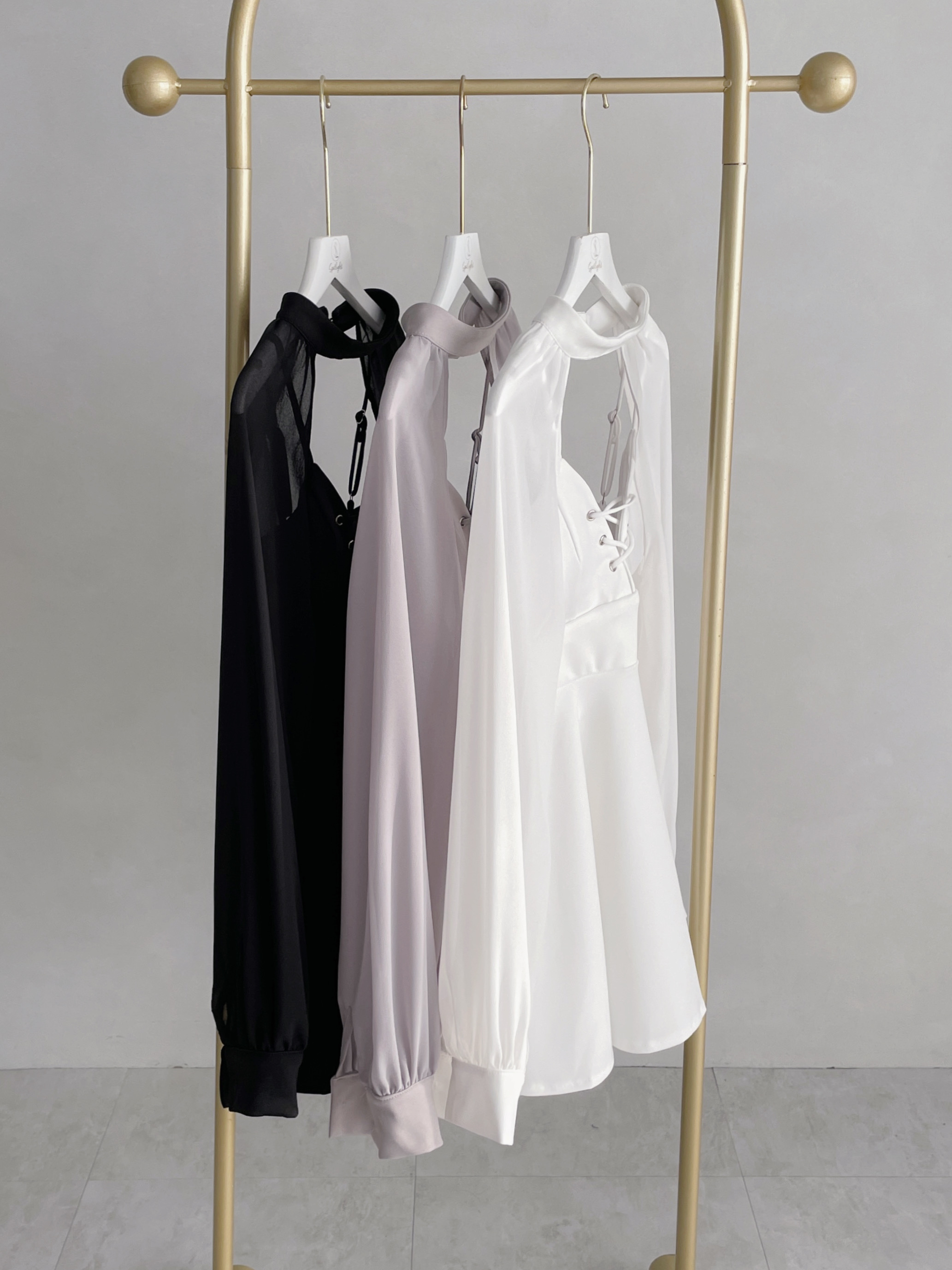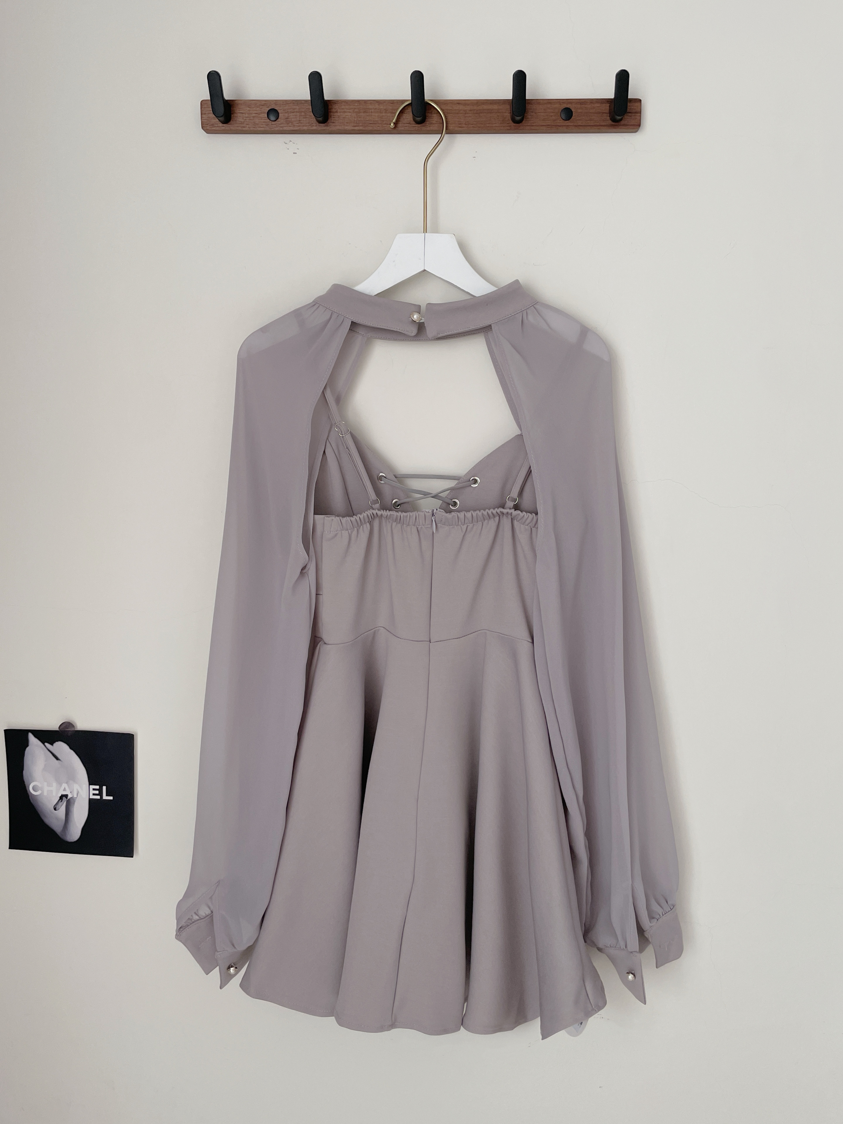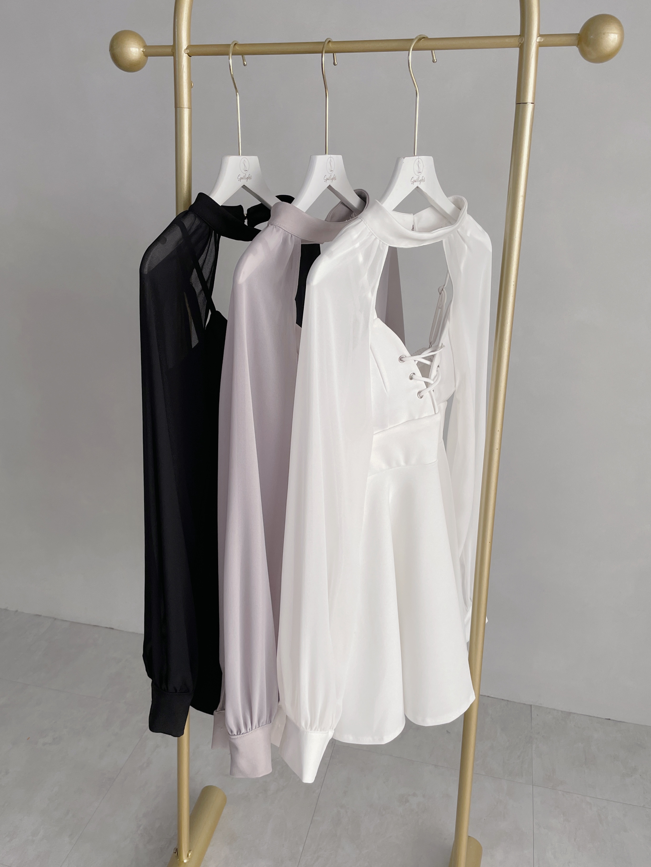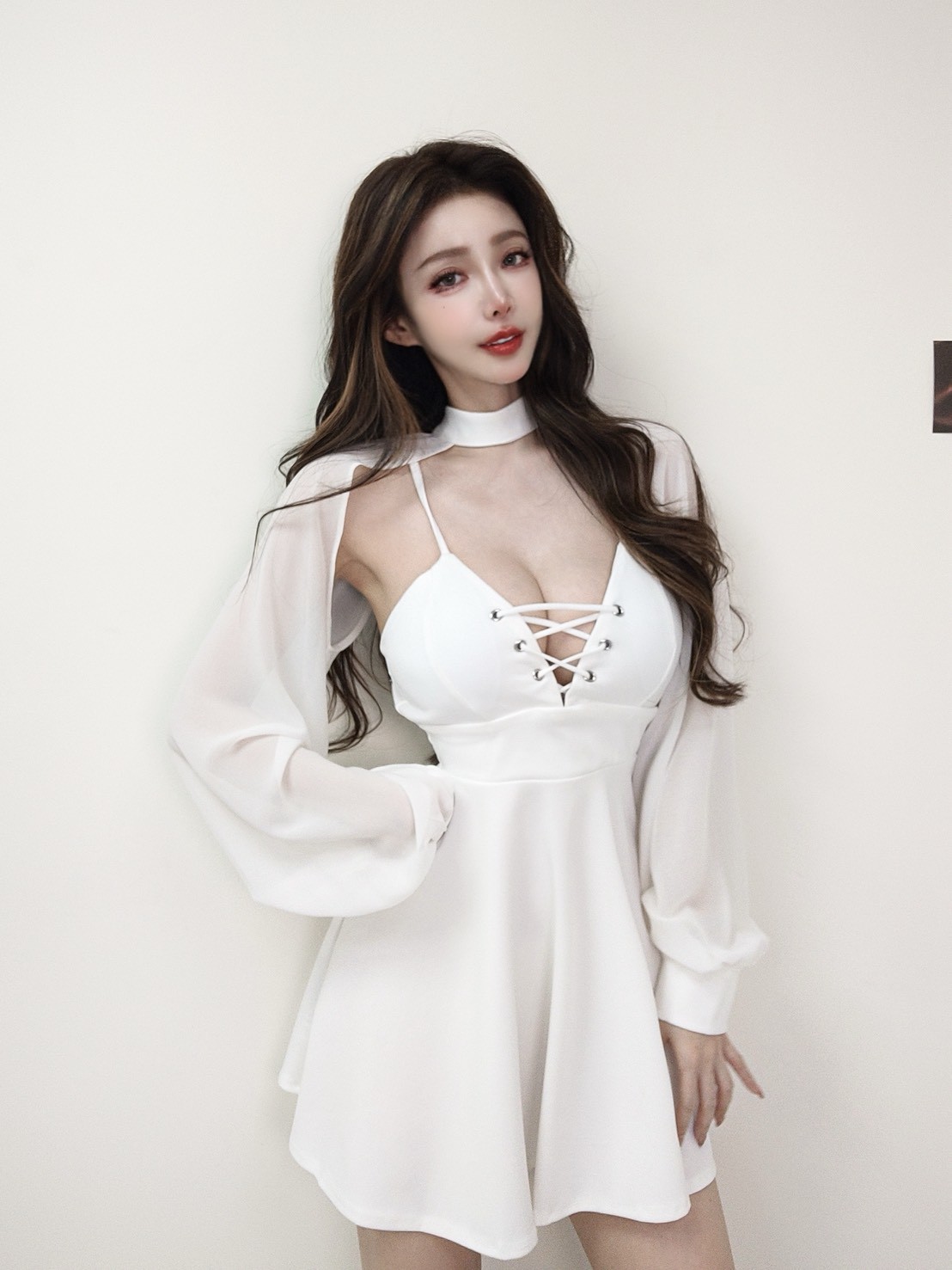 【SET】柔美性感交叉美胸傘洋+雪紡罩衫