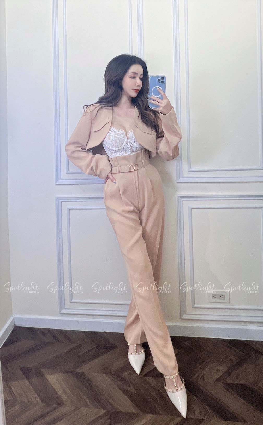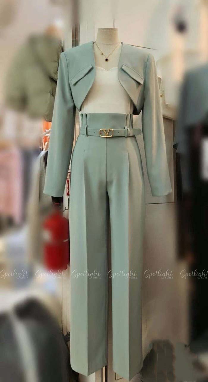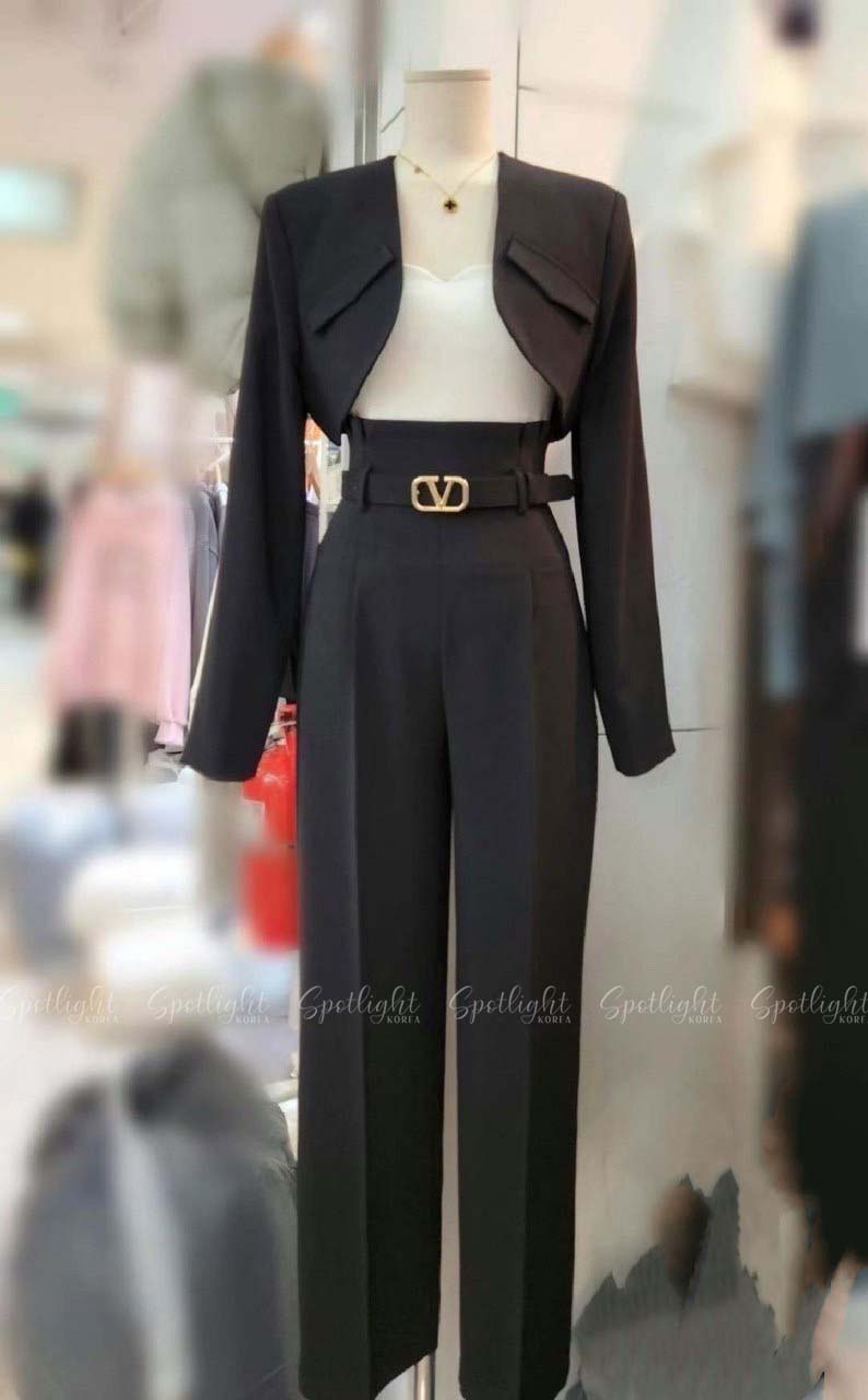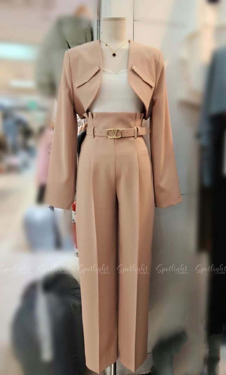 【SET】韓國V字女神短版西裝外套+直筒褲