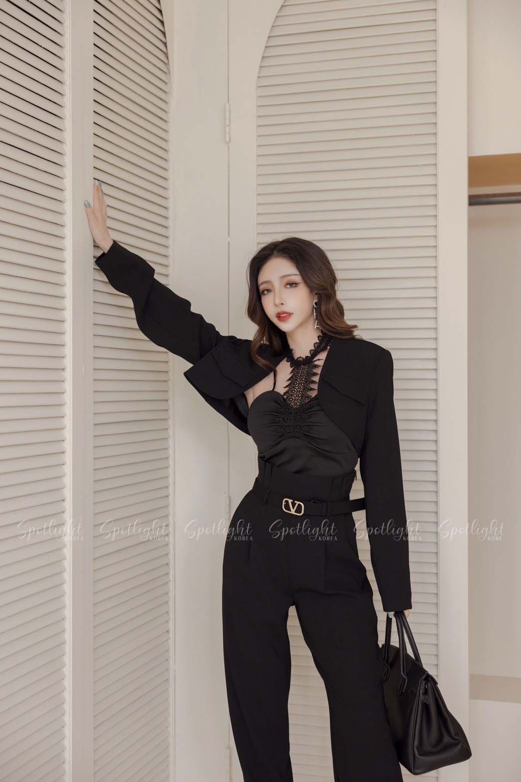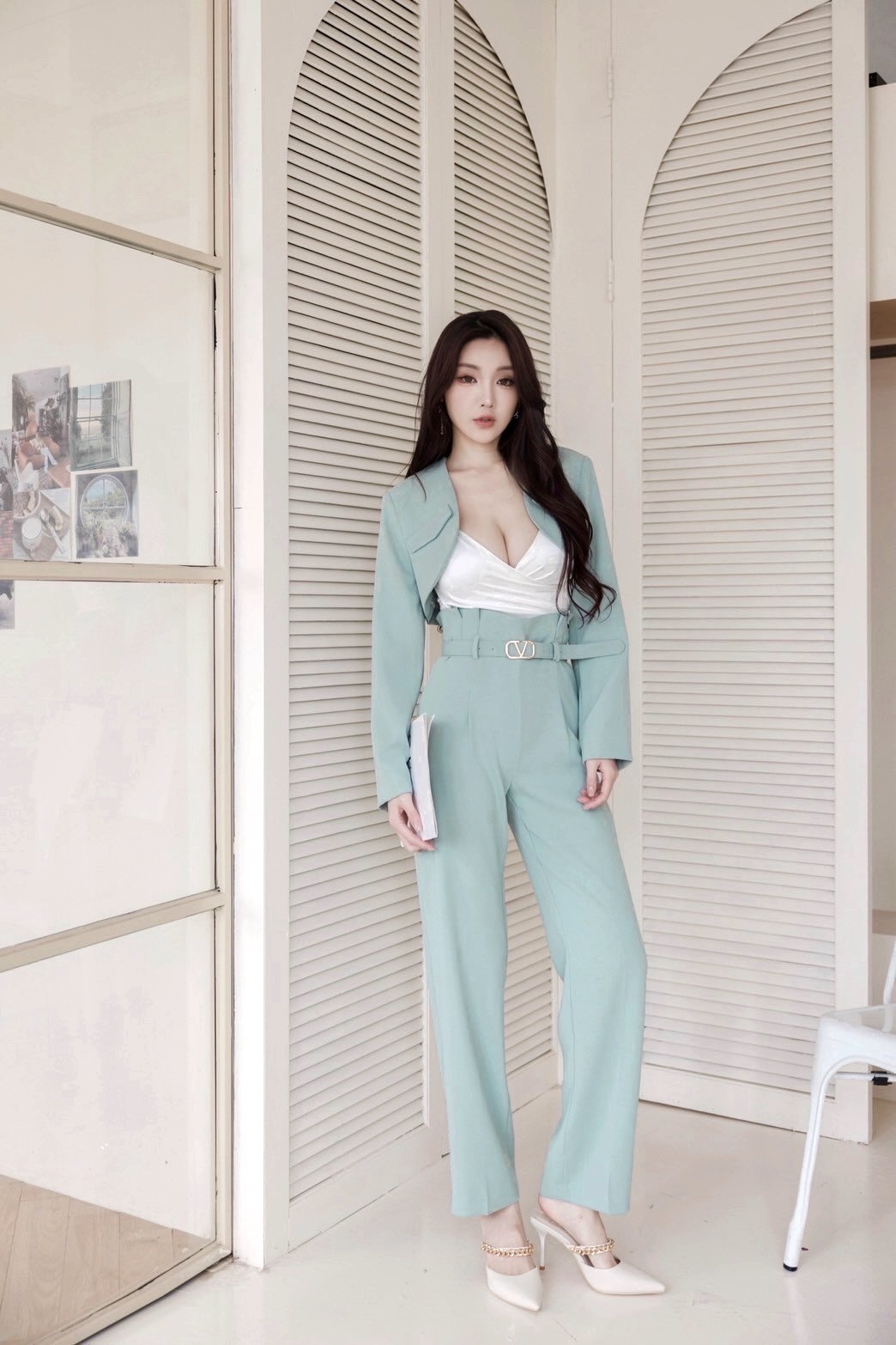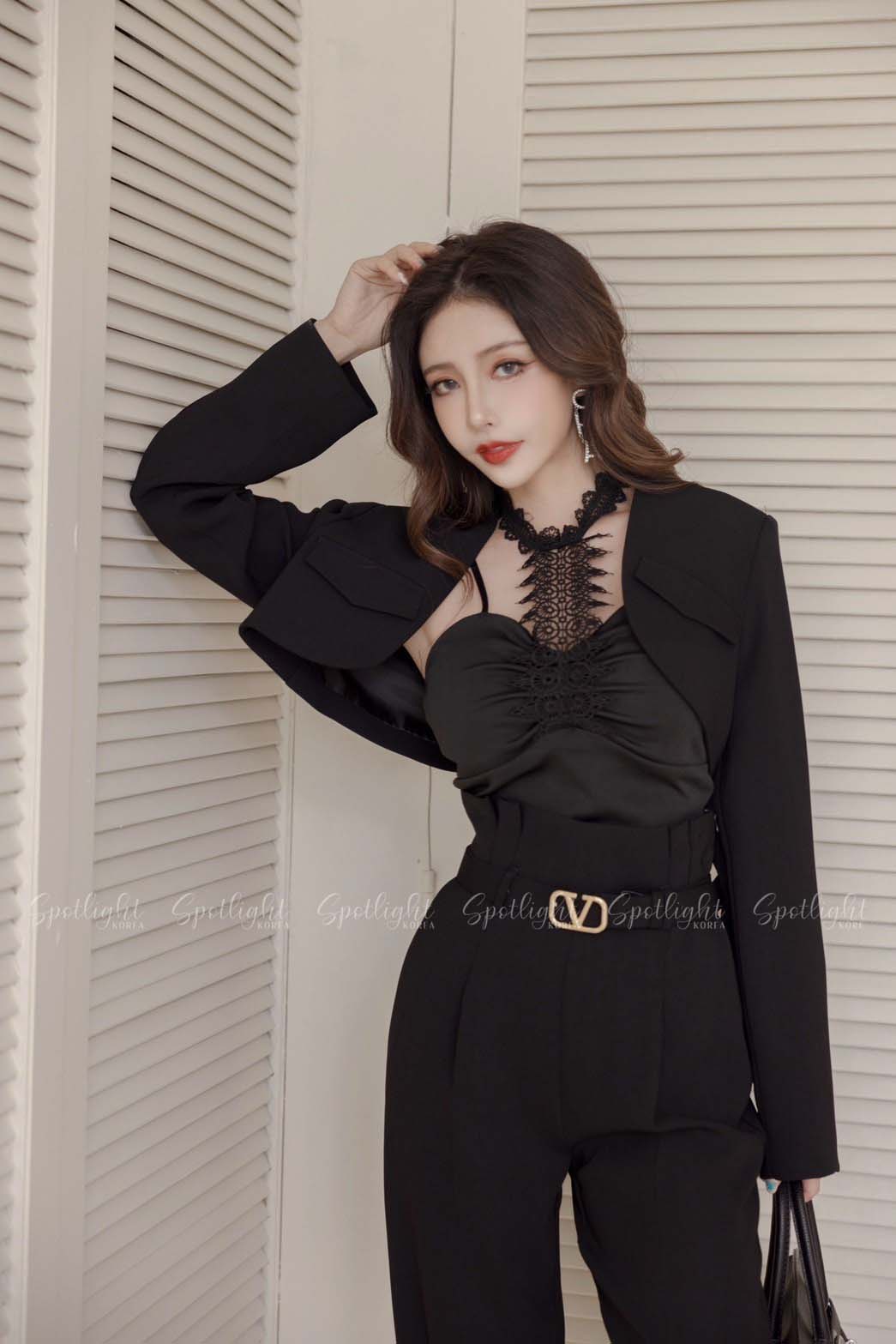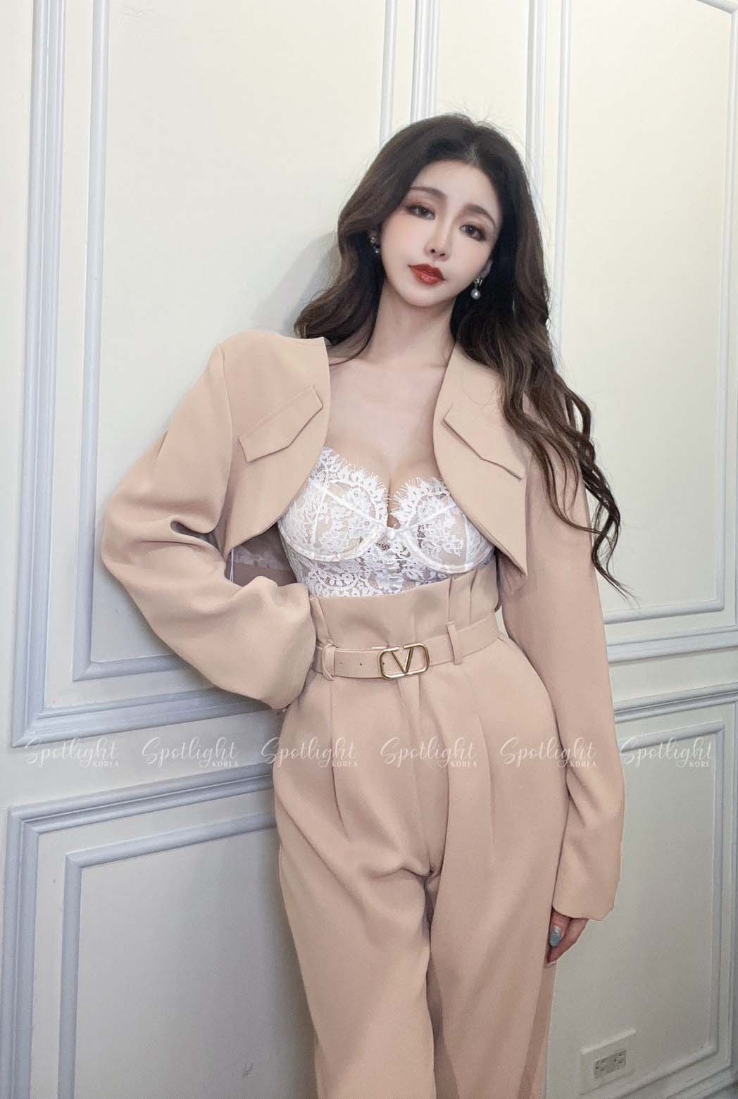 【SET】韓國V字女神短版西裝外套+直筒褲