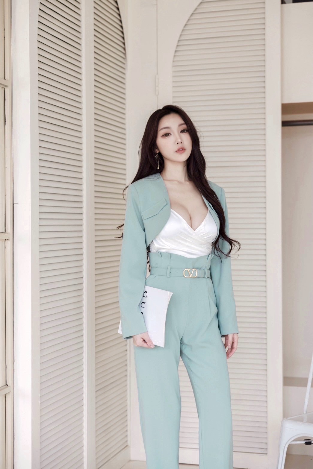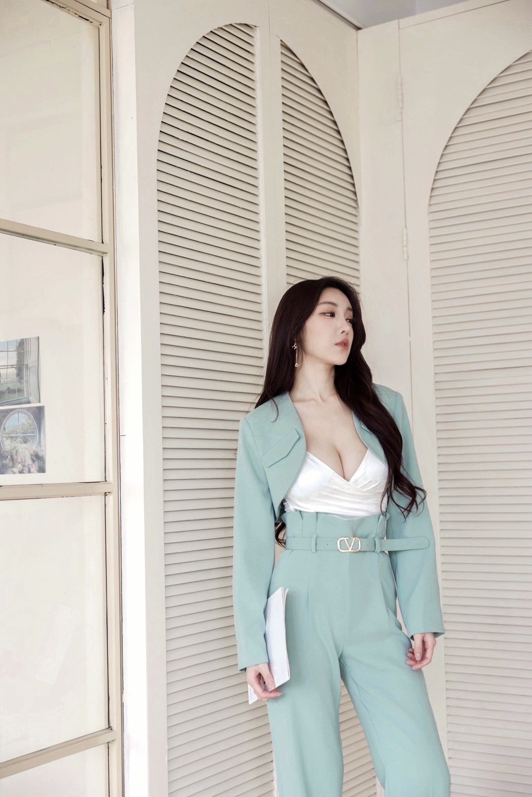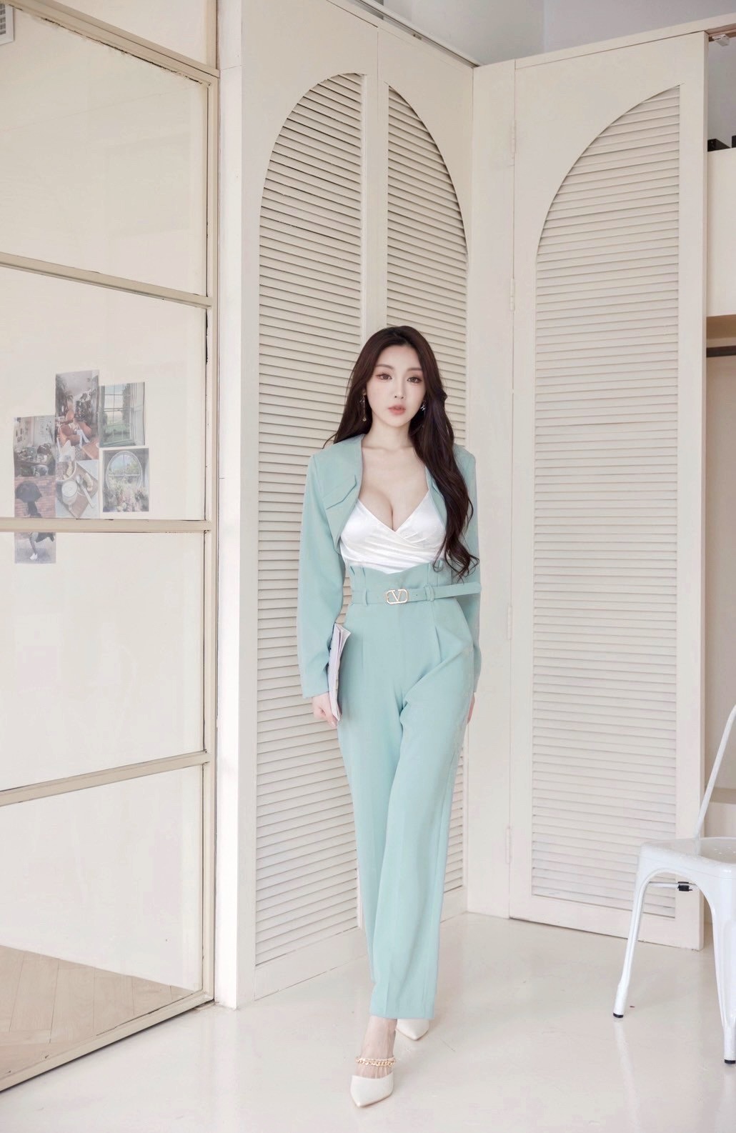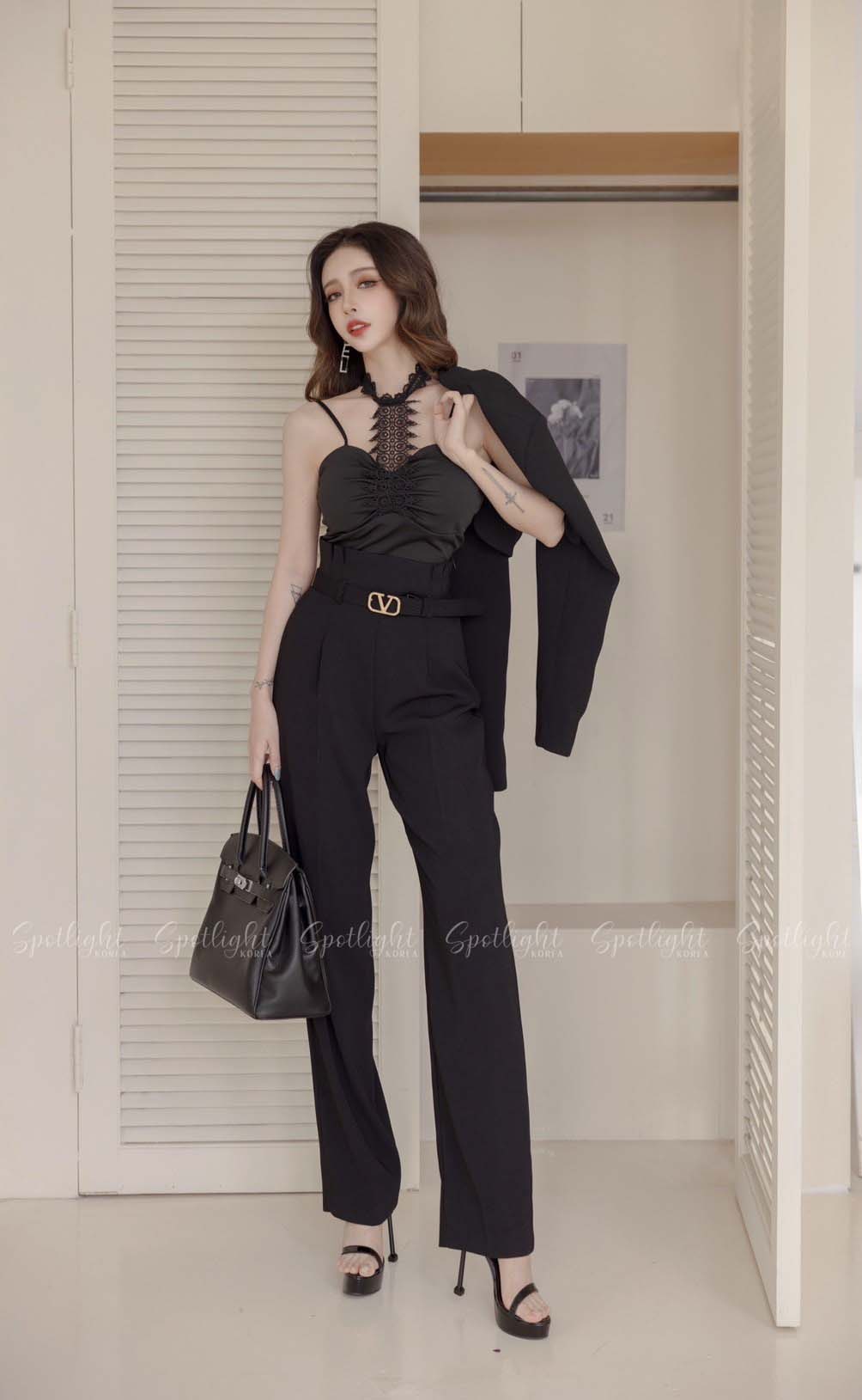 【SET】韓國V字女神短版西裝外套+直筒褲