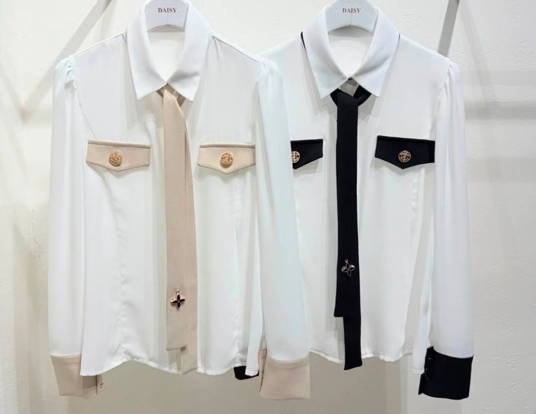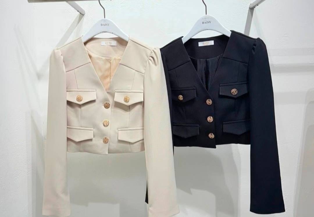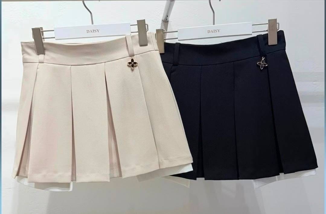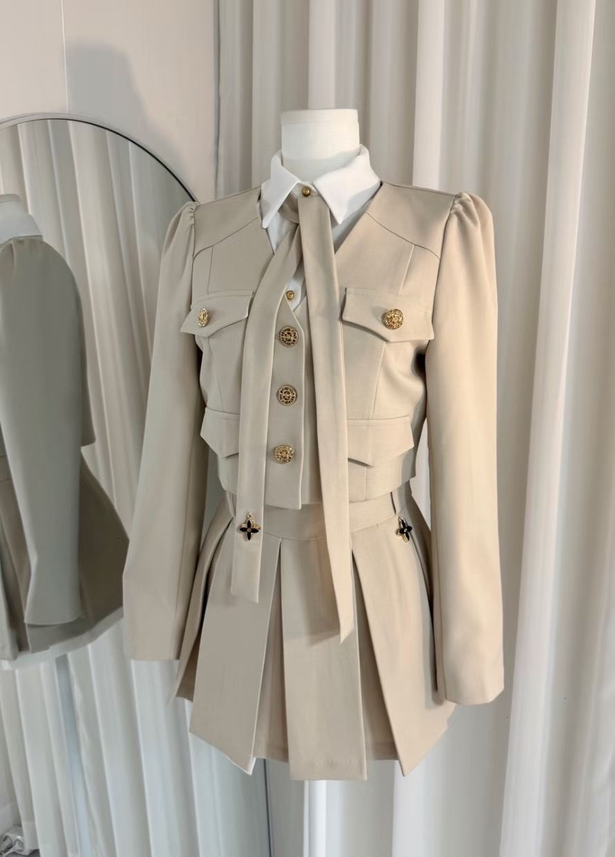 韓國學院風 撞色十字金屬襯衫+外套+百褶裙