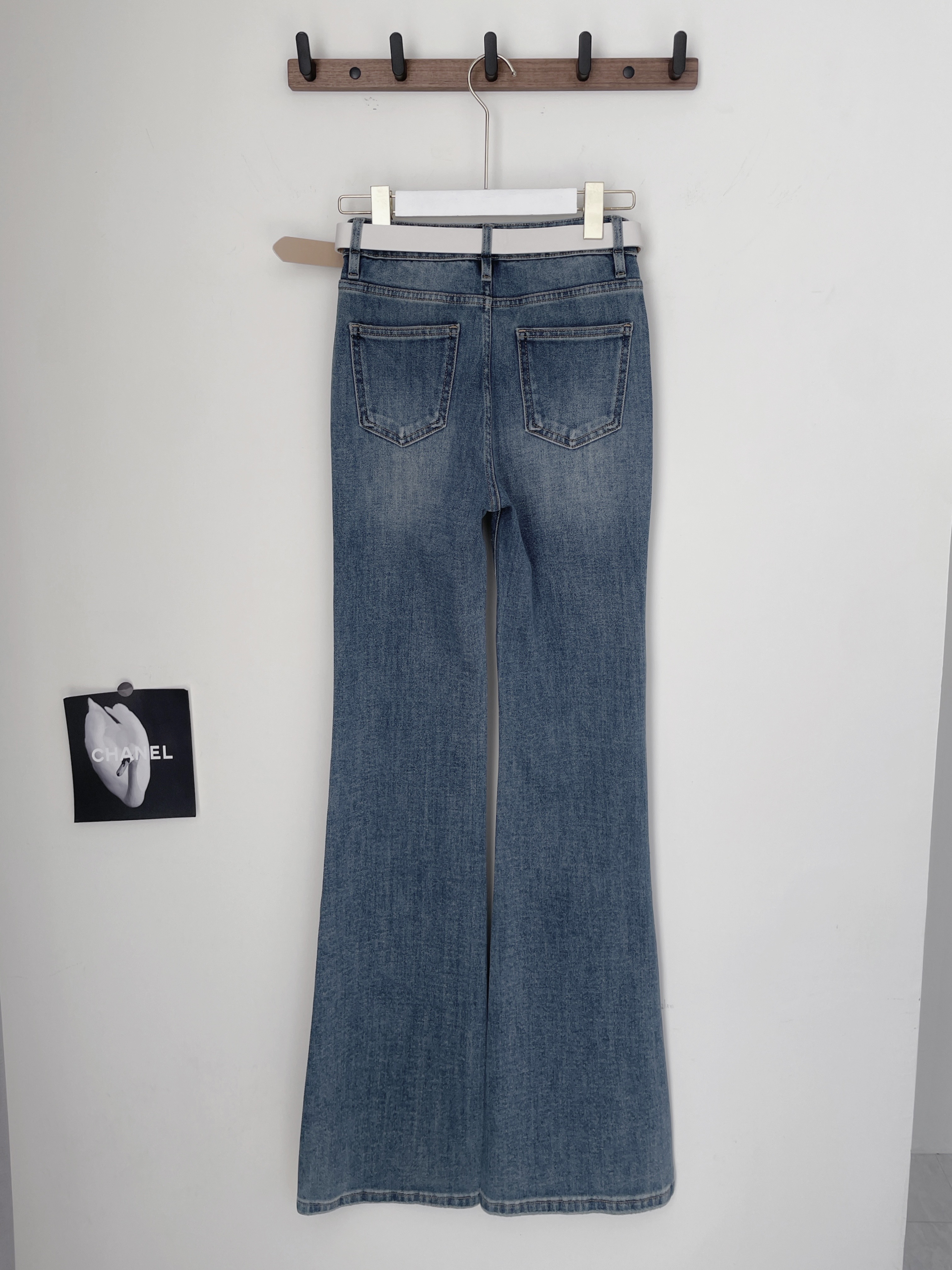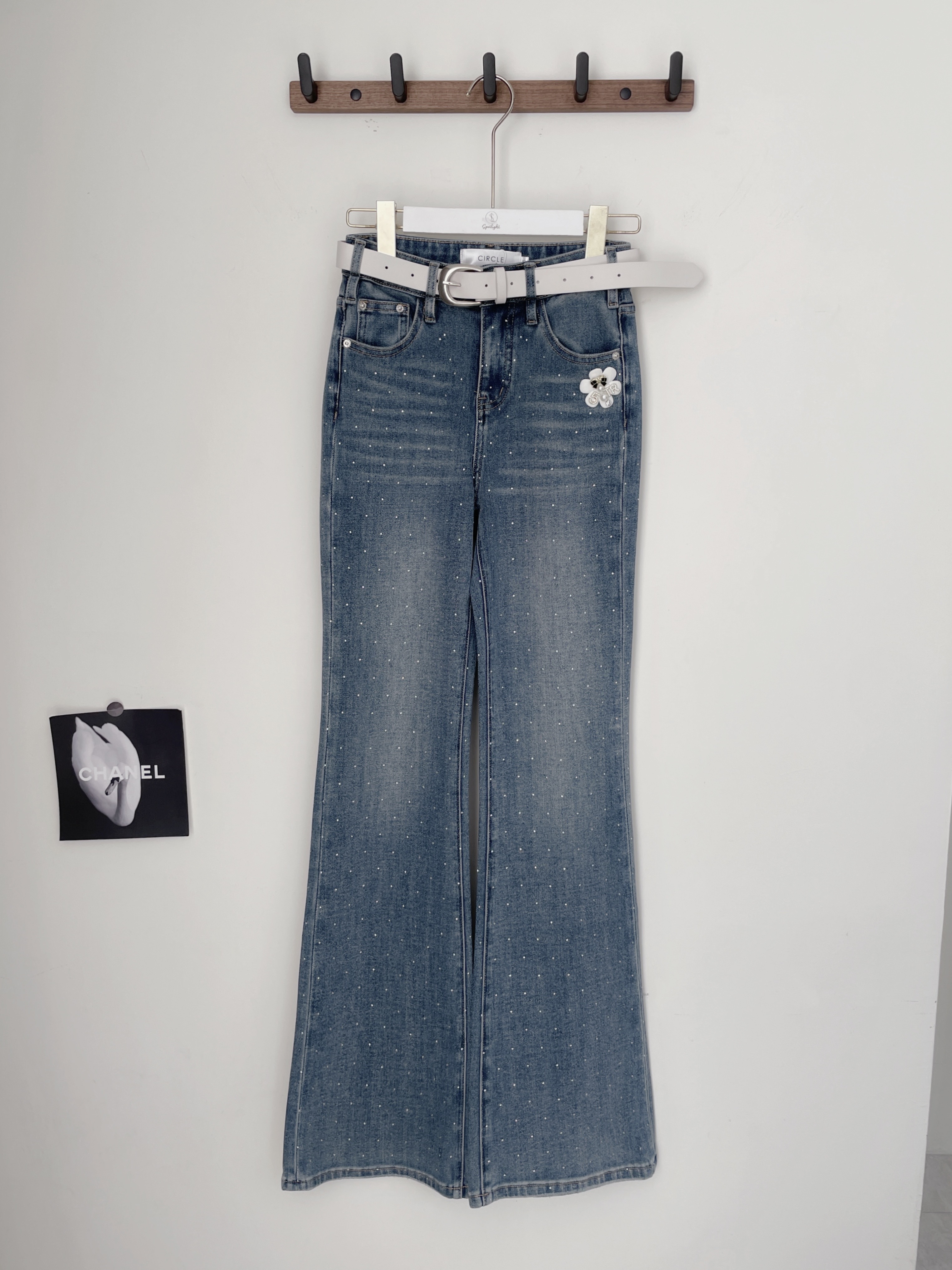 名媛限定 韓國附腰帶亮鑽喇叭長褲