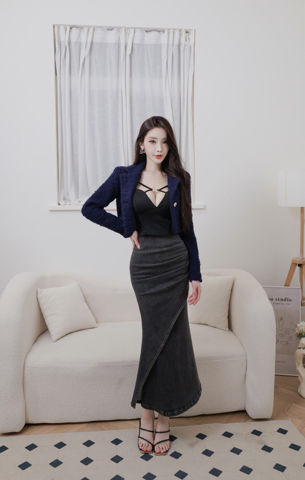 搭配立體抓皺魚尾設計,走動間自然擺動,優雅又迷人。