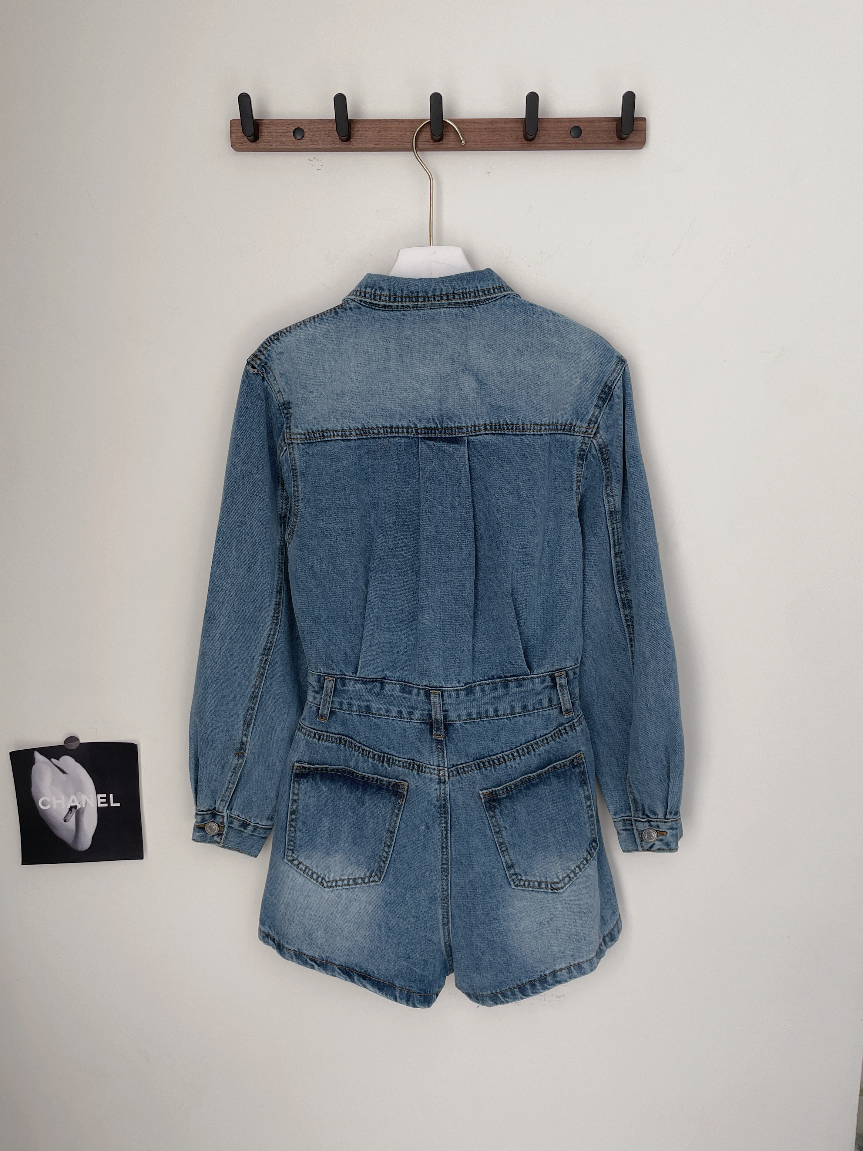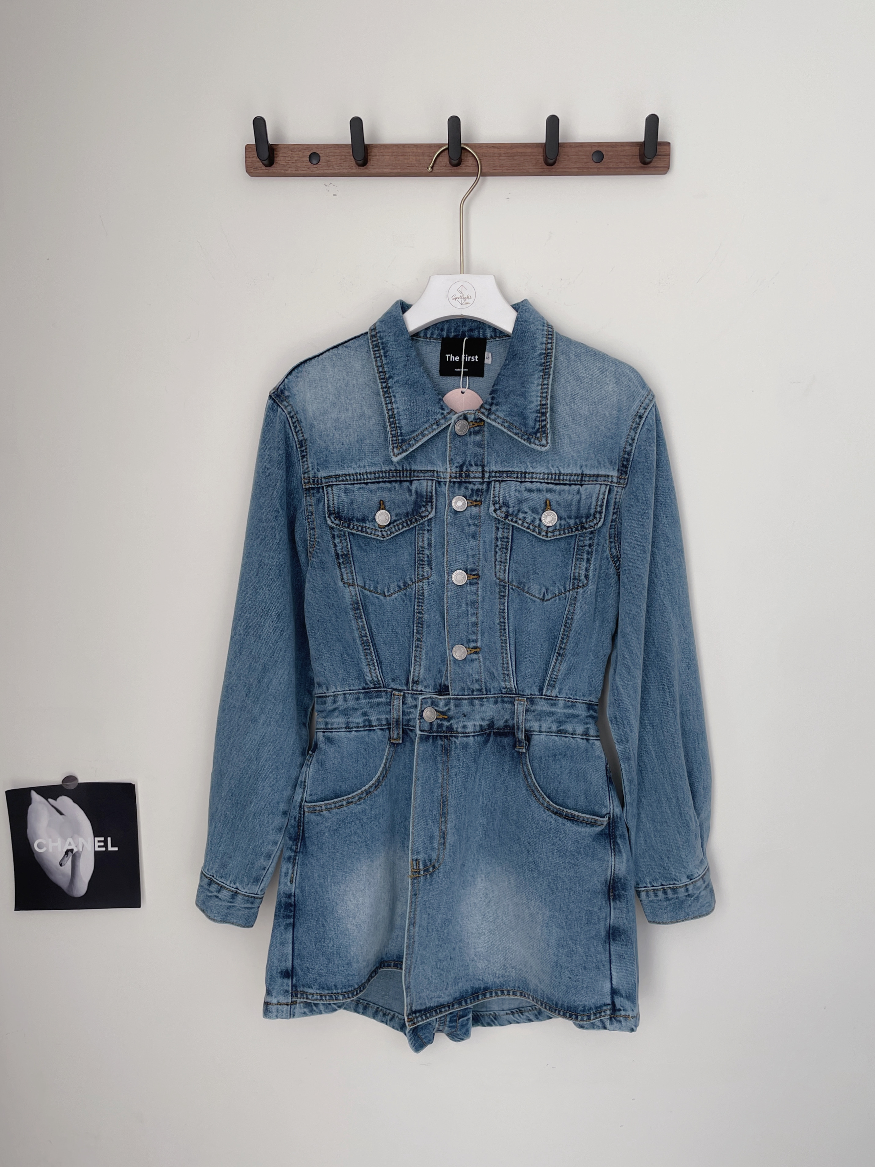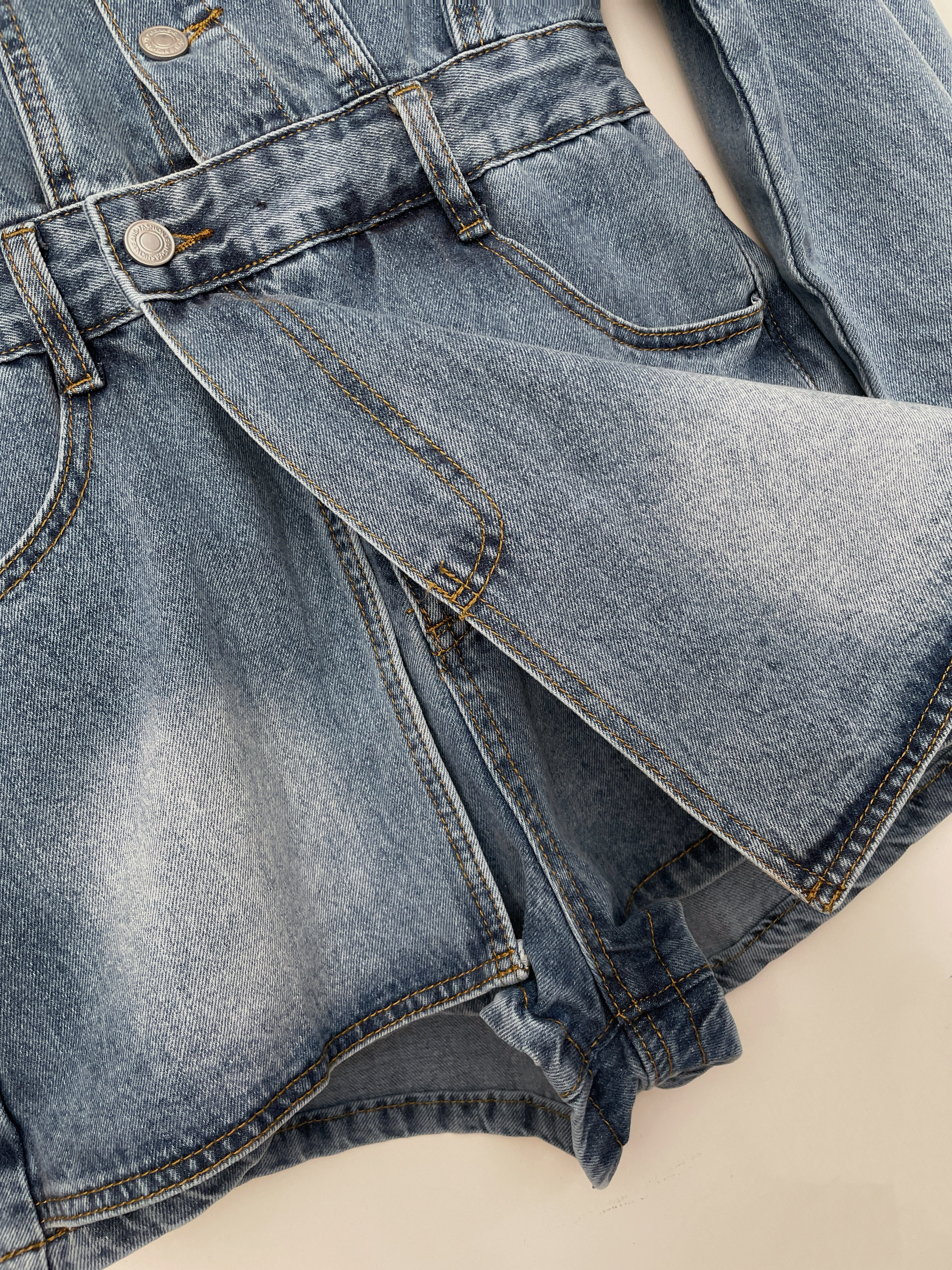 韓國經典丹寧銀釦連身短褲