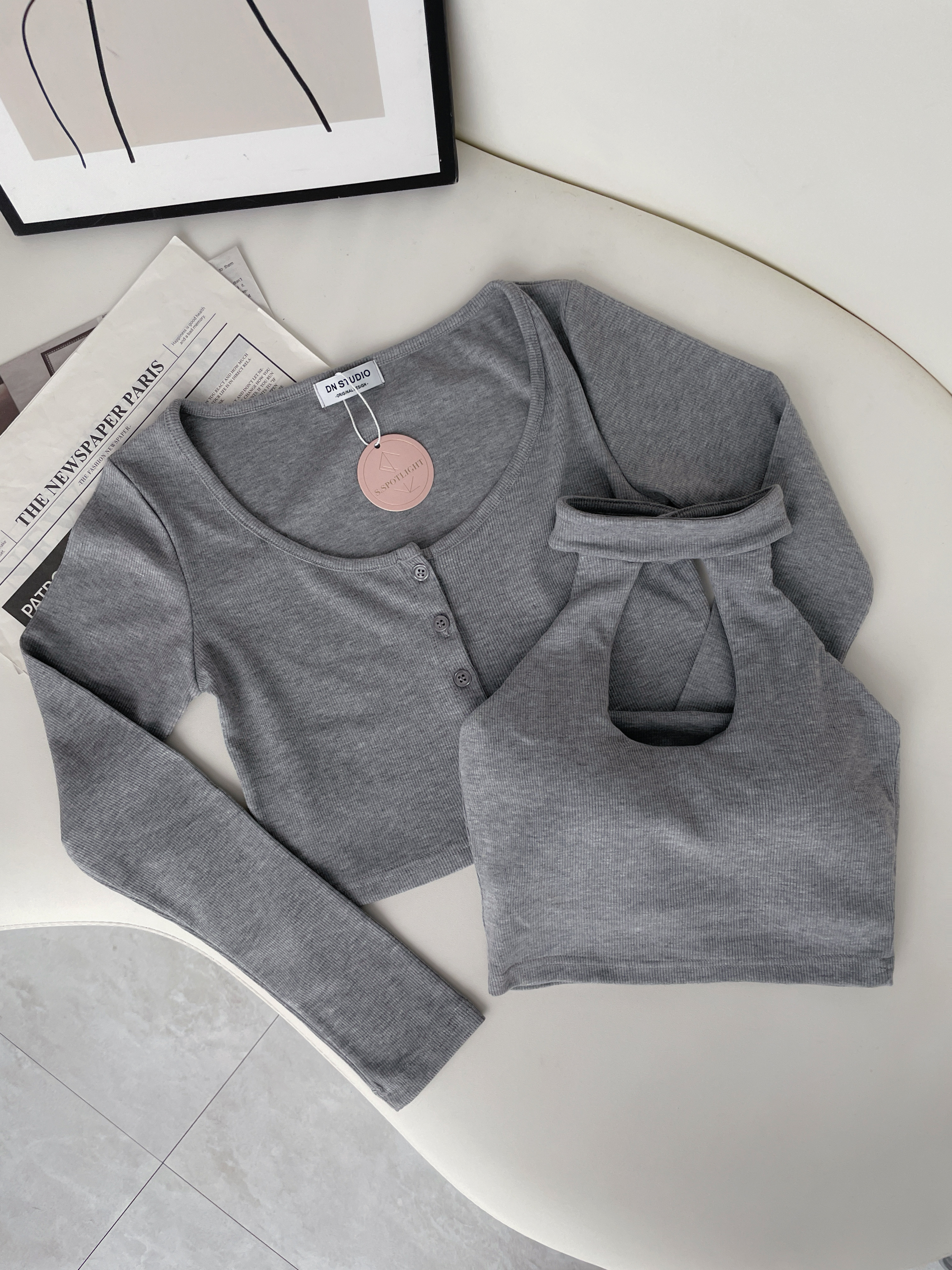 【SET】削肩挖胸爆乳馬甲+長袖小外套