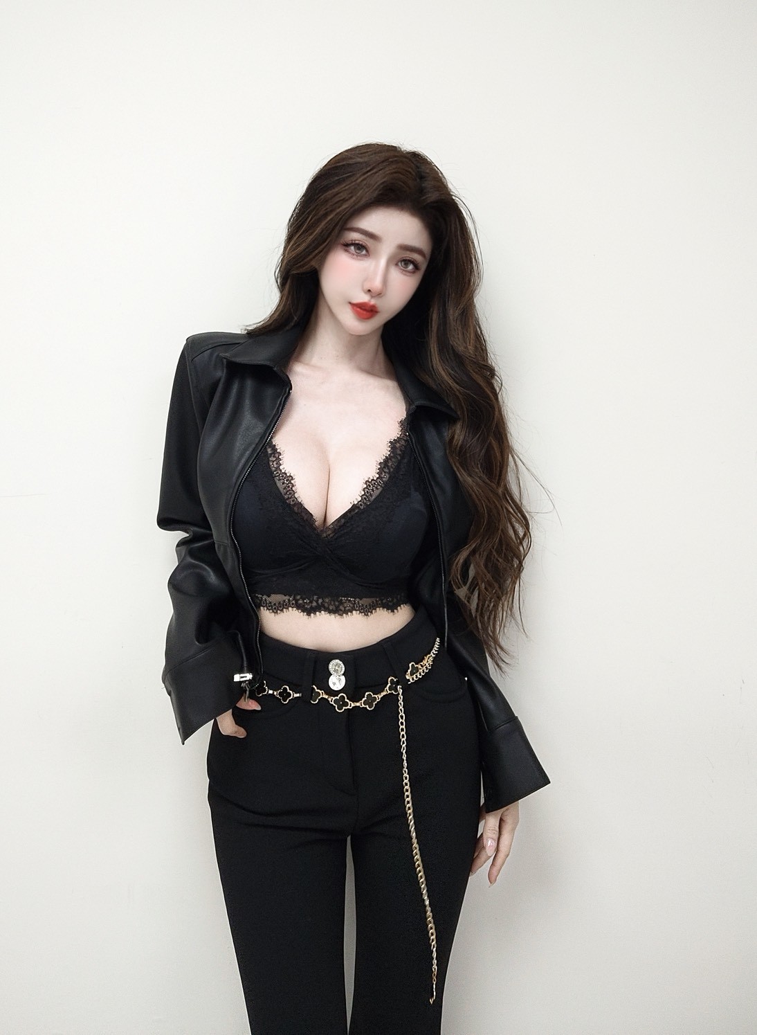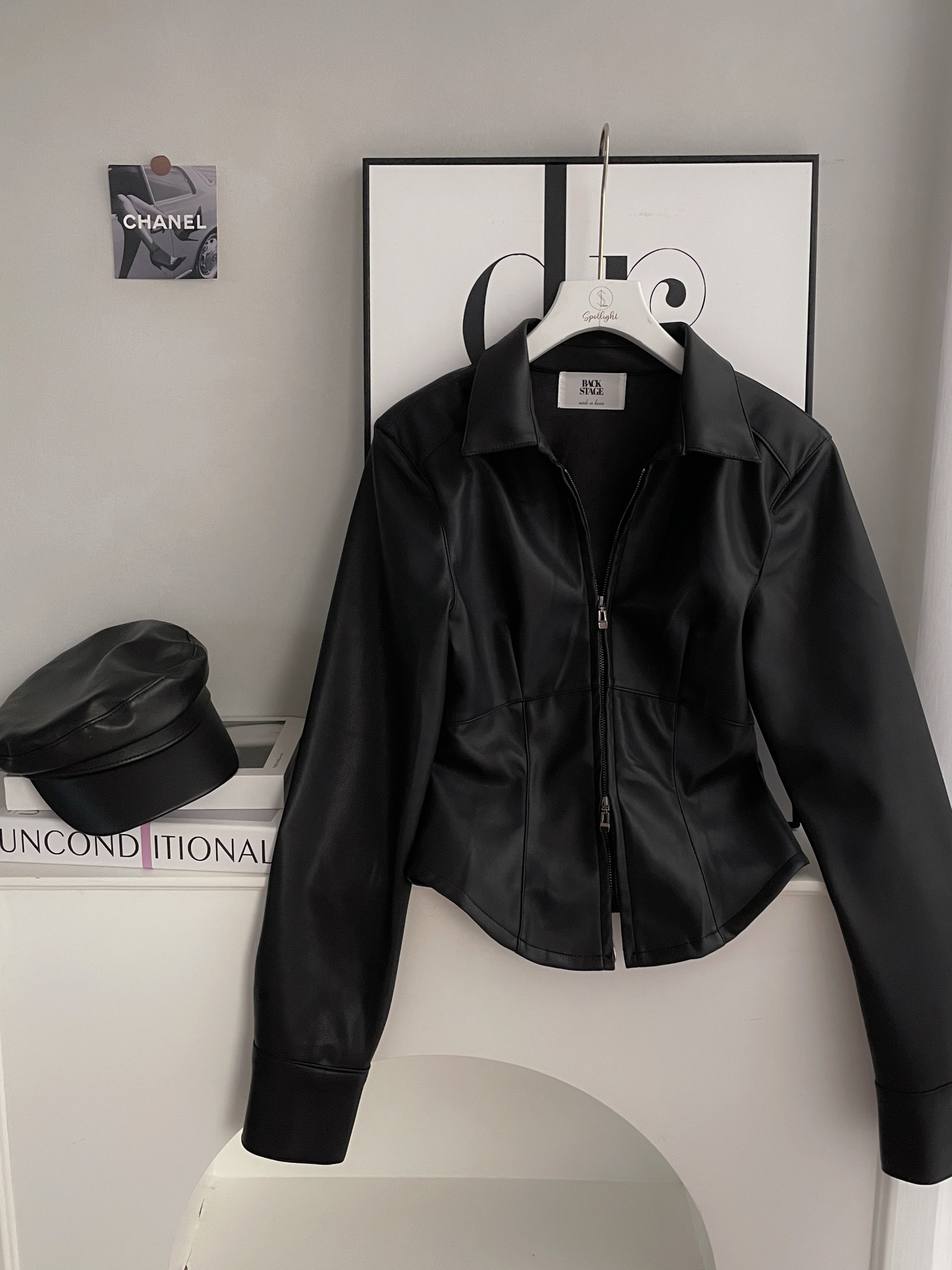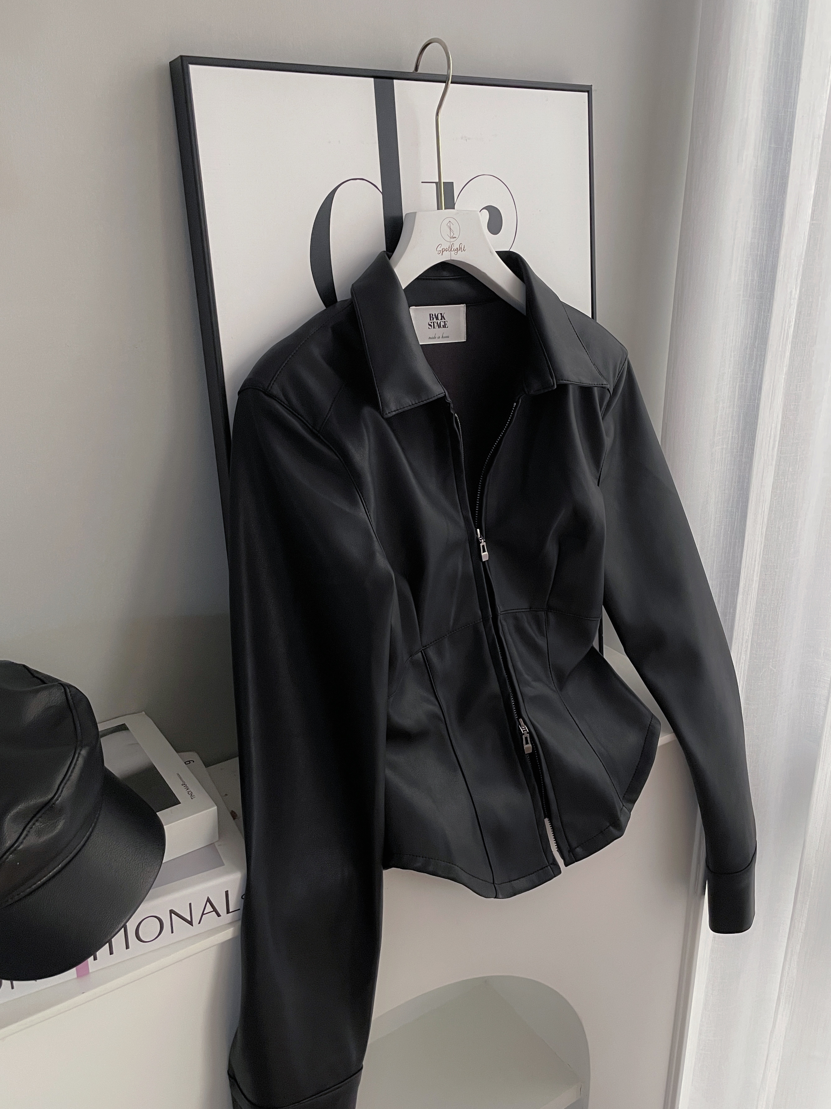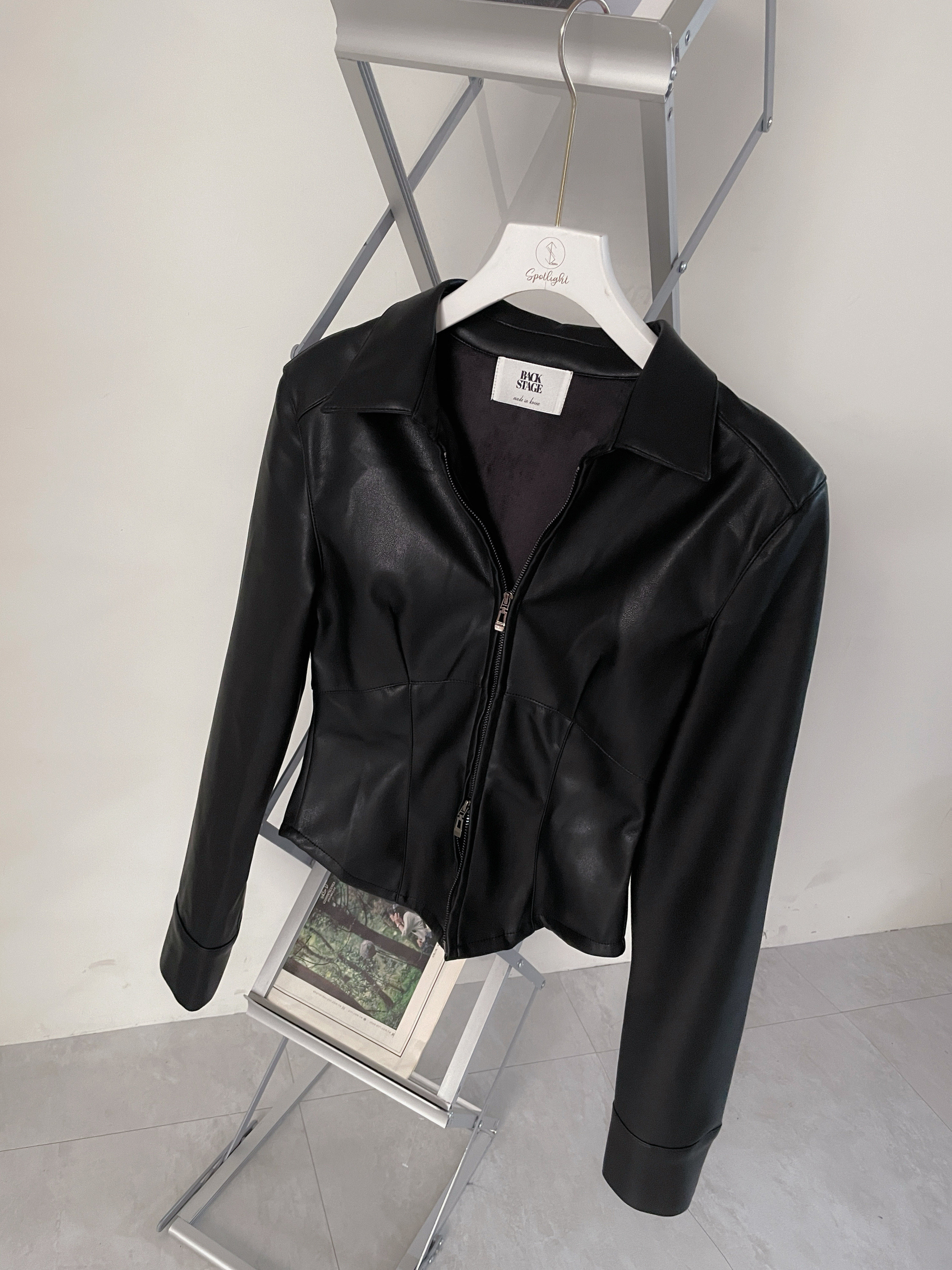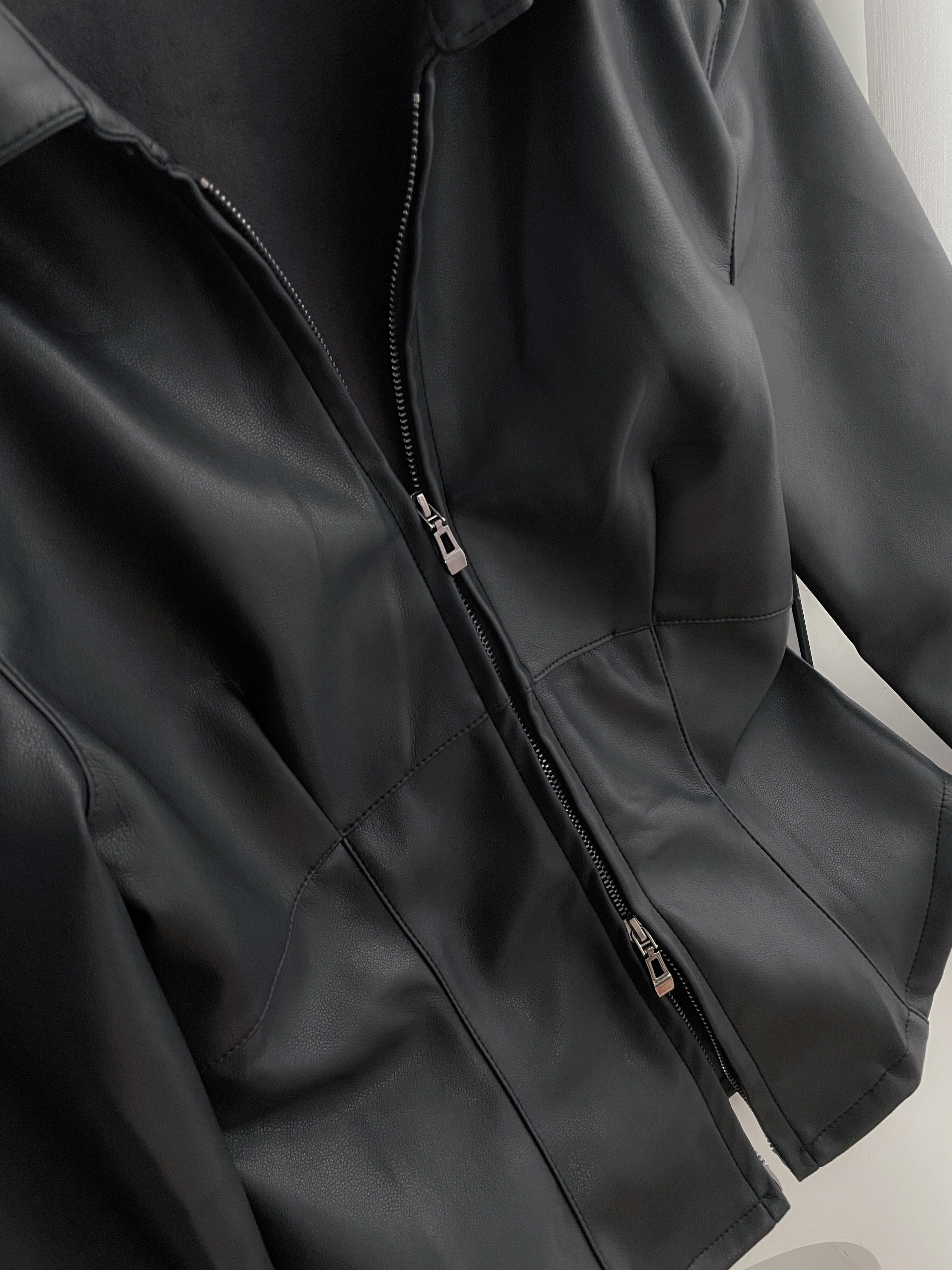 韓國雙拉鏈修身皮革外套
