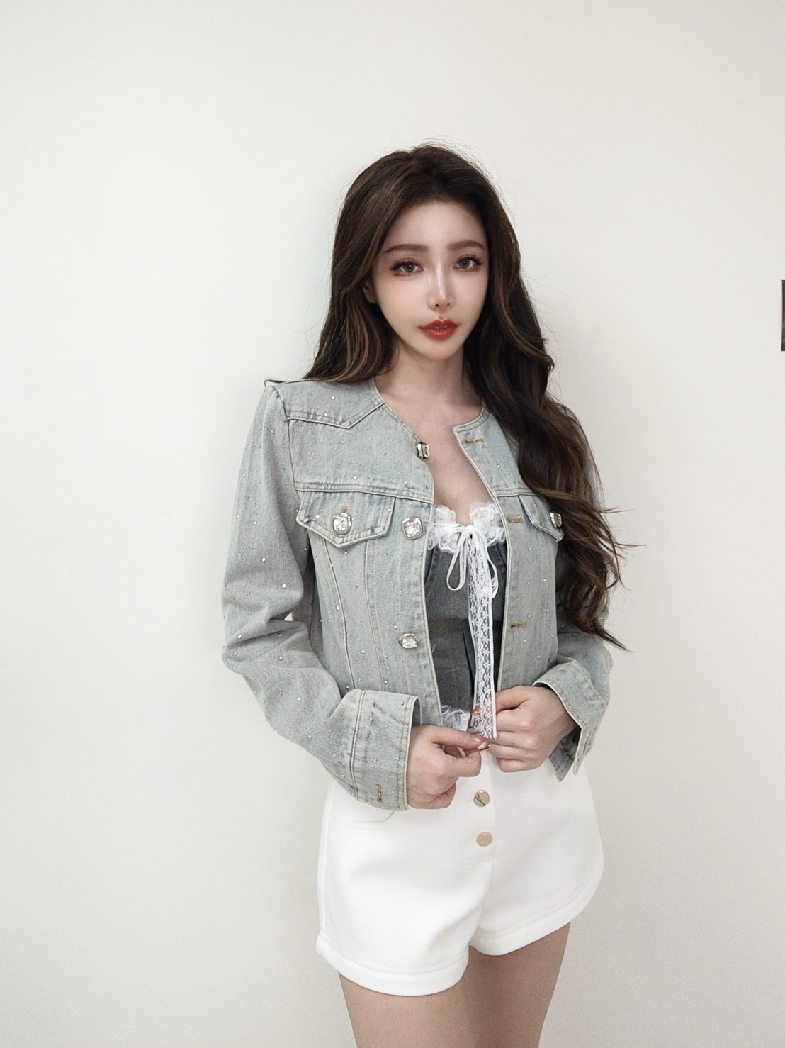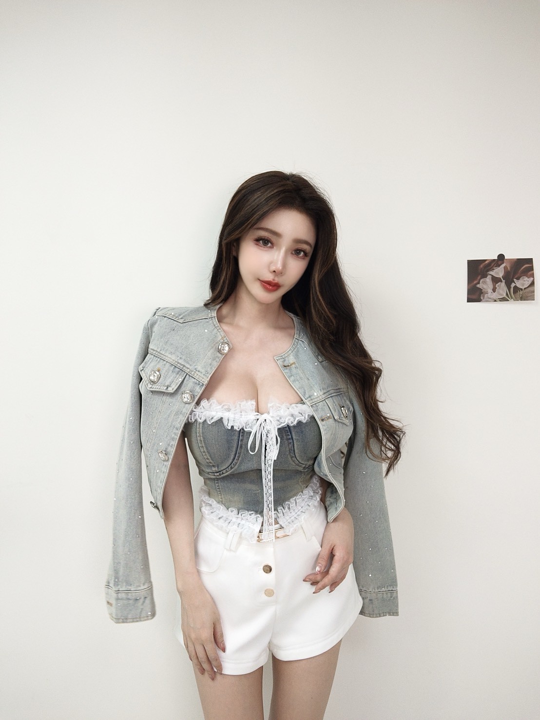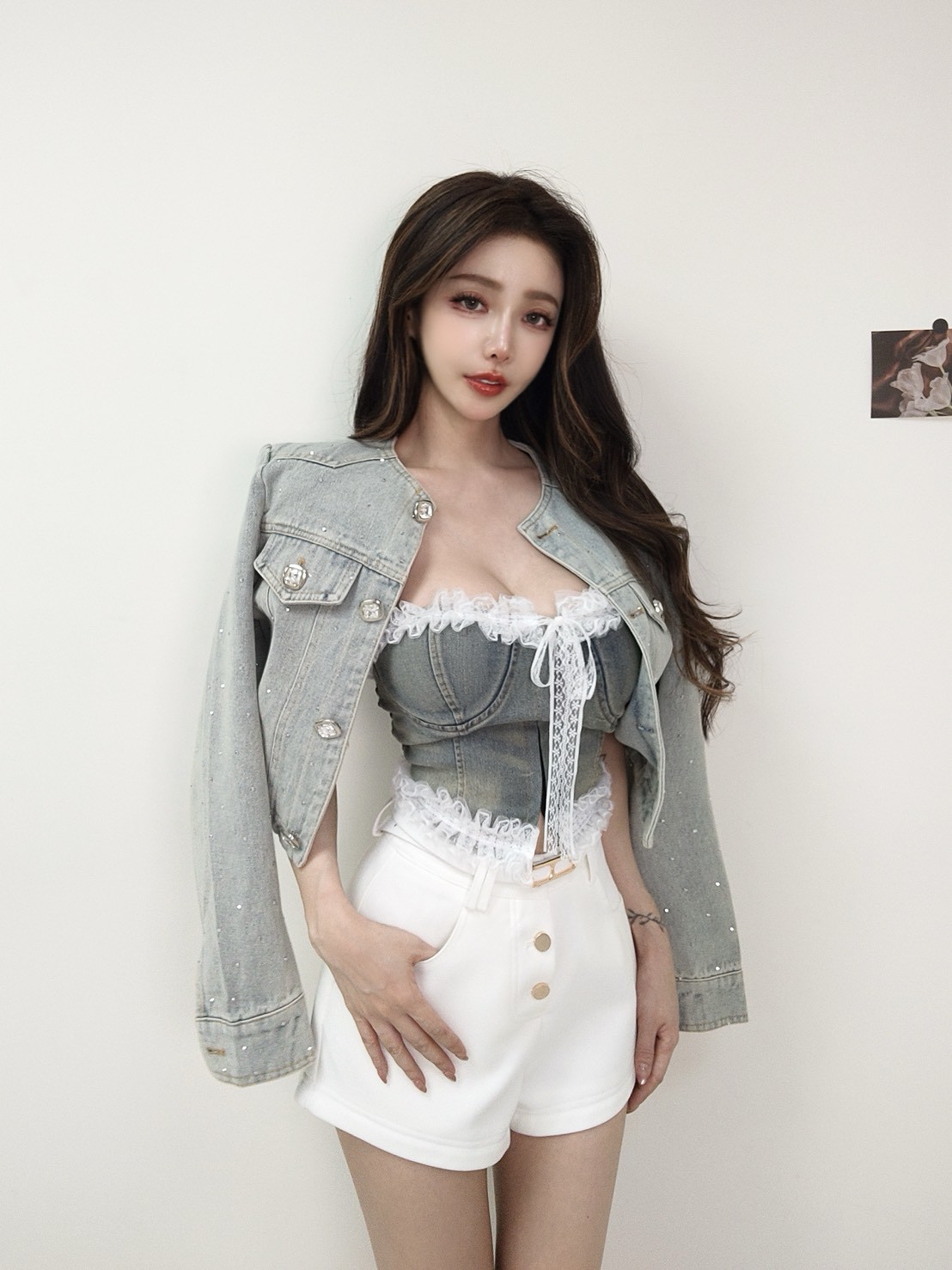 優雅藍調 平口蕾絲綁帶牛仔馬甲