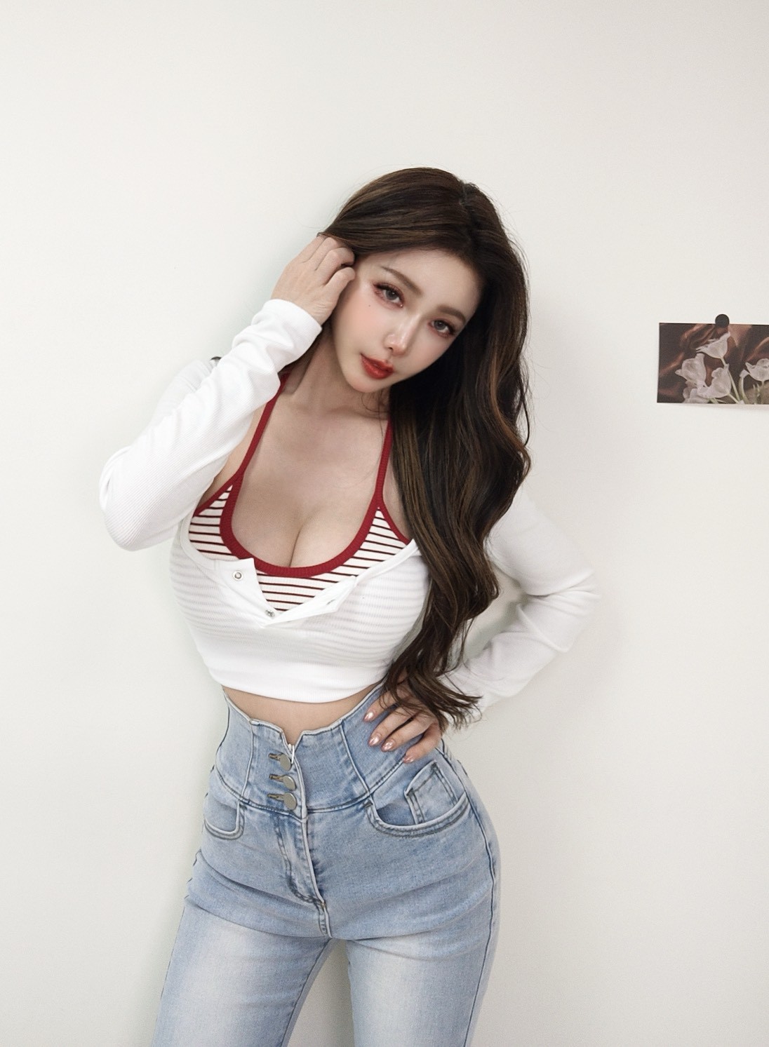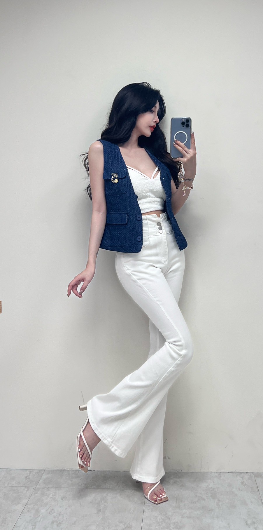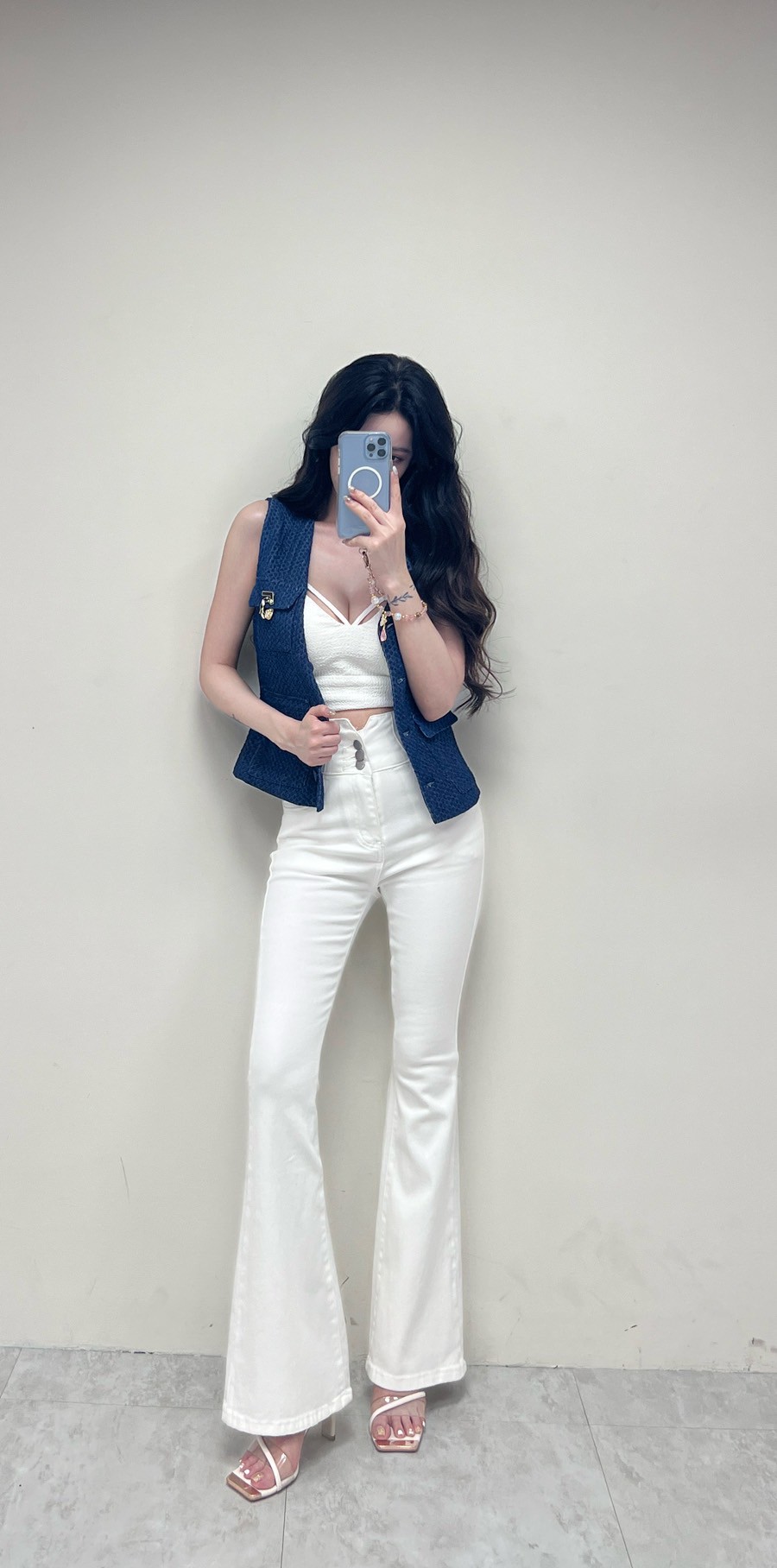 比例神款 高腰三釦背交叉牛仔喇叭褲