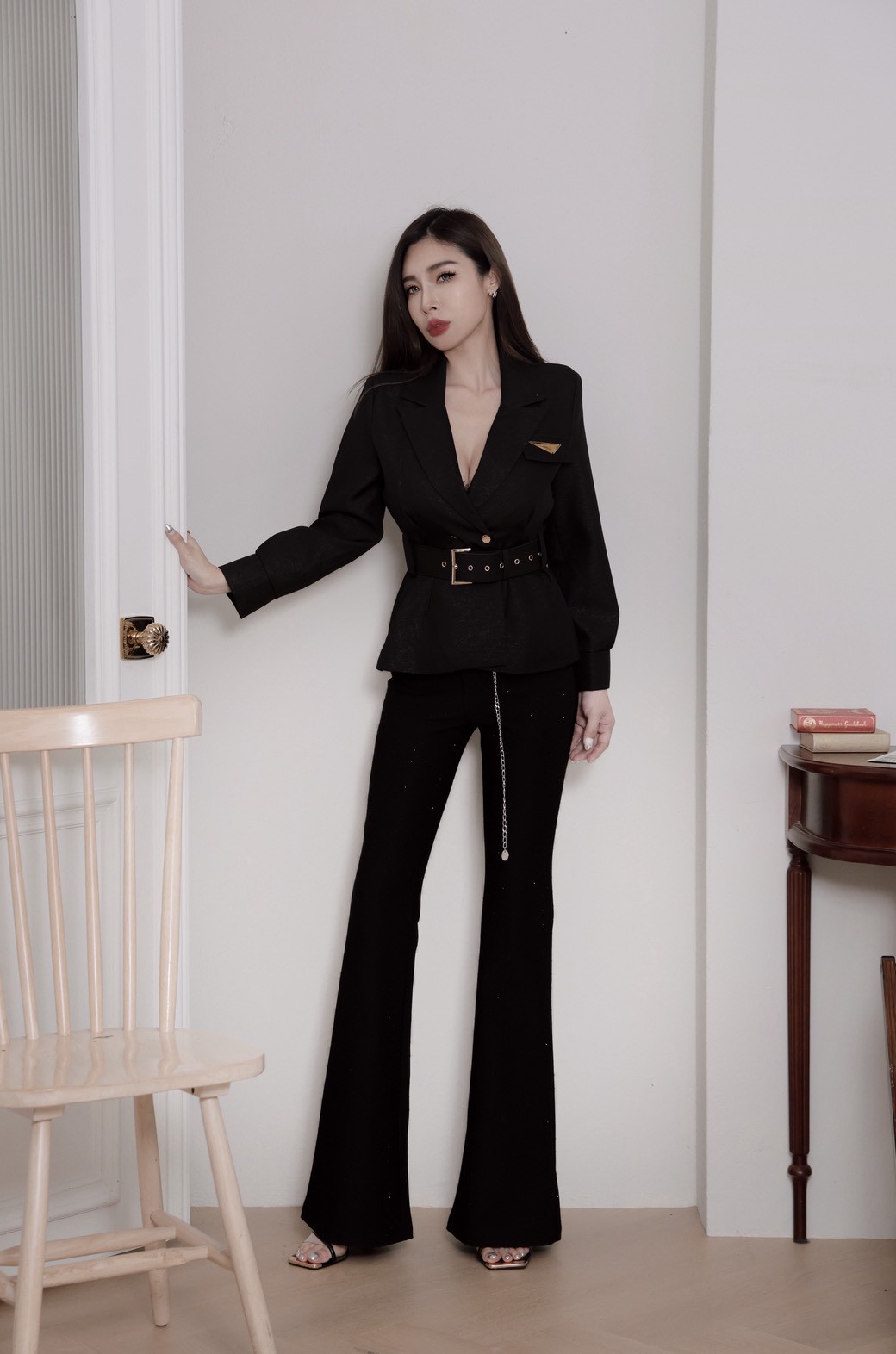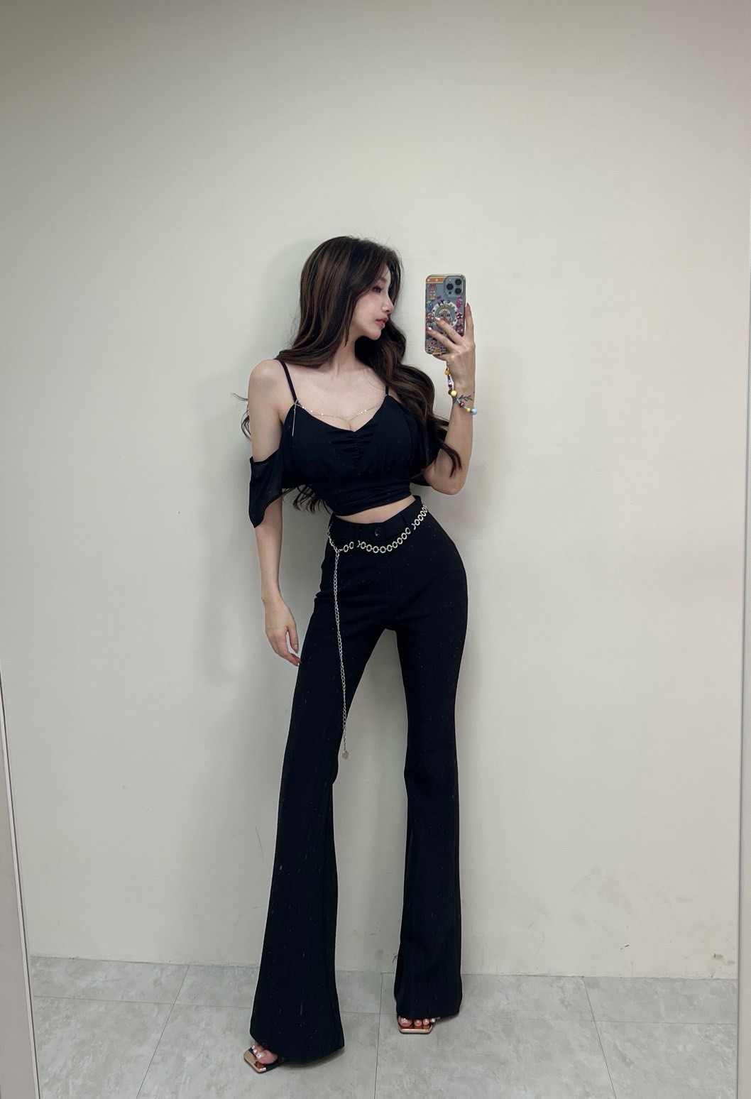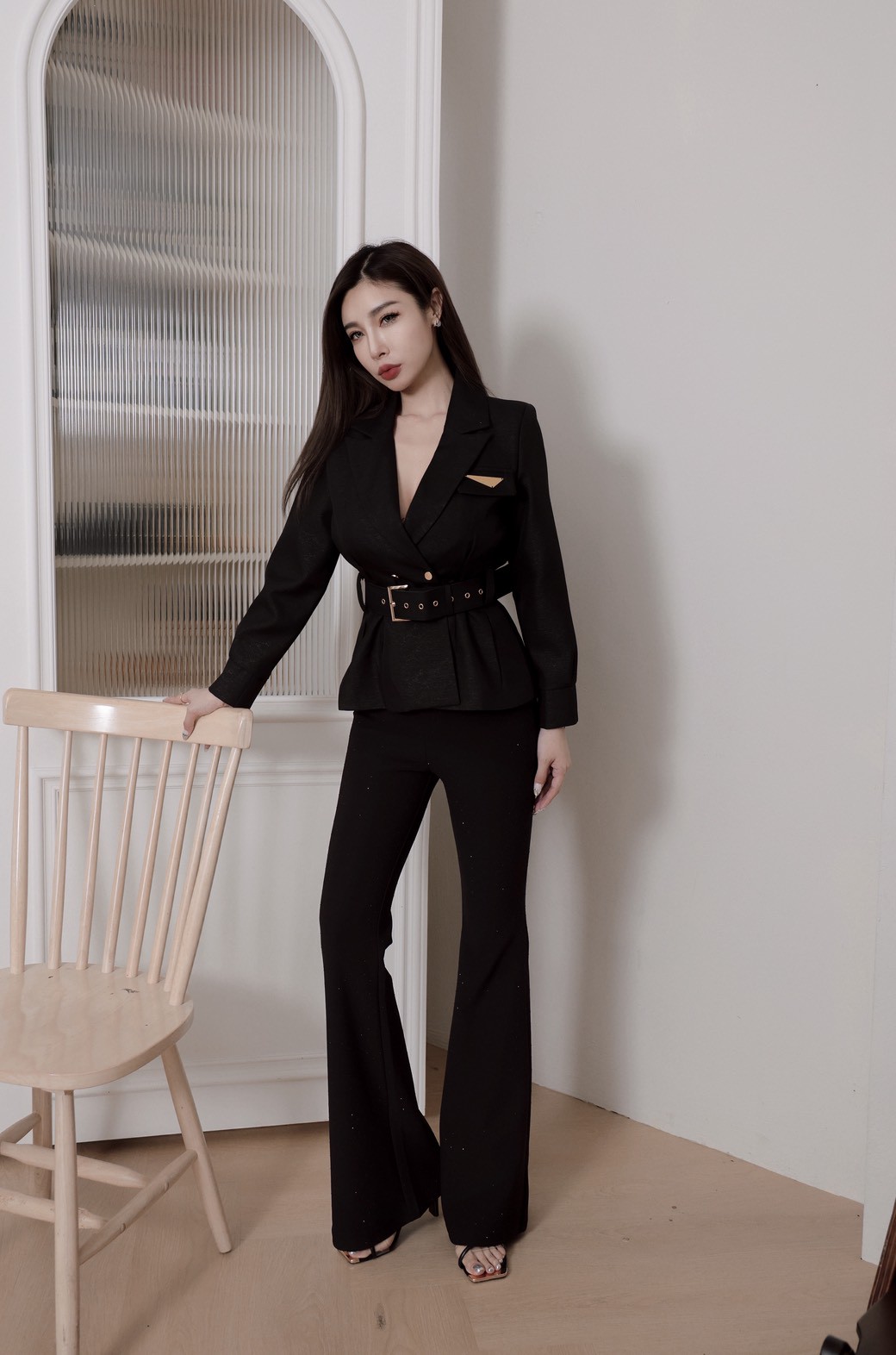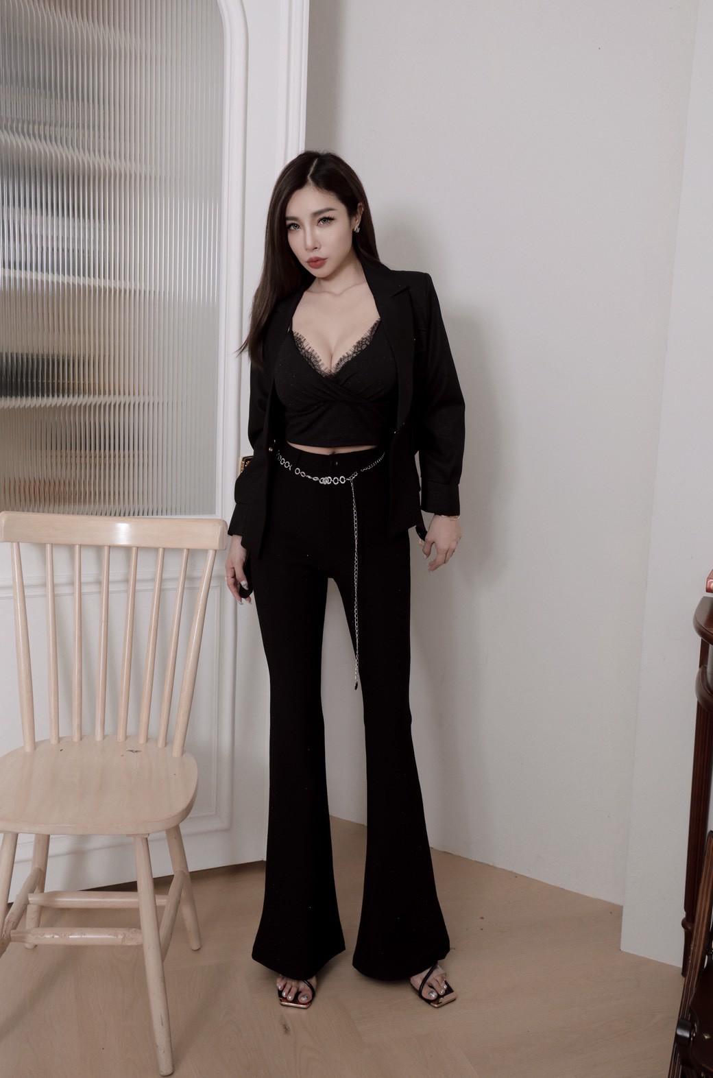 銀河枷鎖 韓國亮鑽銀鏈西裝喇叭褲