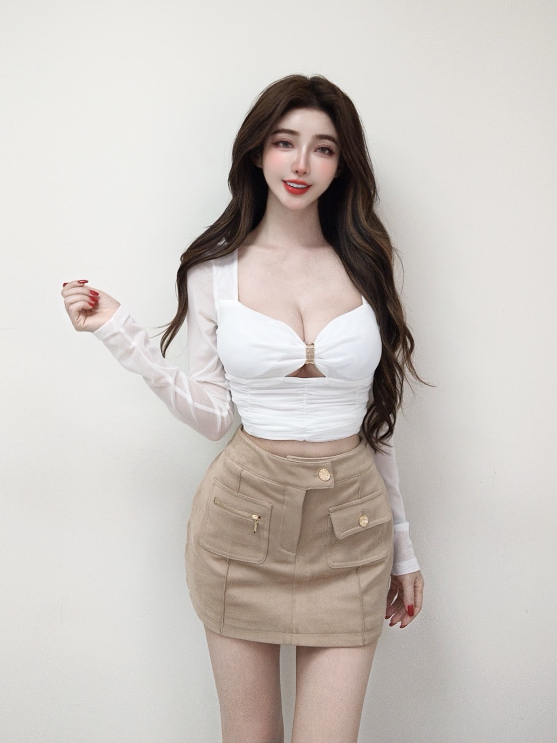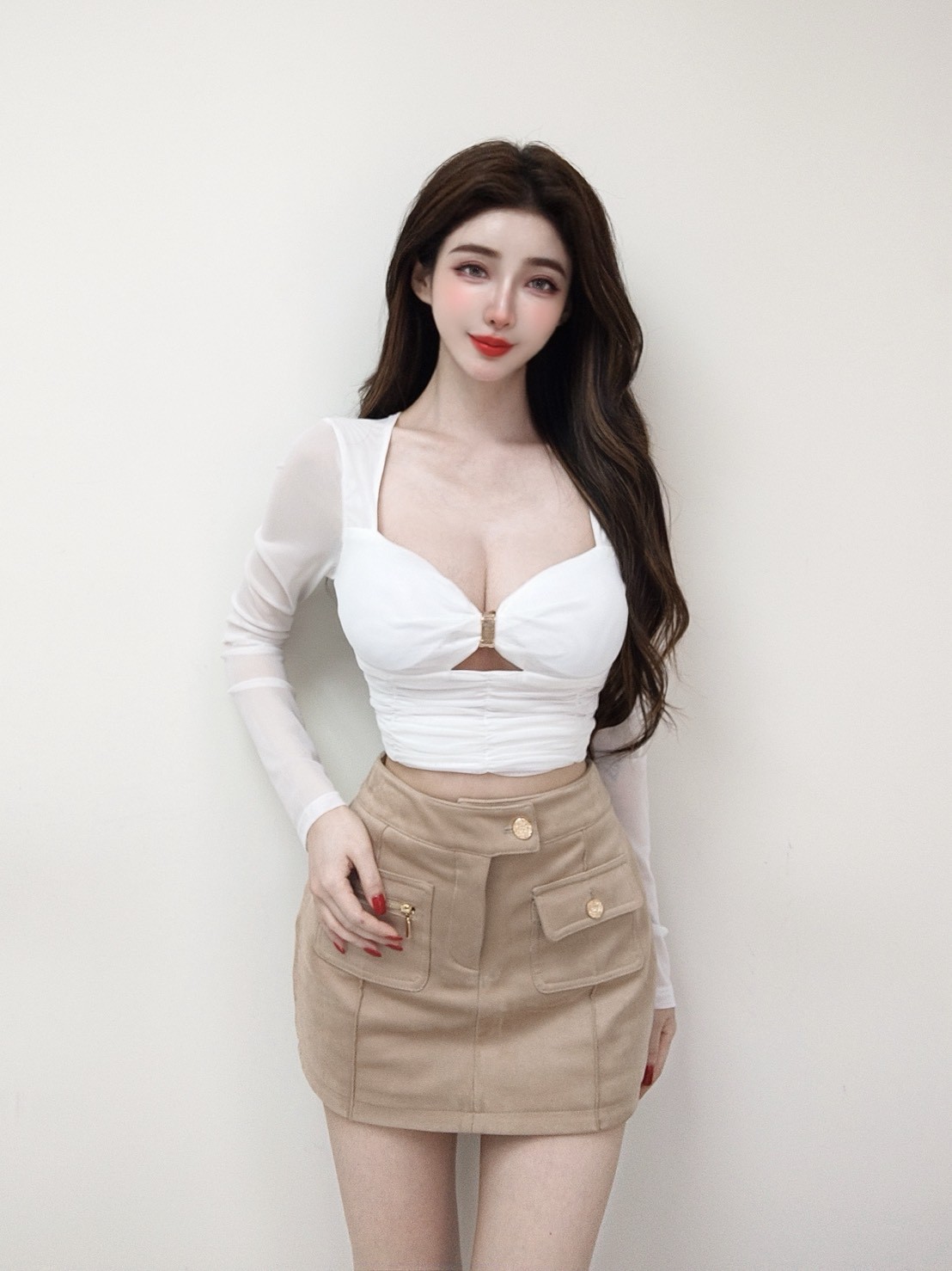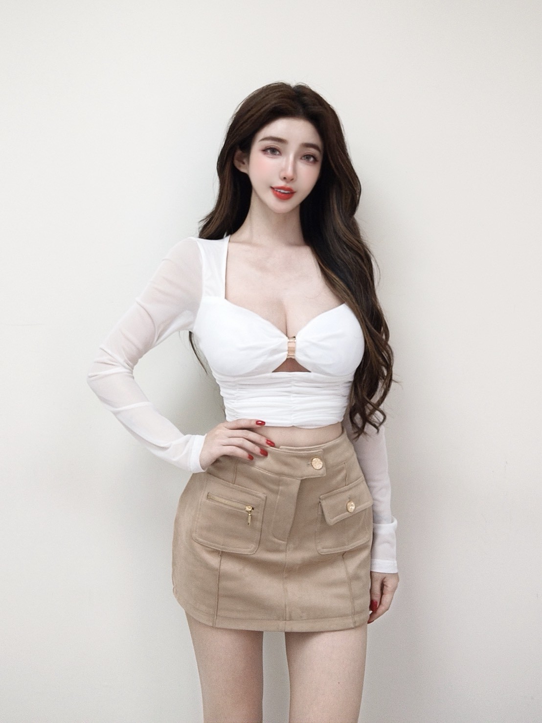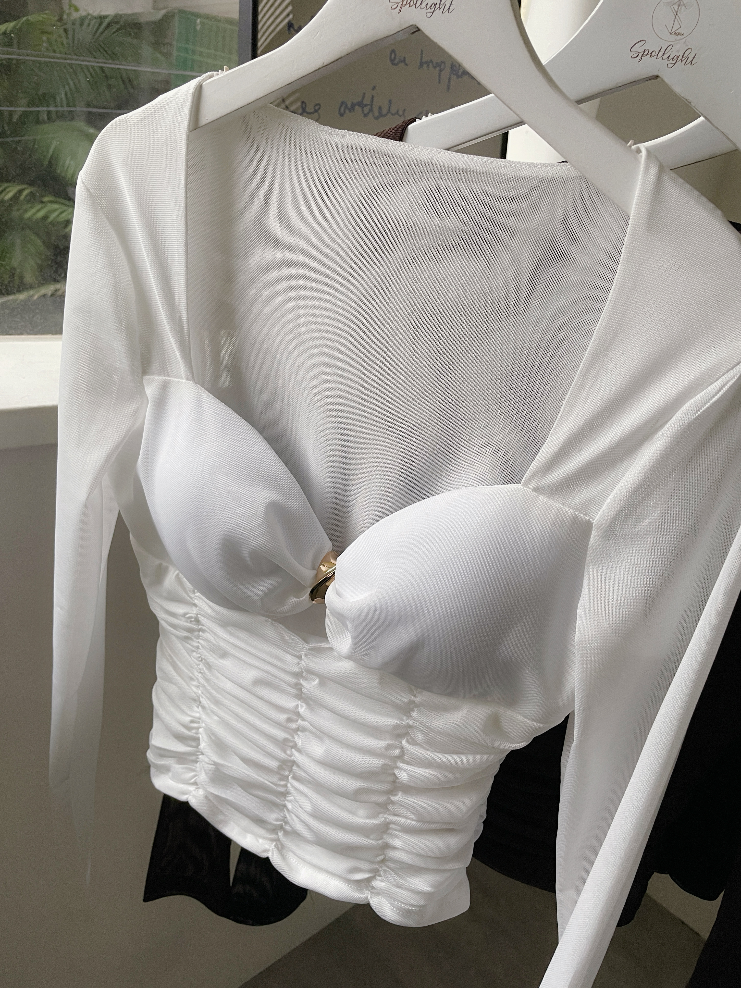 韓國桃心金屬網紗抓皺長袖上衣
