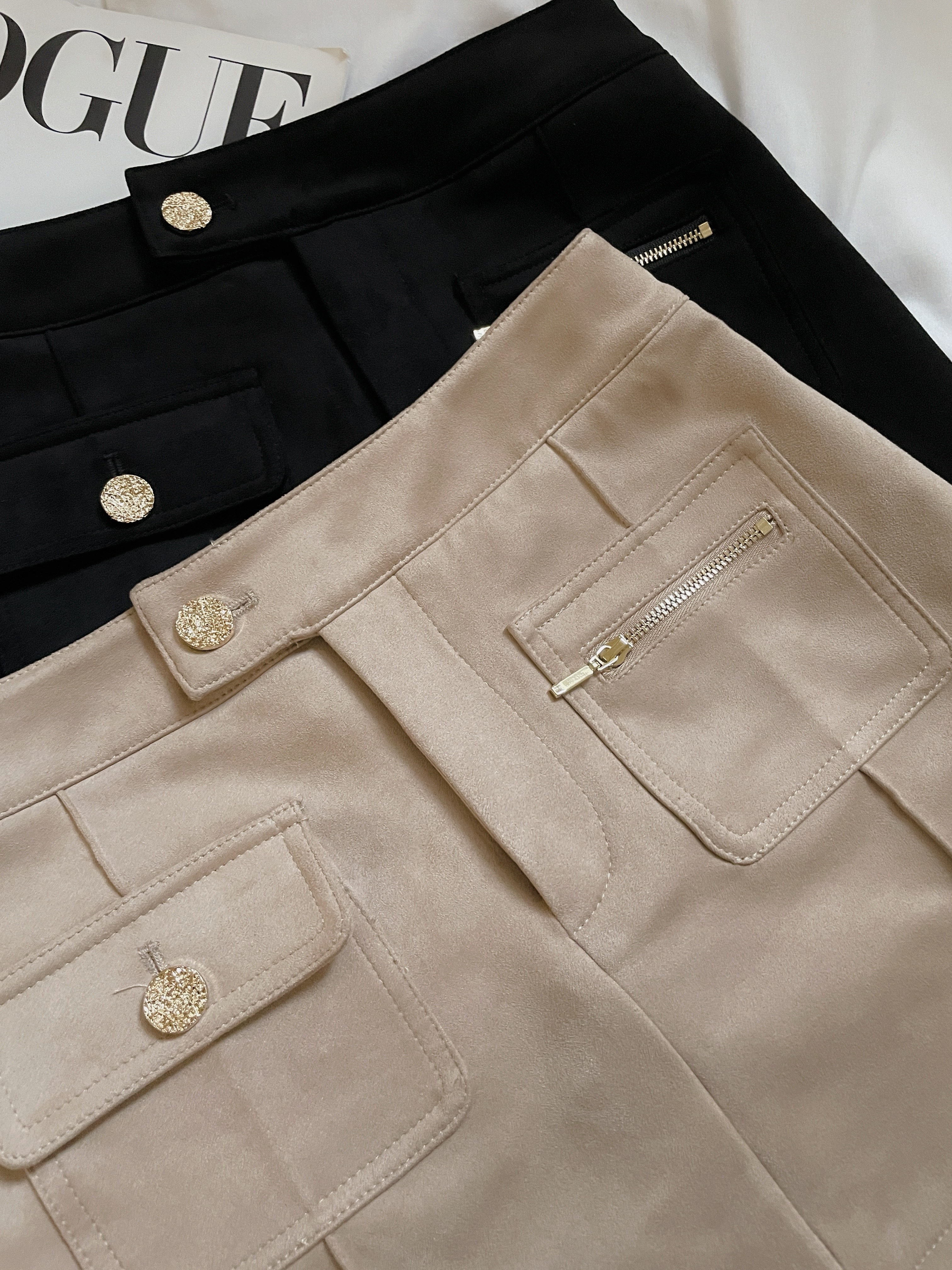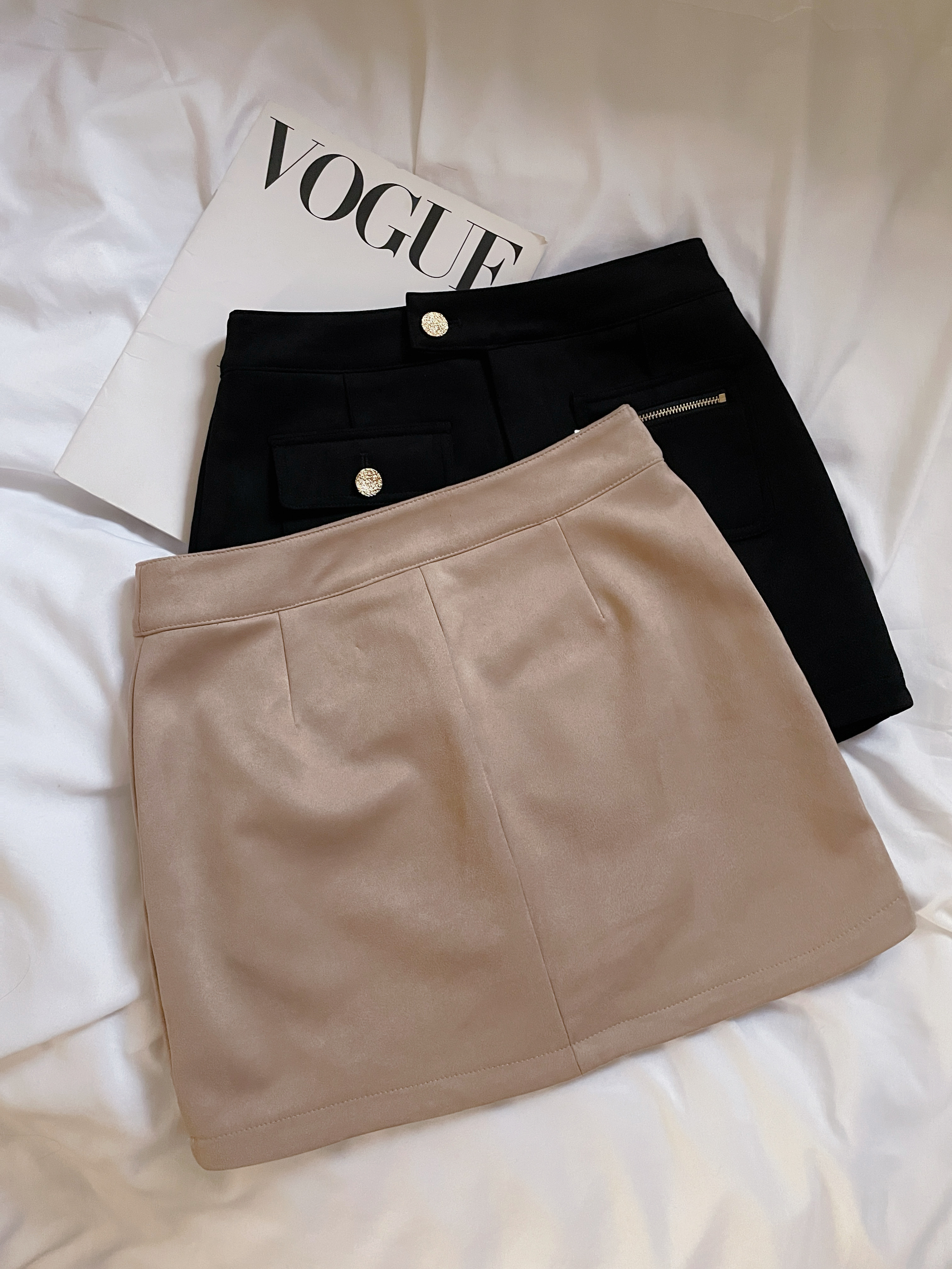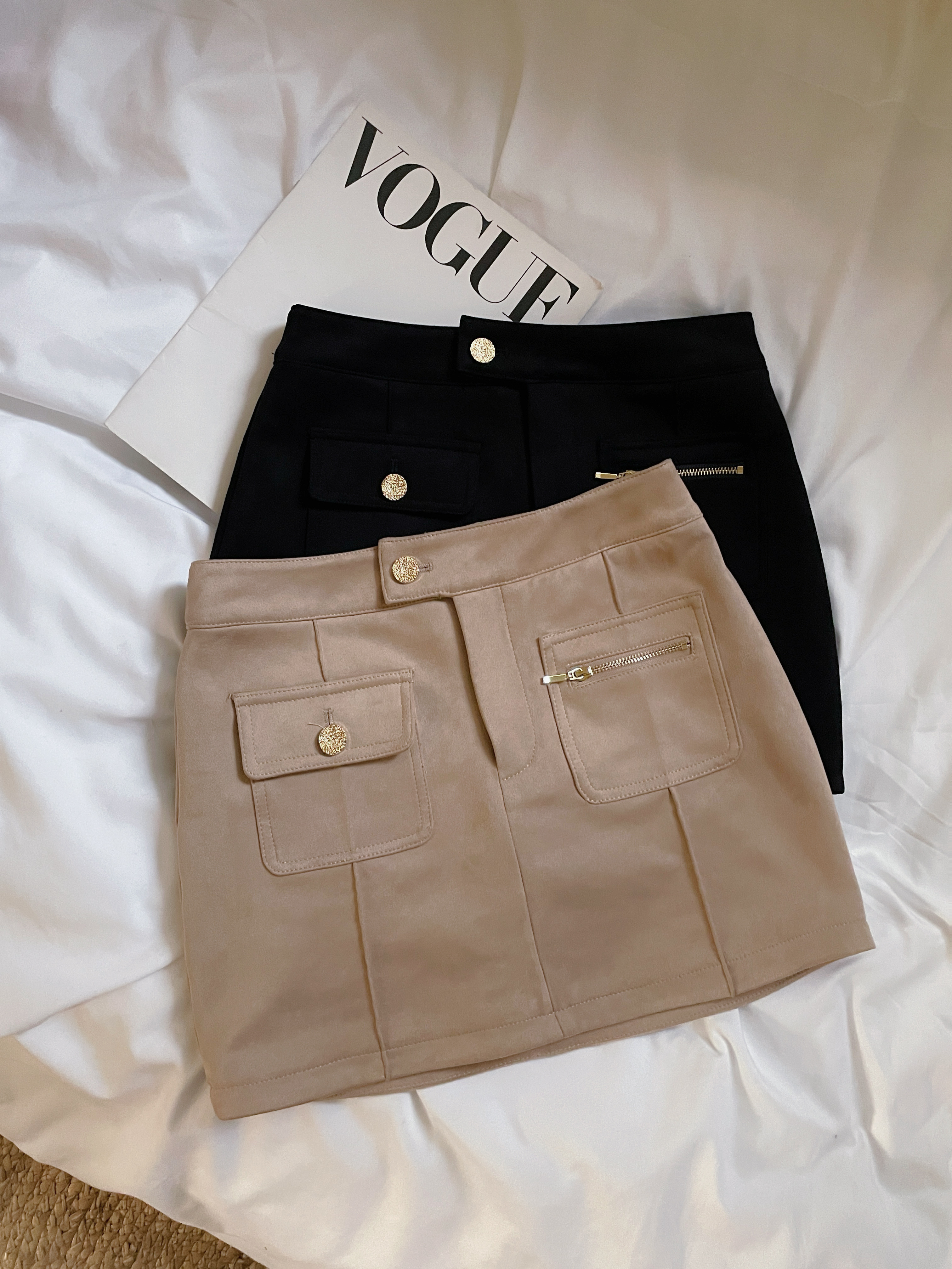 韓國麂皮造型口袋短裙