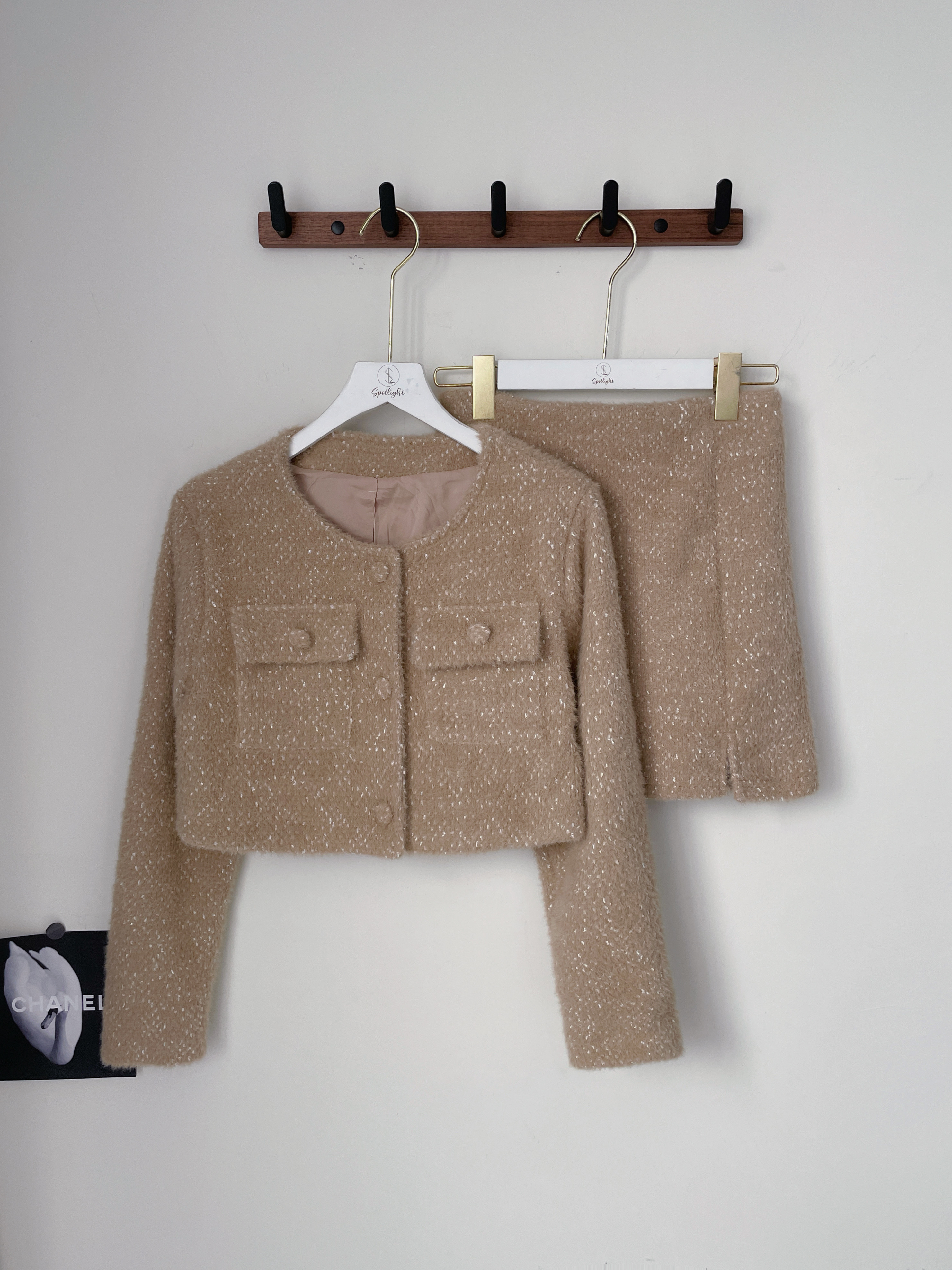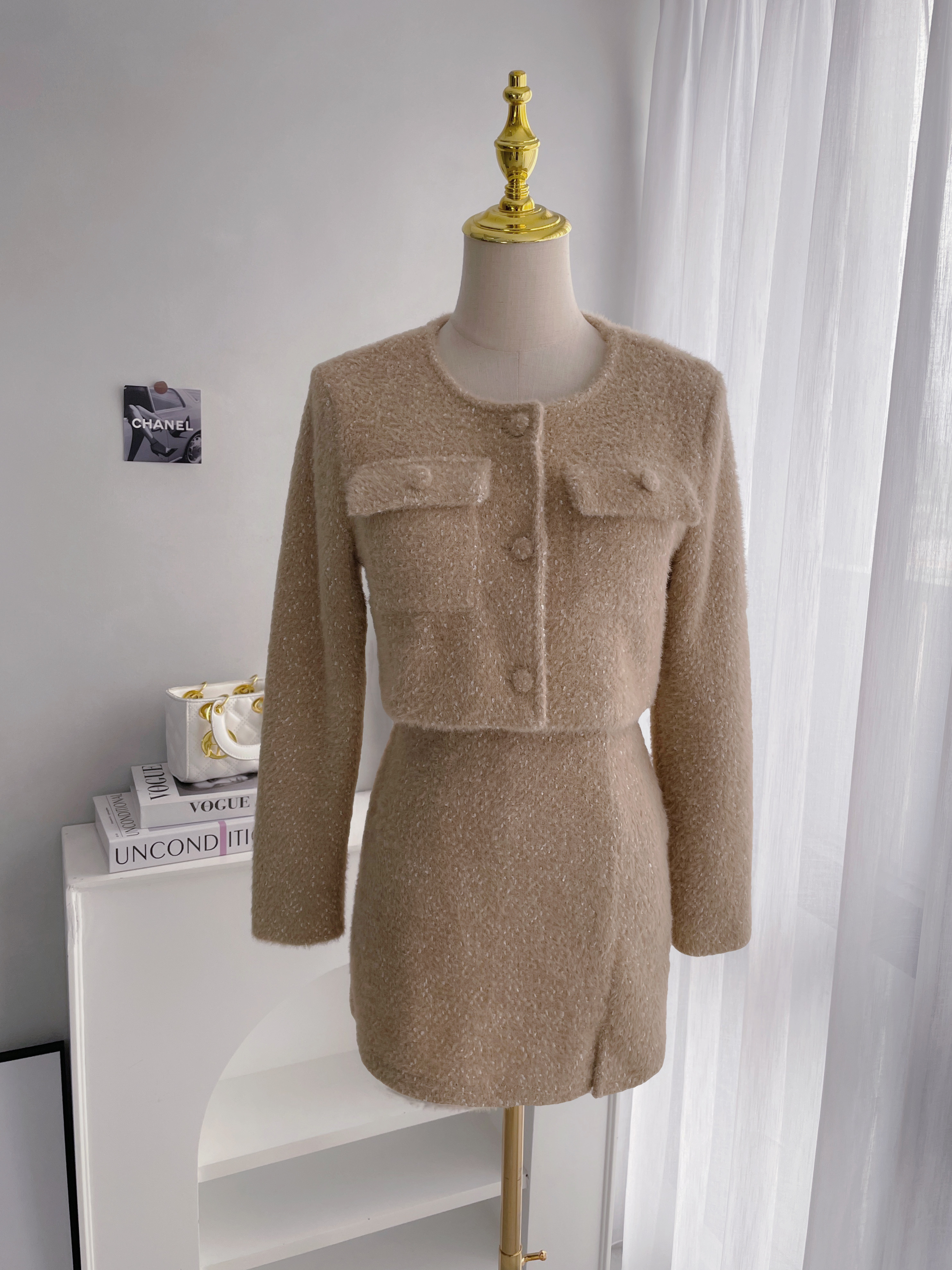 【SET】小香混色細閃針織外套+短裙