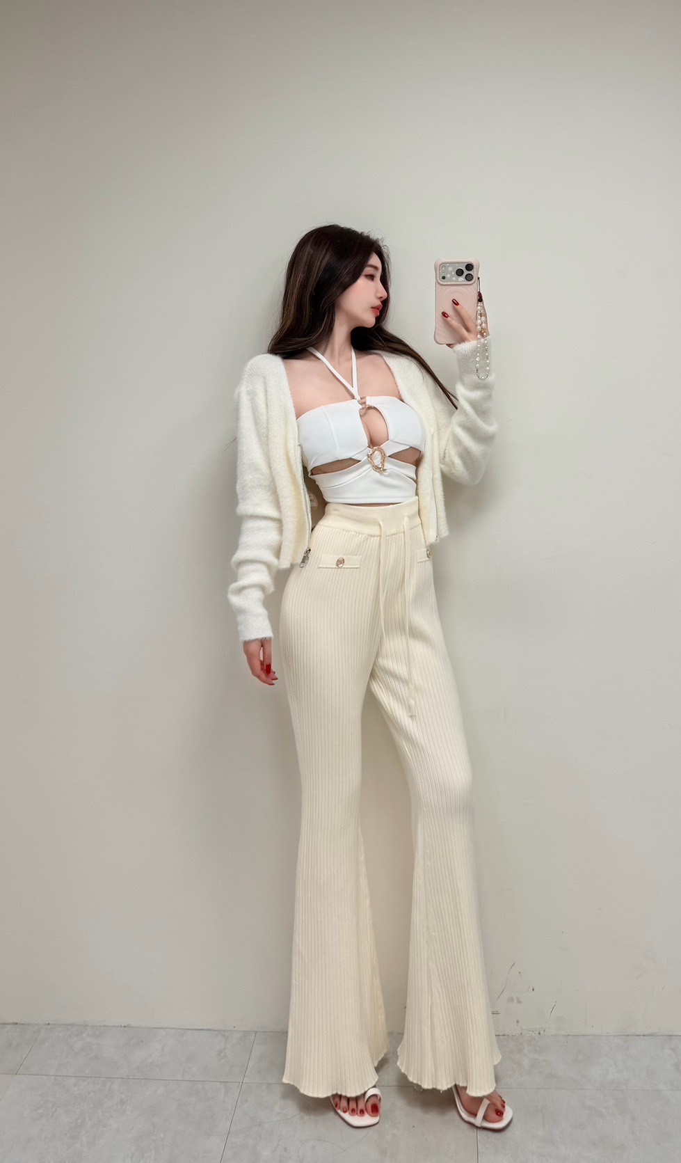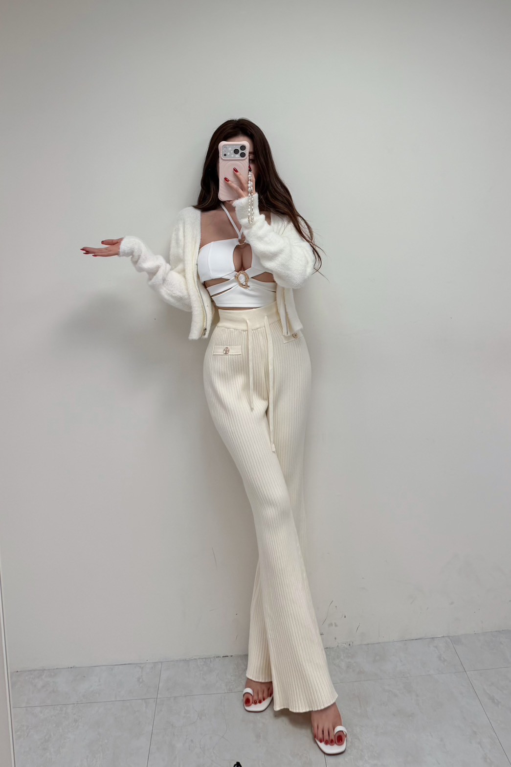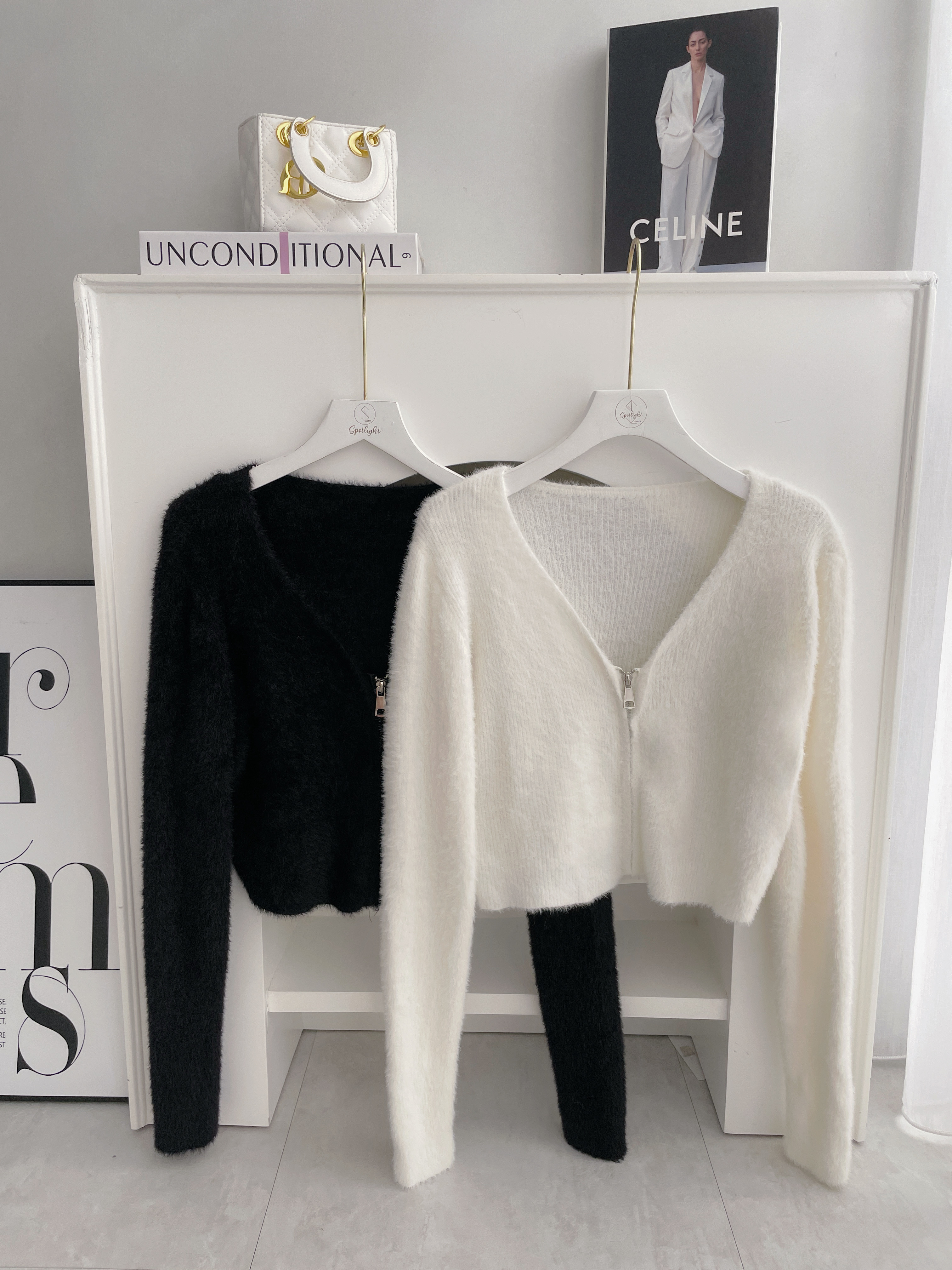 V領馬海毛拉鏈上衣