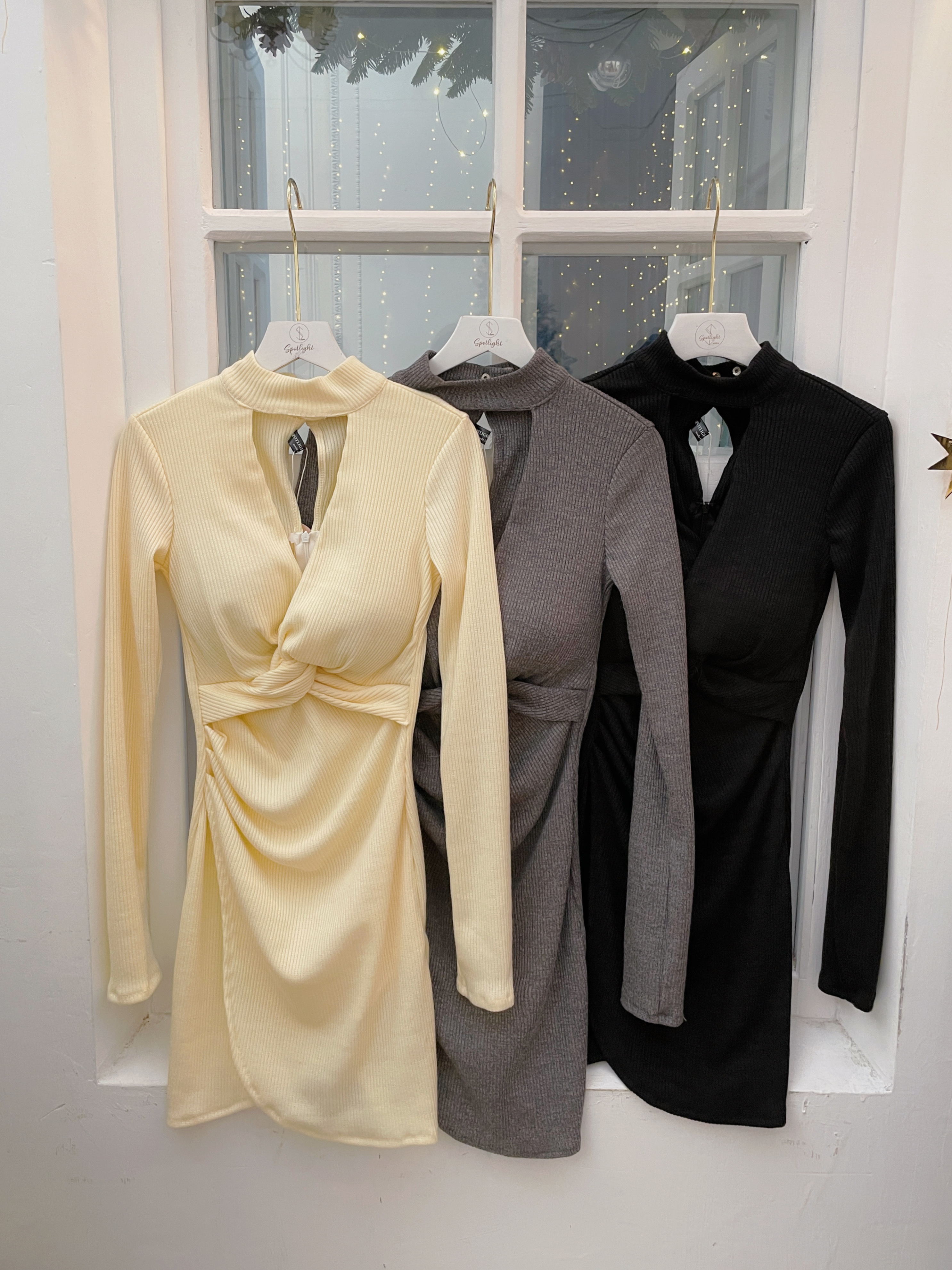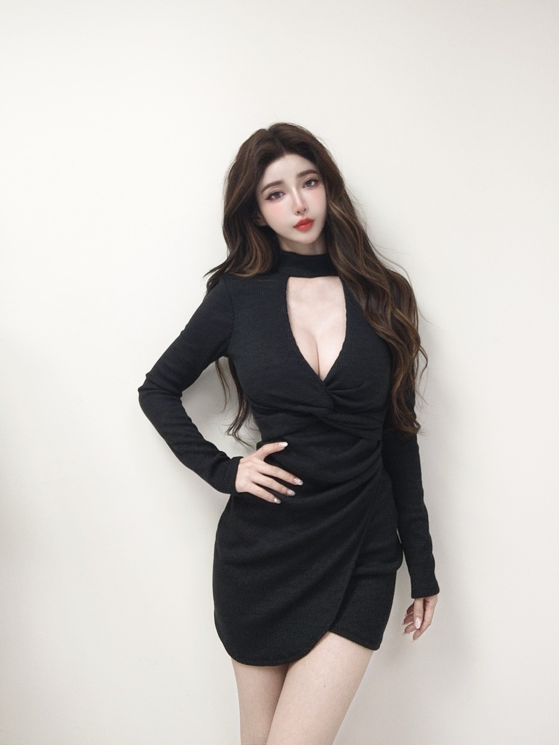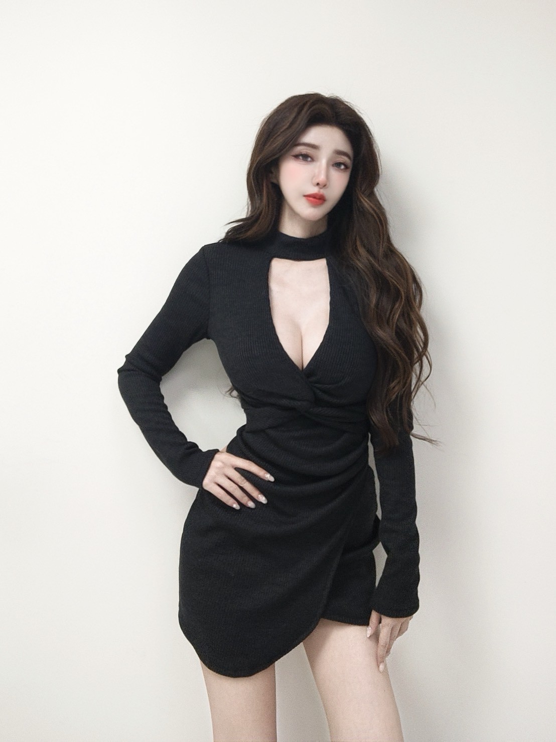 側邊立體抓皺修飾腰腹曲線,下擺交疊不規則設計視覺拉長腿部比例,羅紋面料帶彈性、貼合又顯瘦,質感與性感兼具。