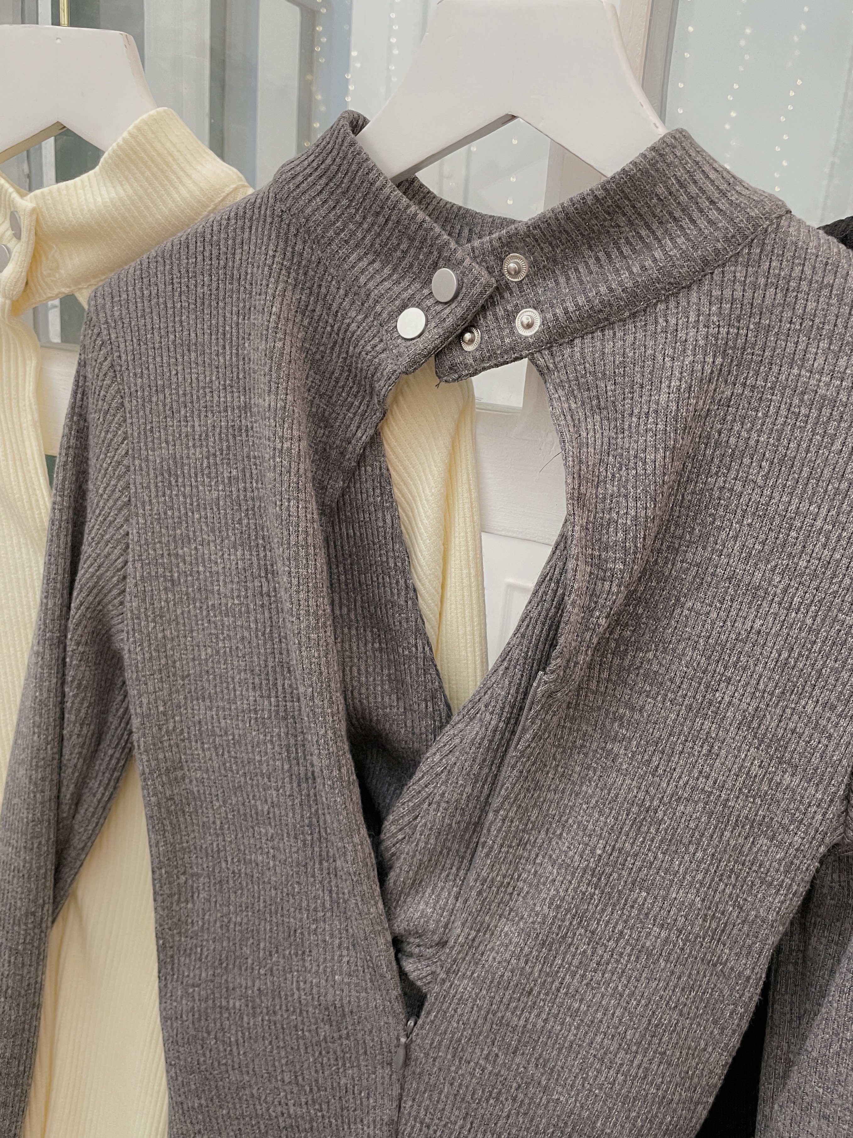 訂製款 立領胸紐結超深V羅紋短洋